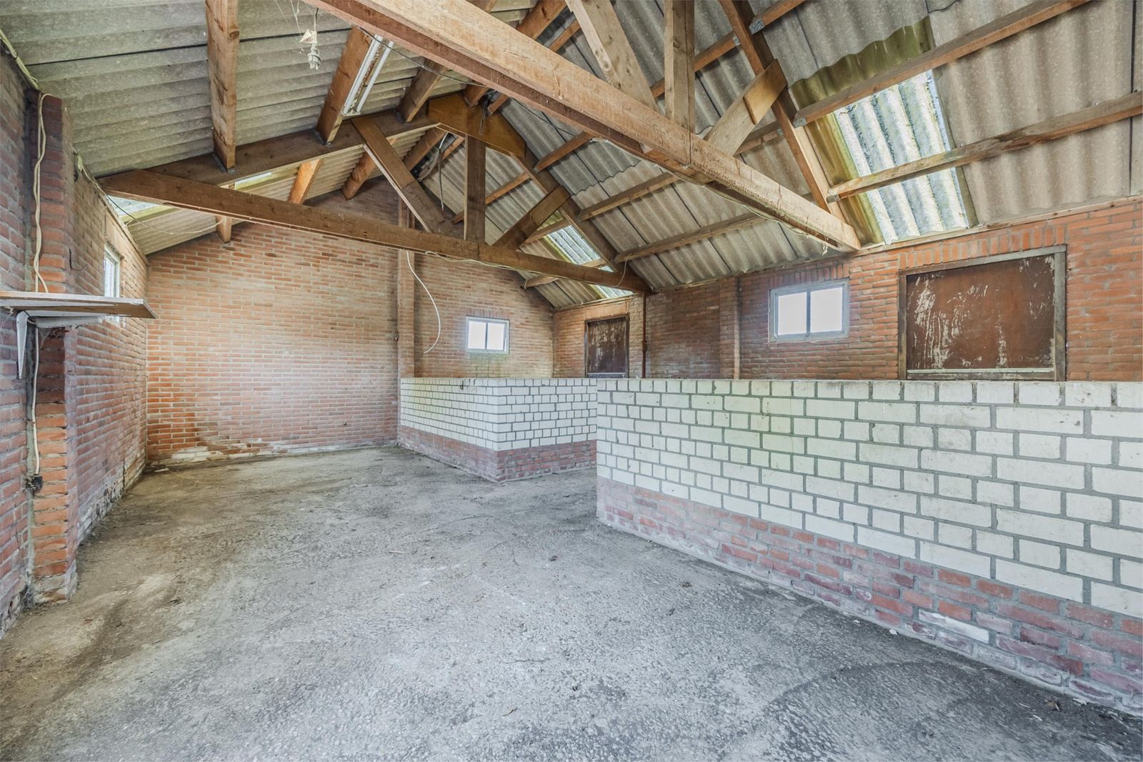 De woning beschikt over een grote schuur/garage met elektrische overheaddeur. Daarnaast bevindt zich achter de woning een ruime loods, eveneens voorzien van een elektrische overheaddeur. Op het terrein is een bovendien een stenen schuur waarin twee paardenstallen zijn gerealiseerd.