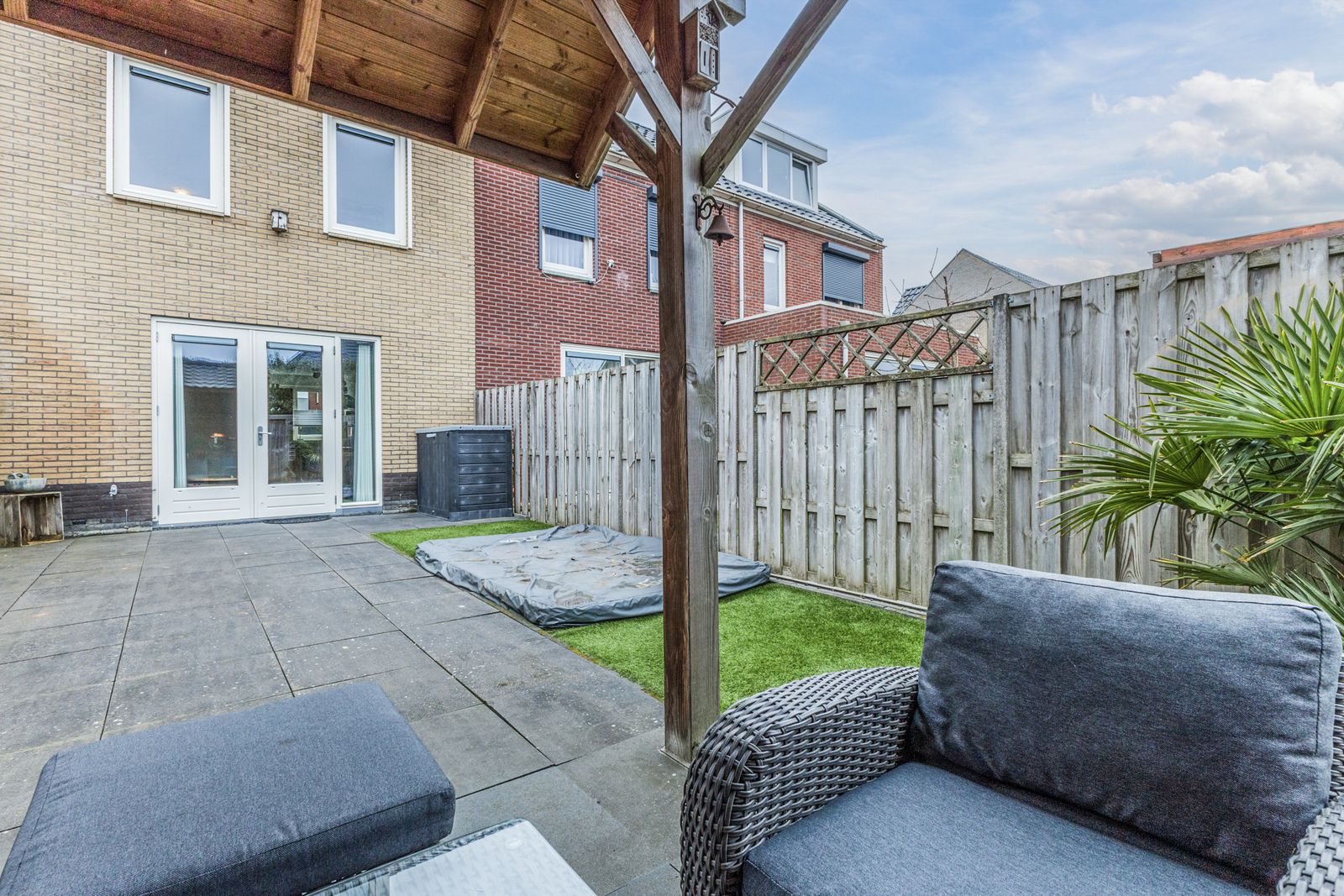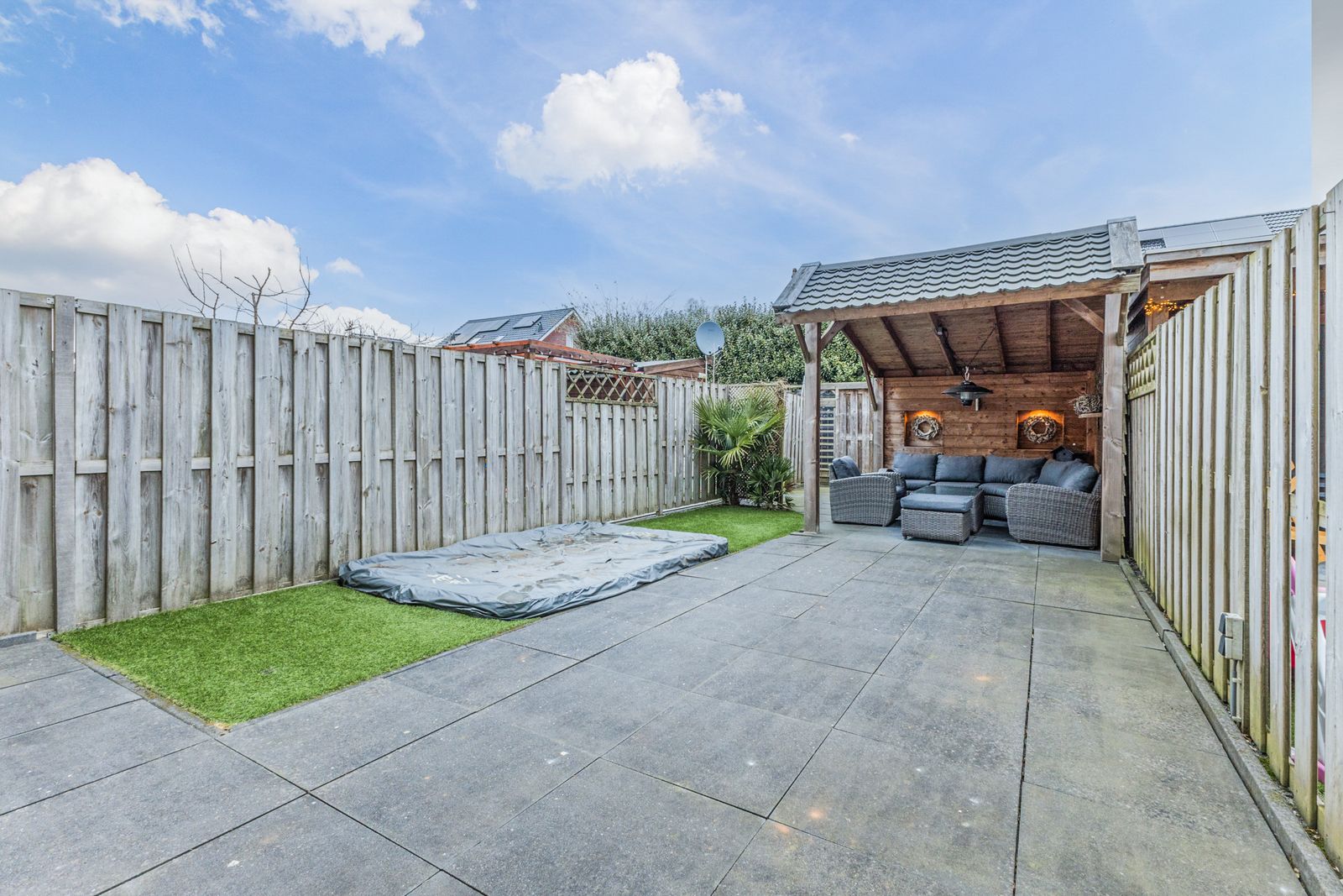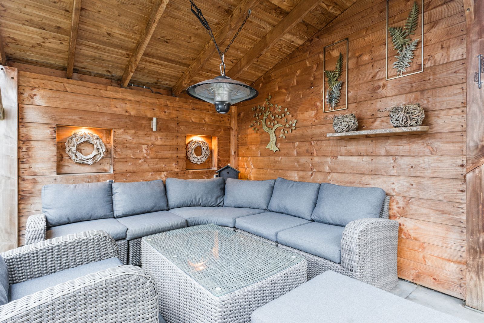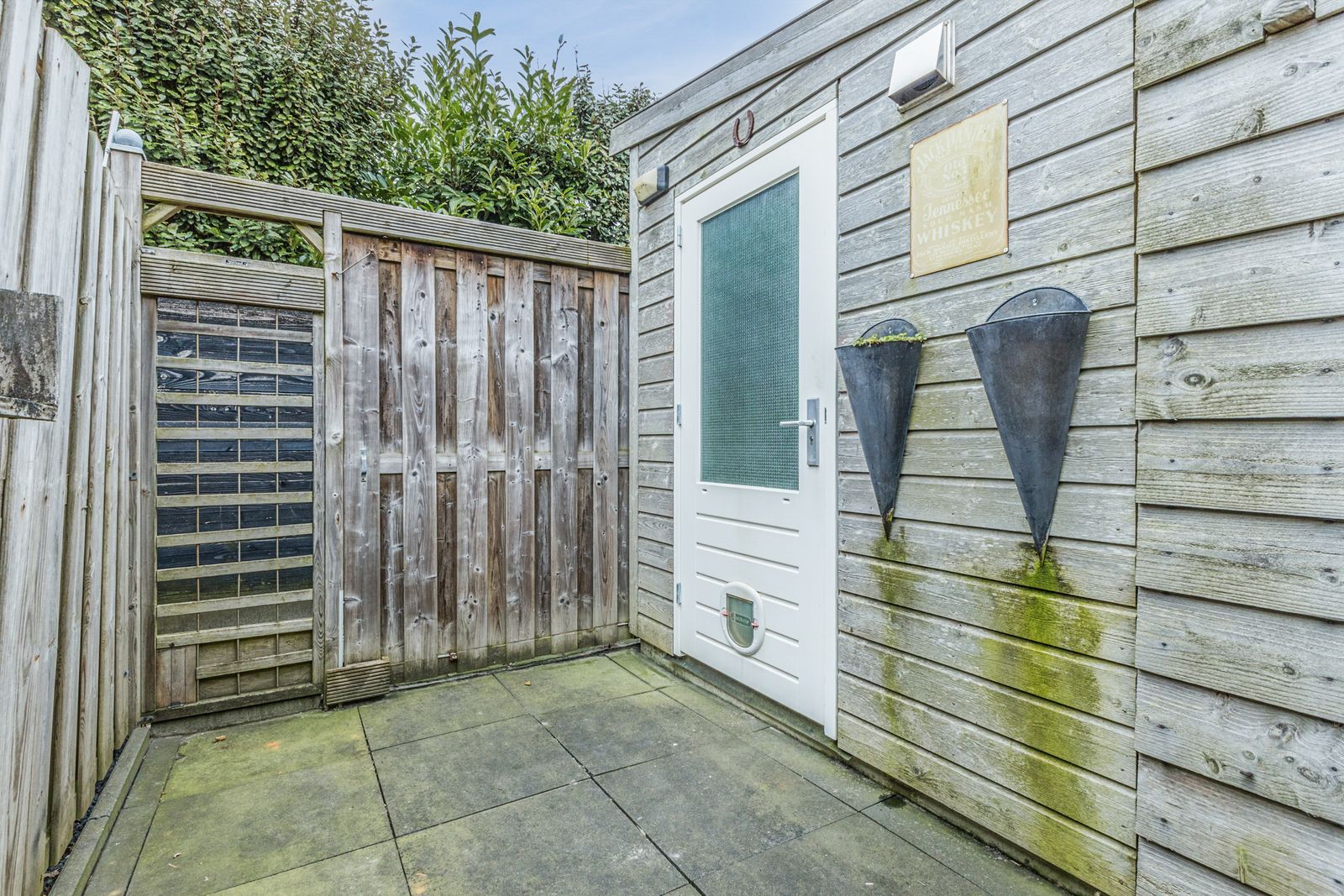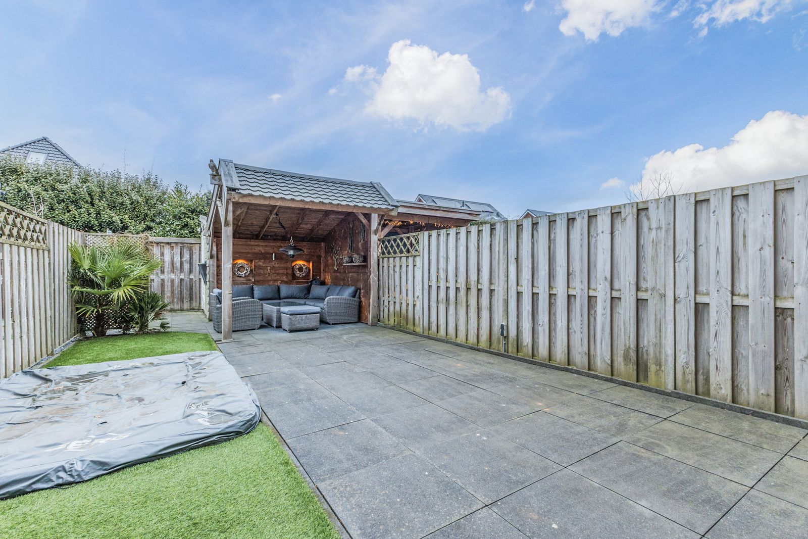 Via openslaande deuren bereikt u de fraai aangelegde, onderhoudsarme achtertuin met vrijstaande berging, gezellige terrasoverkapping en een handige achterom.