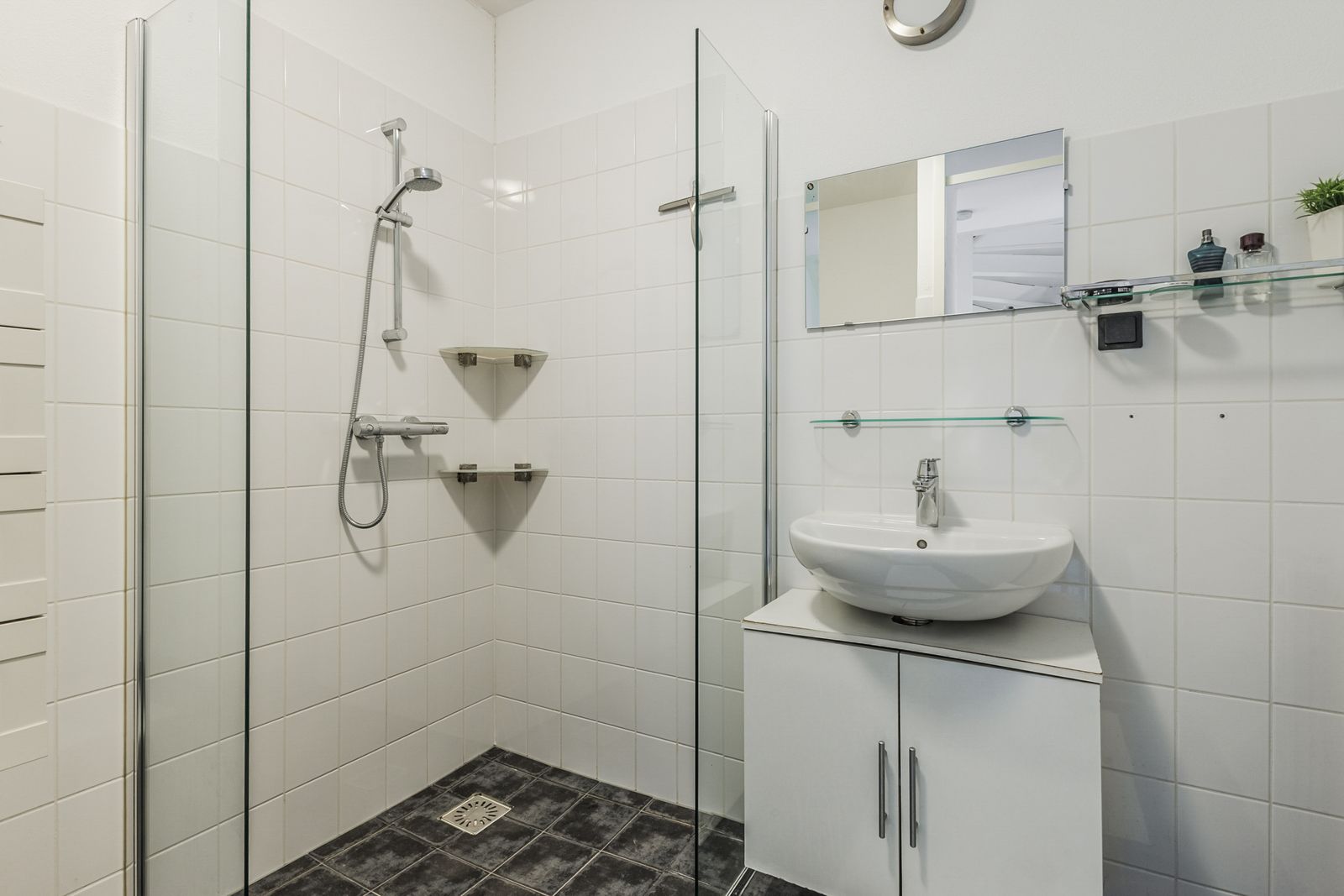 Overloop, twee ruime slaapkamers en een complete badkamer met douche, toilet en wastafel. Alle ramen op deze verdieping zijn voorzien van elektrisch bedienbare rolluiken – ideaal voor extra isolatie, verduistering, geluidsdemping én privacy.