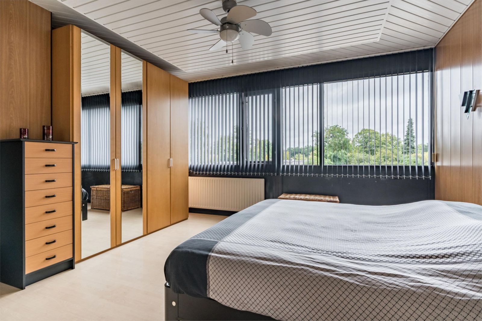 •De grootste slaapkamer bevindt zich aan de voorzijde van de woning en kijkt uit op de straat. Deze kamer heeft een verlaagd plafond met ledverlichting.