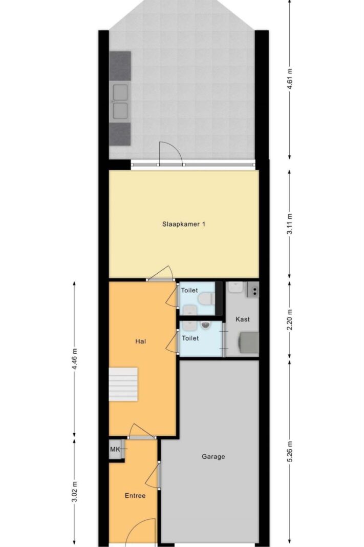 •Indeling: entree, hal, garage, wasruimte, toilet, slaapkamer