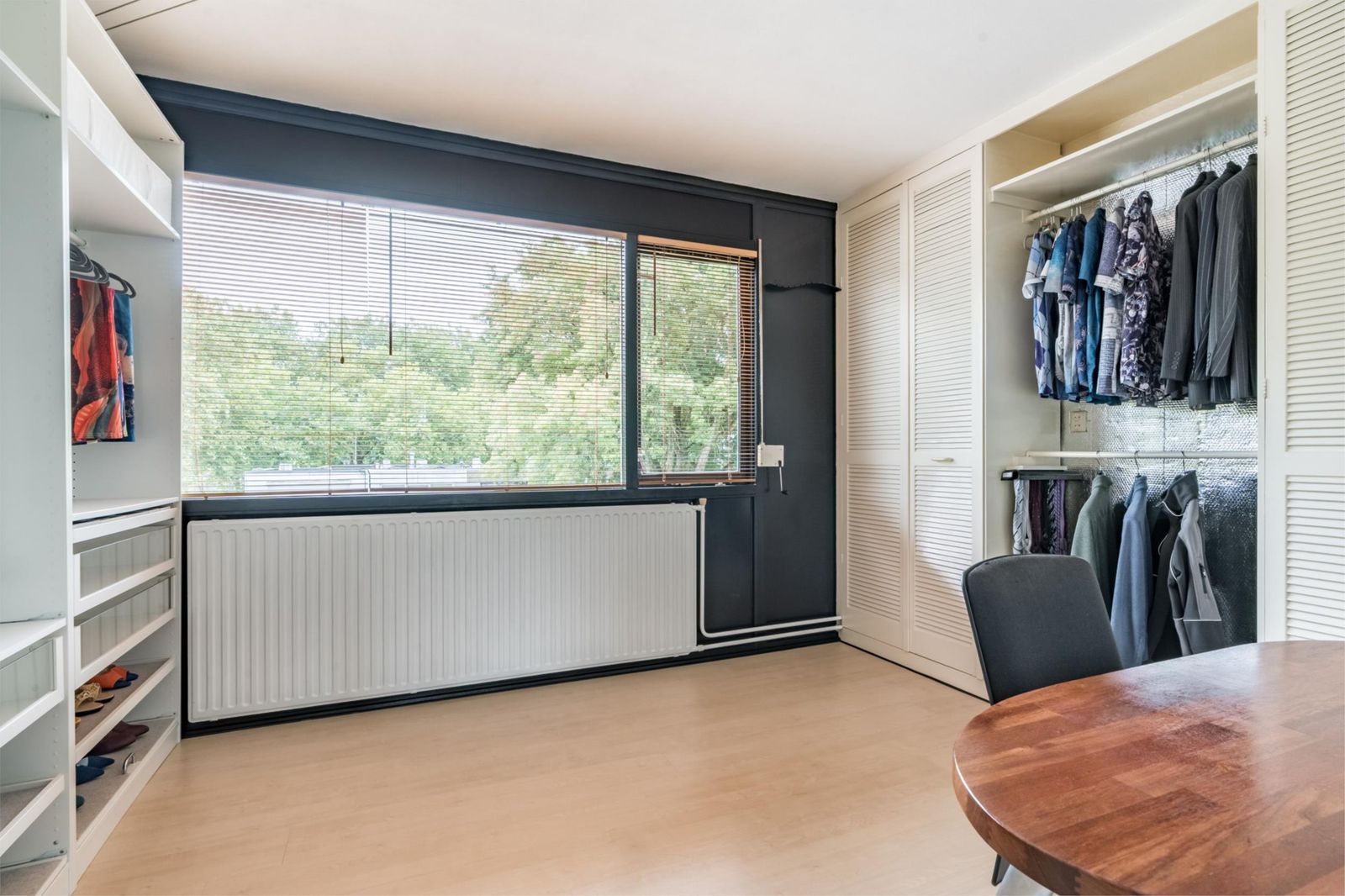 •De tweede slaapkamer ligt aan de achterzijde van de woning en beschikt over een vaste kastenwand. Het achterraam is voorzien van een rolluik.