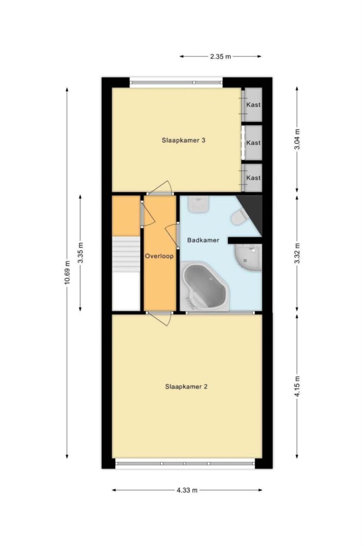 •Indeling: overloop, 2 slaapkamers, badkamer