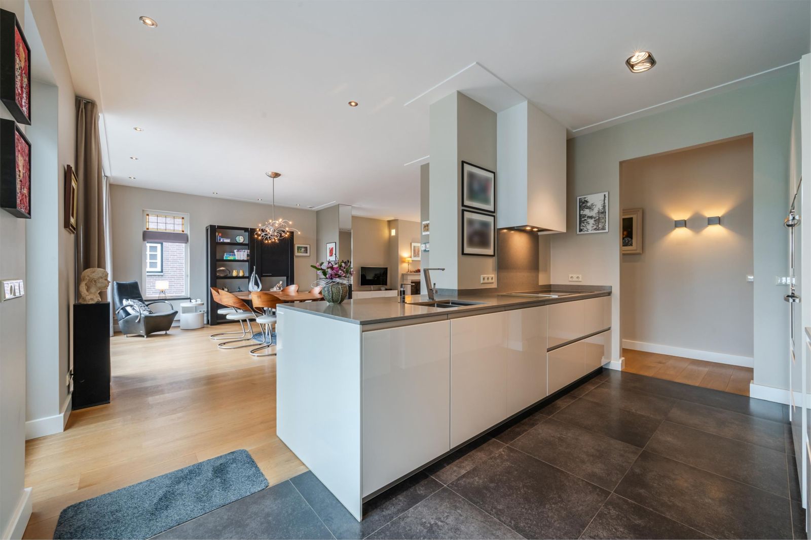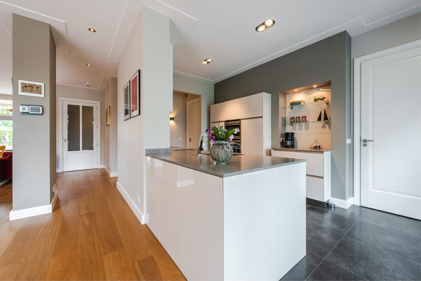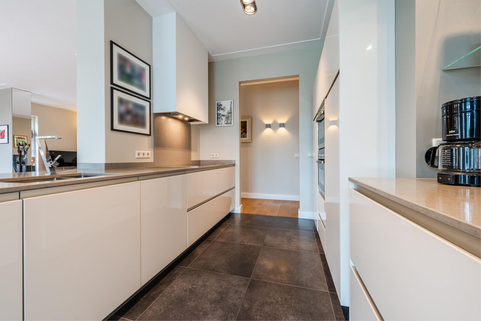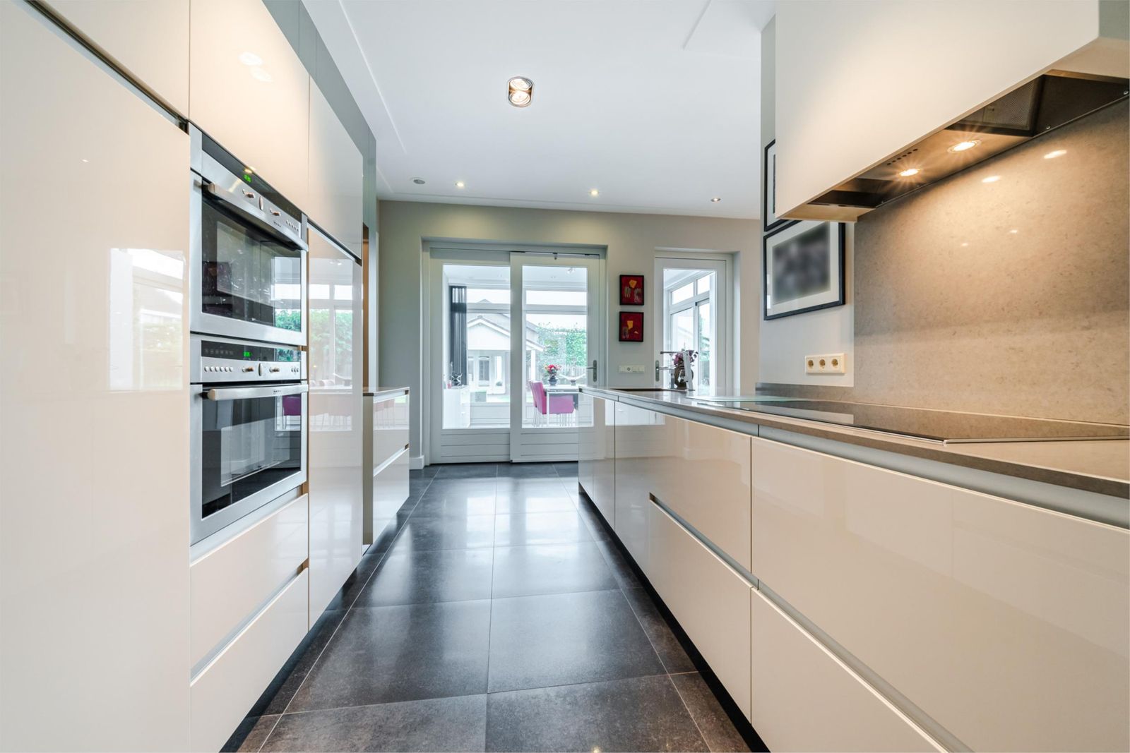 - Luxe, strakke keuken met inbouwapparatuur, waaronder een stoomoven