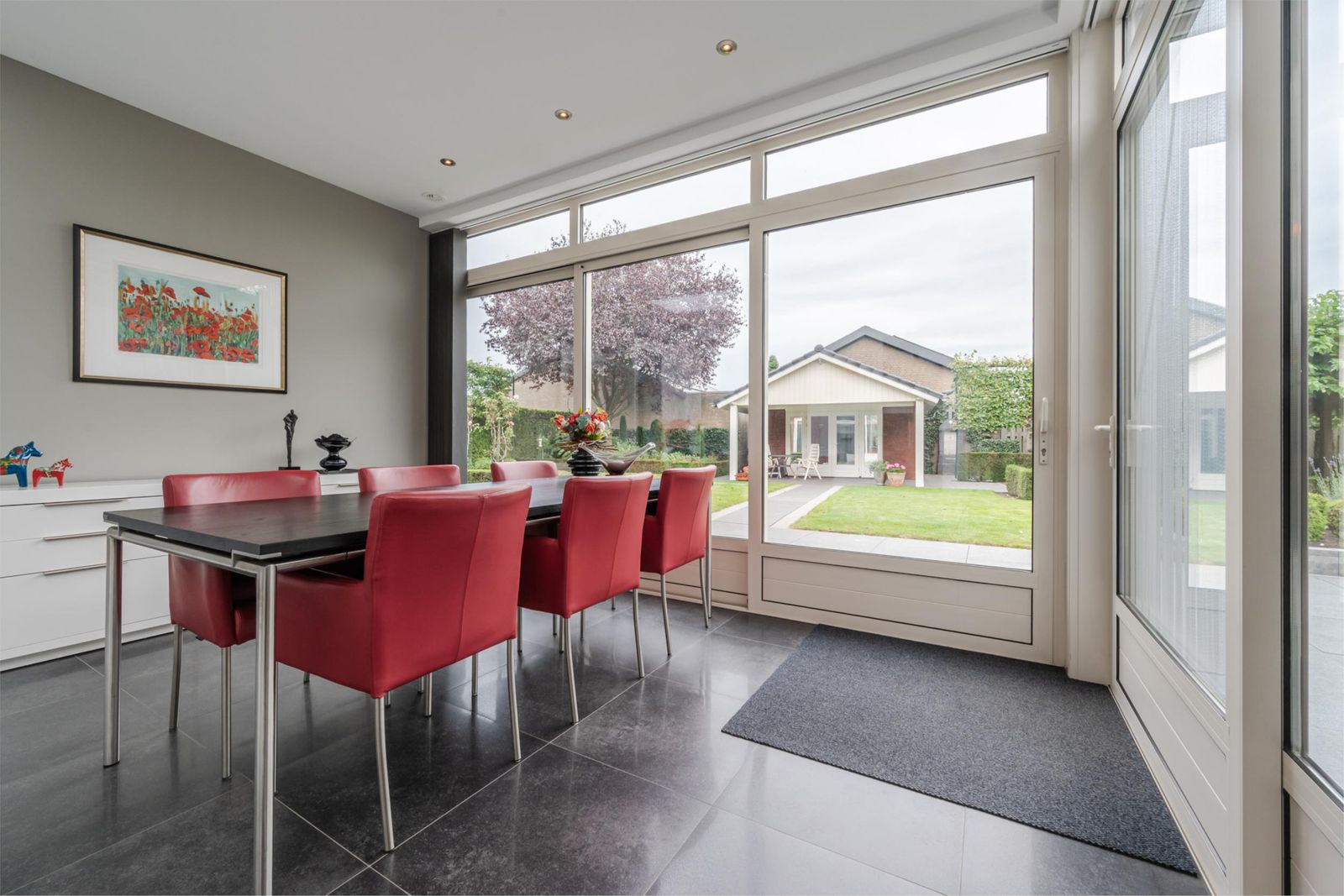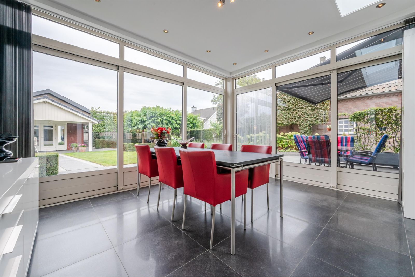- Ruime woonkamer met erker, gashaard en serre