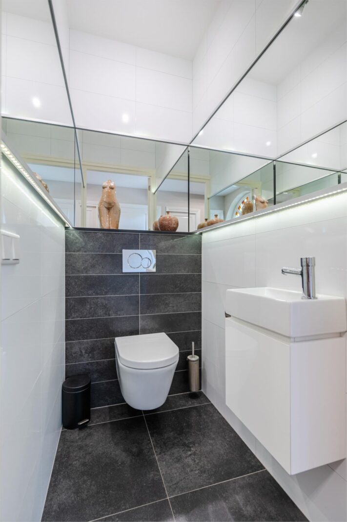 - Drie toiletten (hal, badkamer beneden, apart toilet boven)