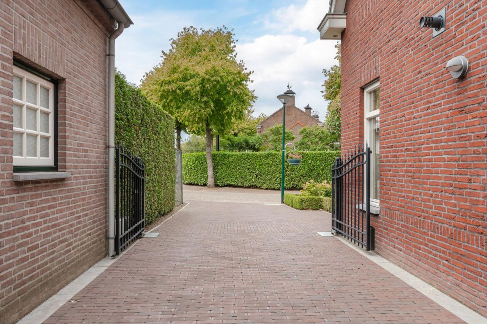 - Twee inritten met elektrische poorten