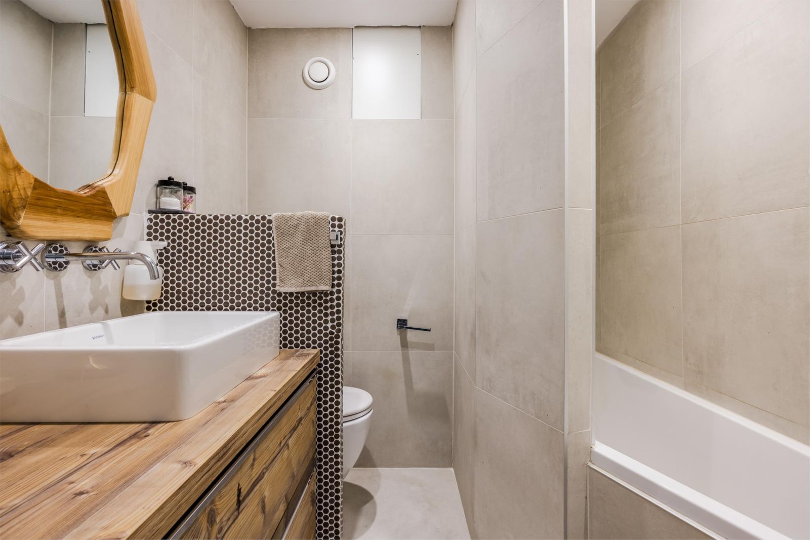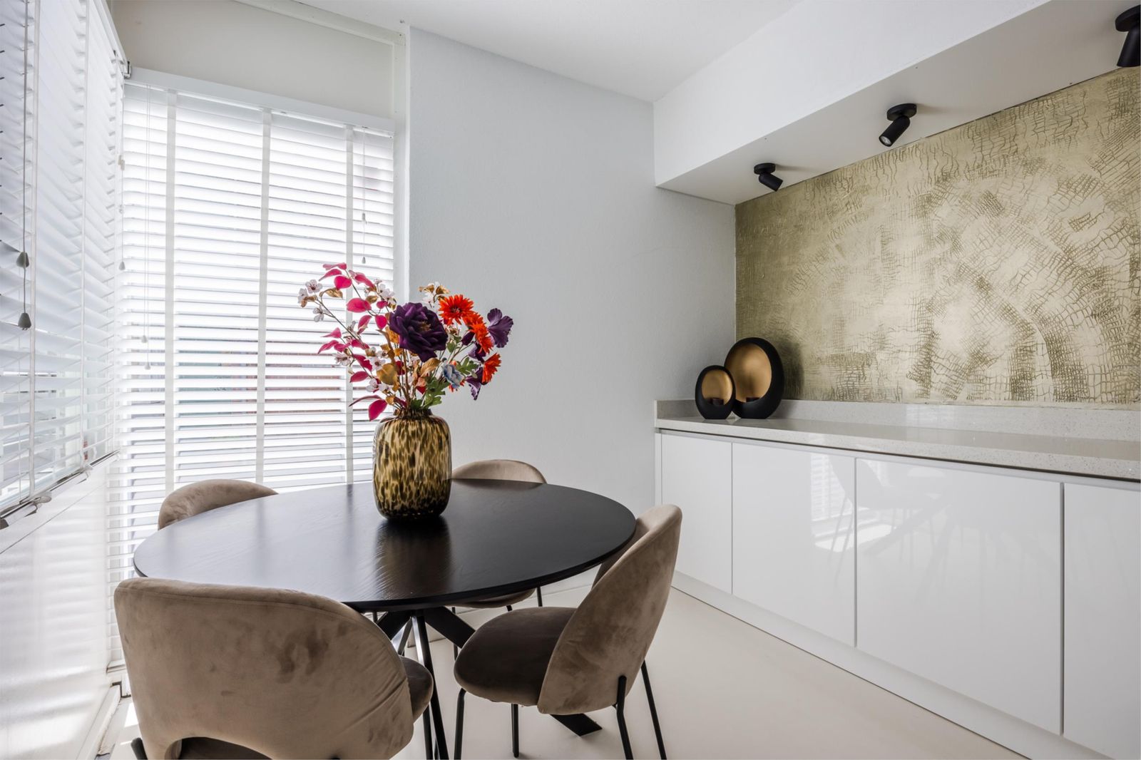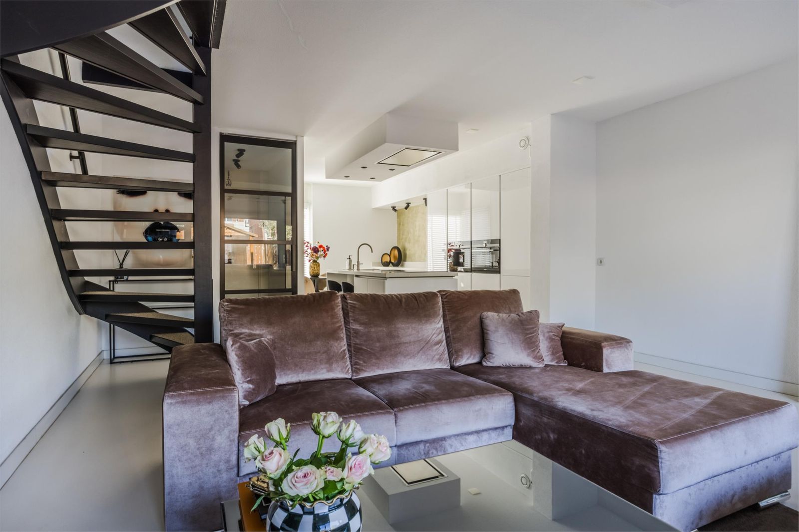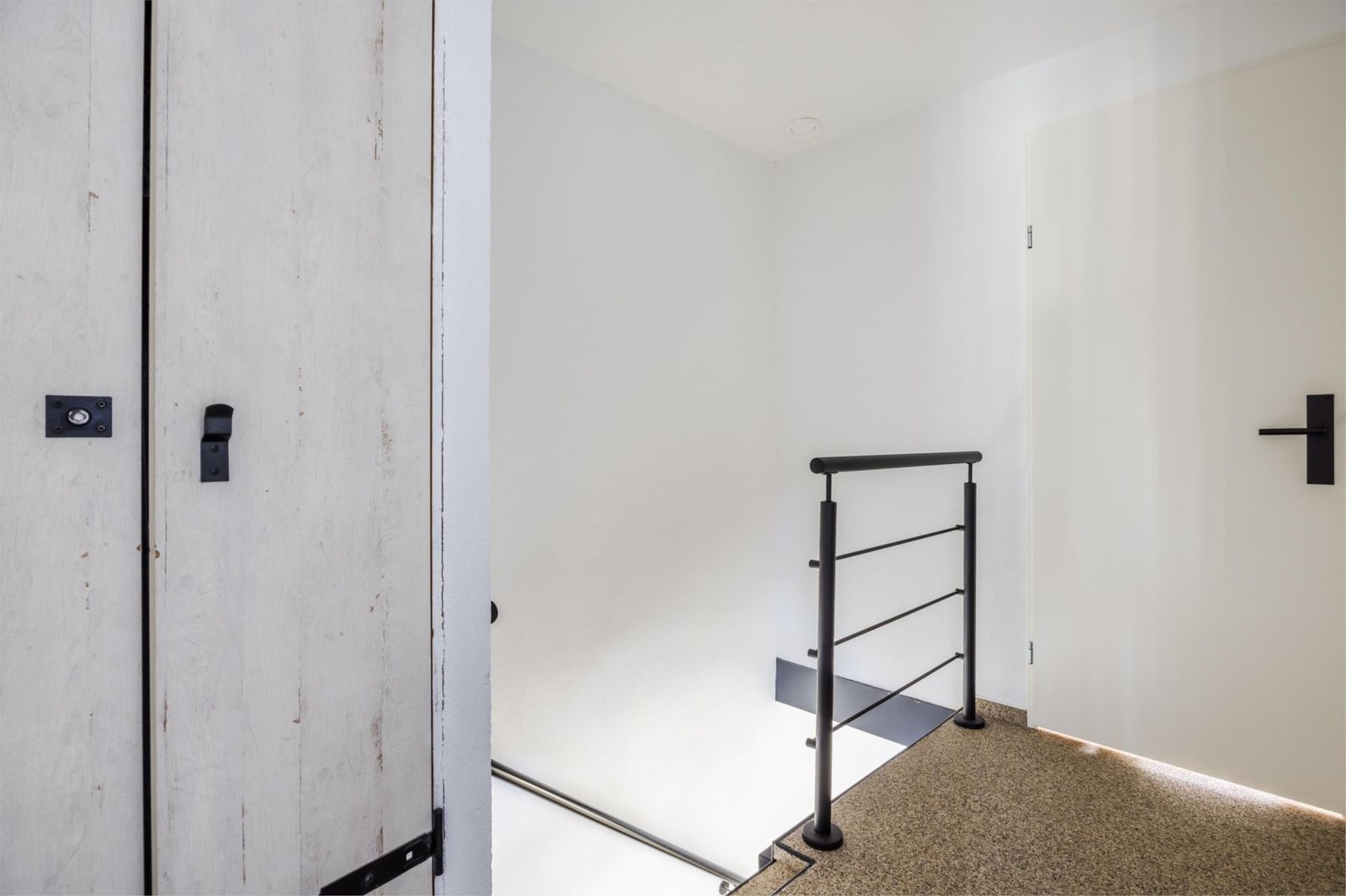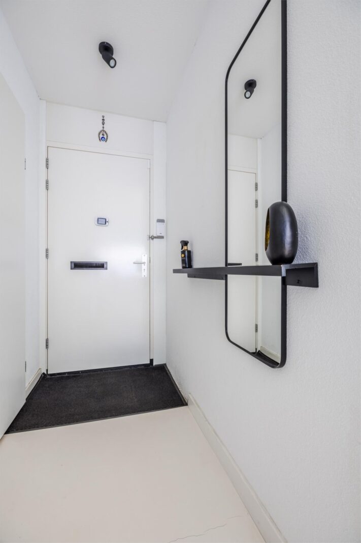 Wat direct opvalt bij binnenkomst is het licht en de openheid. De woonkamer is strak afgewerkt en voorzien van een stijlvolle stalen taatsdeur en een moderne cinewall met elektrische haard – een fijne plek om ’s avonds te ontspannen.