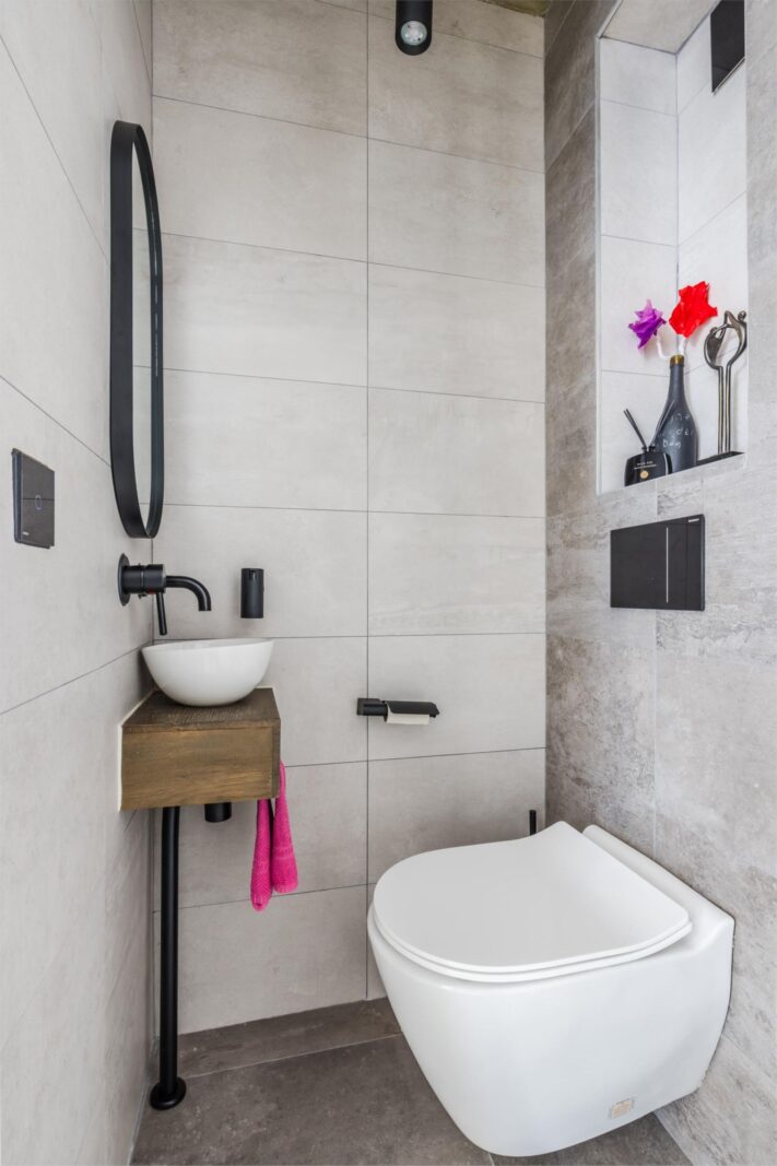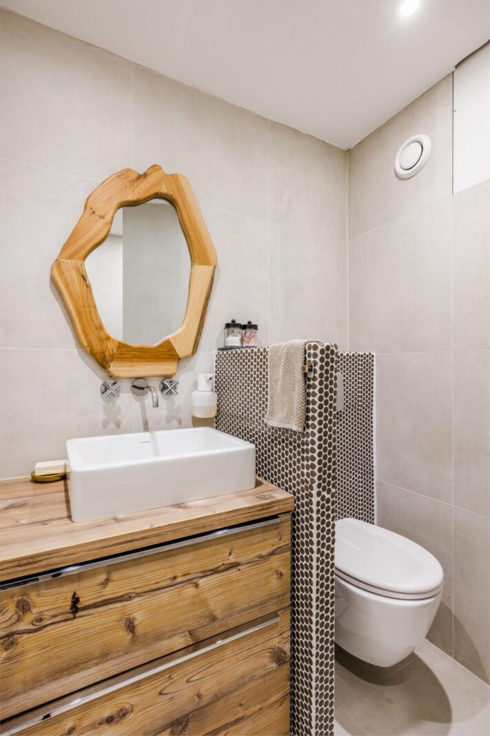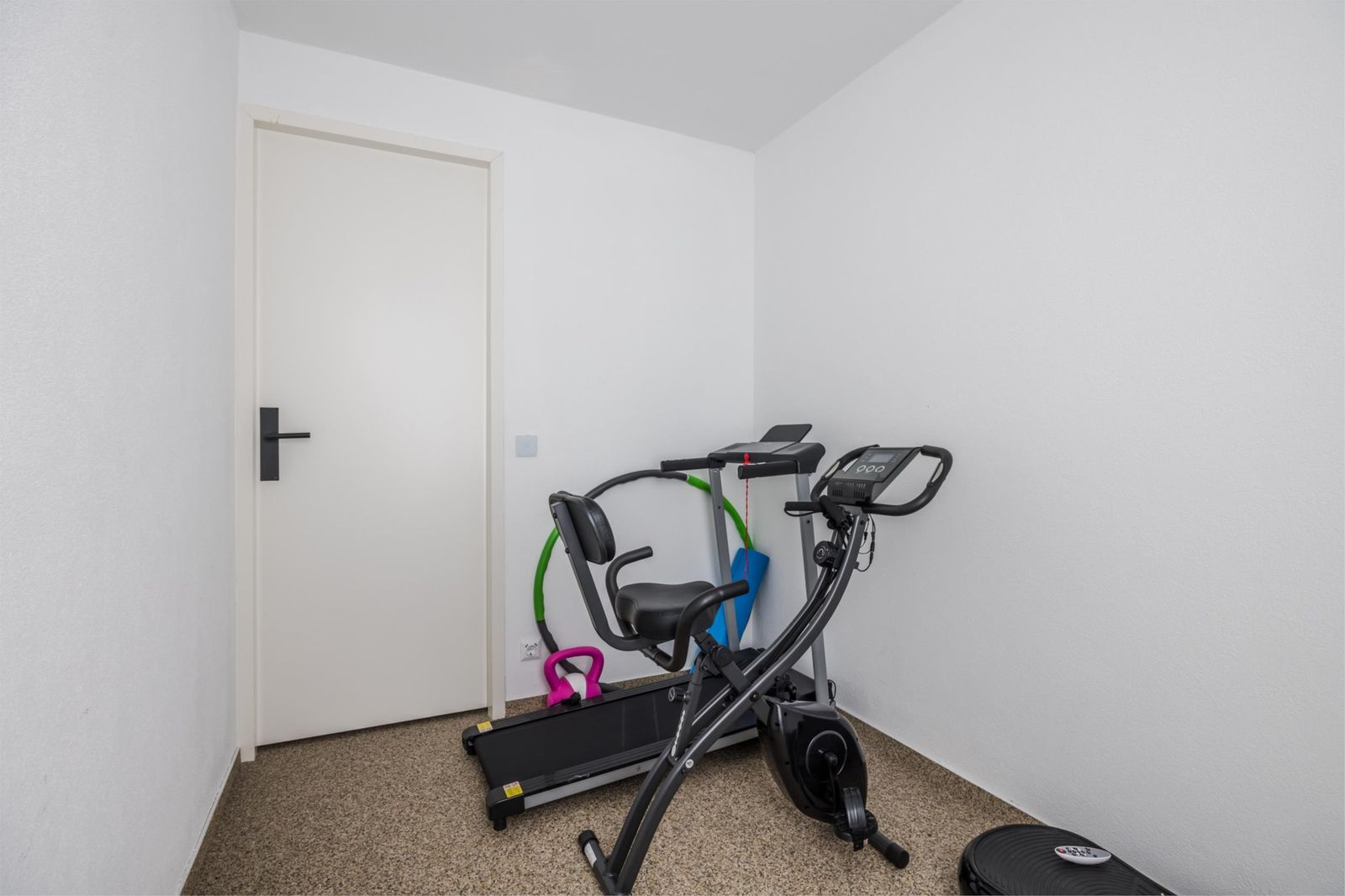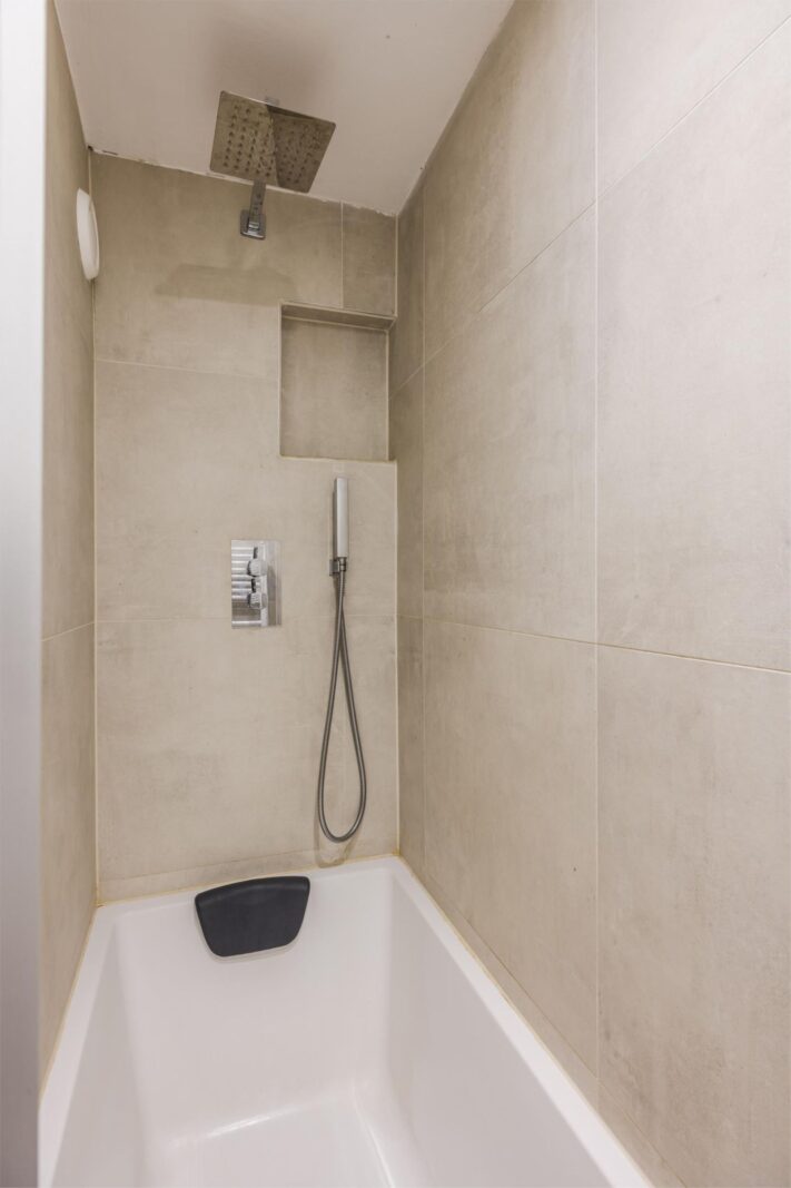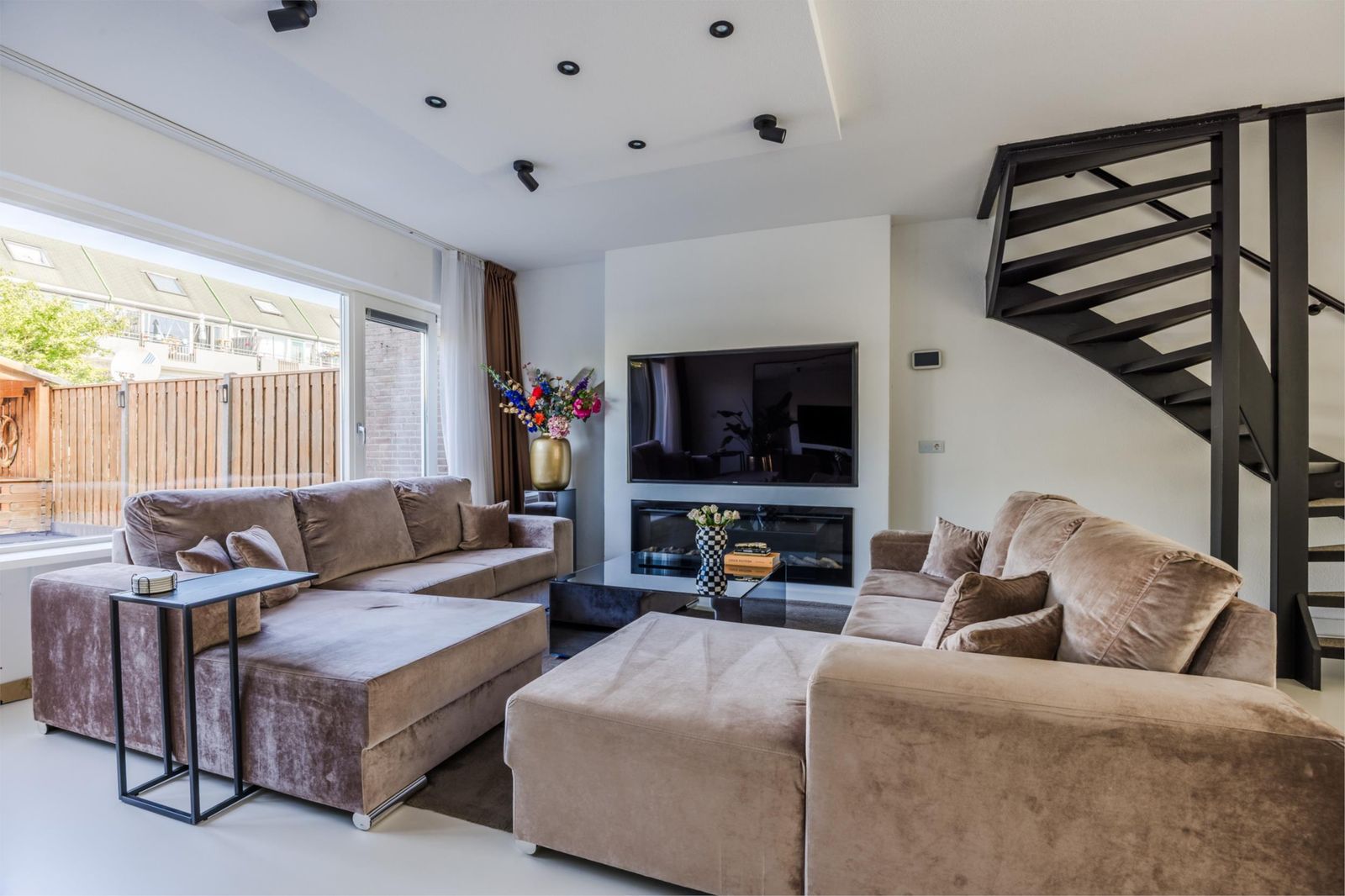 Wat direct opvalt bij binnenkomst is het licht en de openheid. De woonkamer is strak afgewerkt en voorzien van een stijlvolle stalen taatsdeur en een moderne cinewall met elektrische haard – een fijne plek om ’s avonds te ontspannen.
