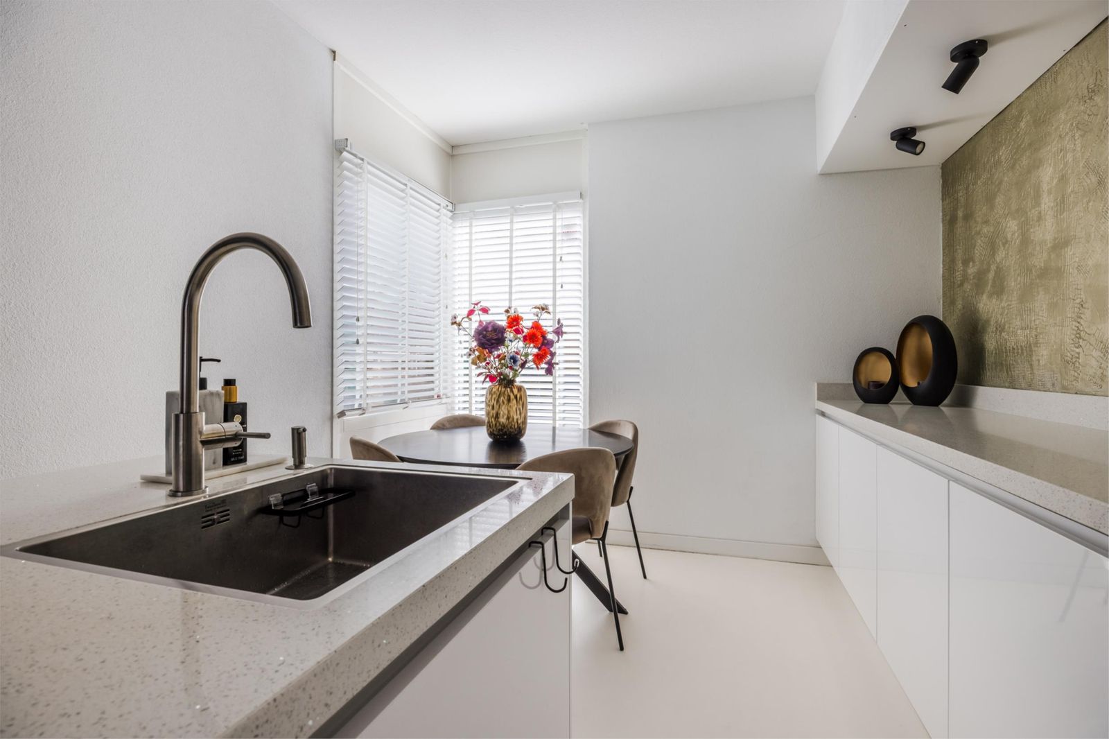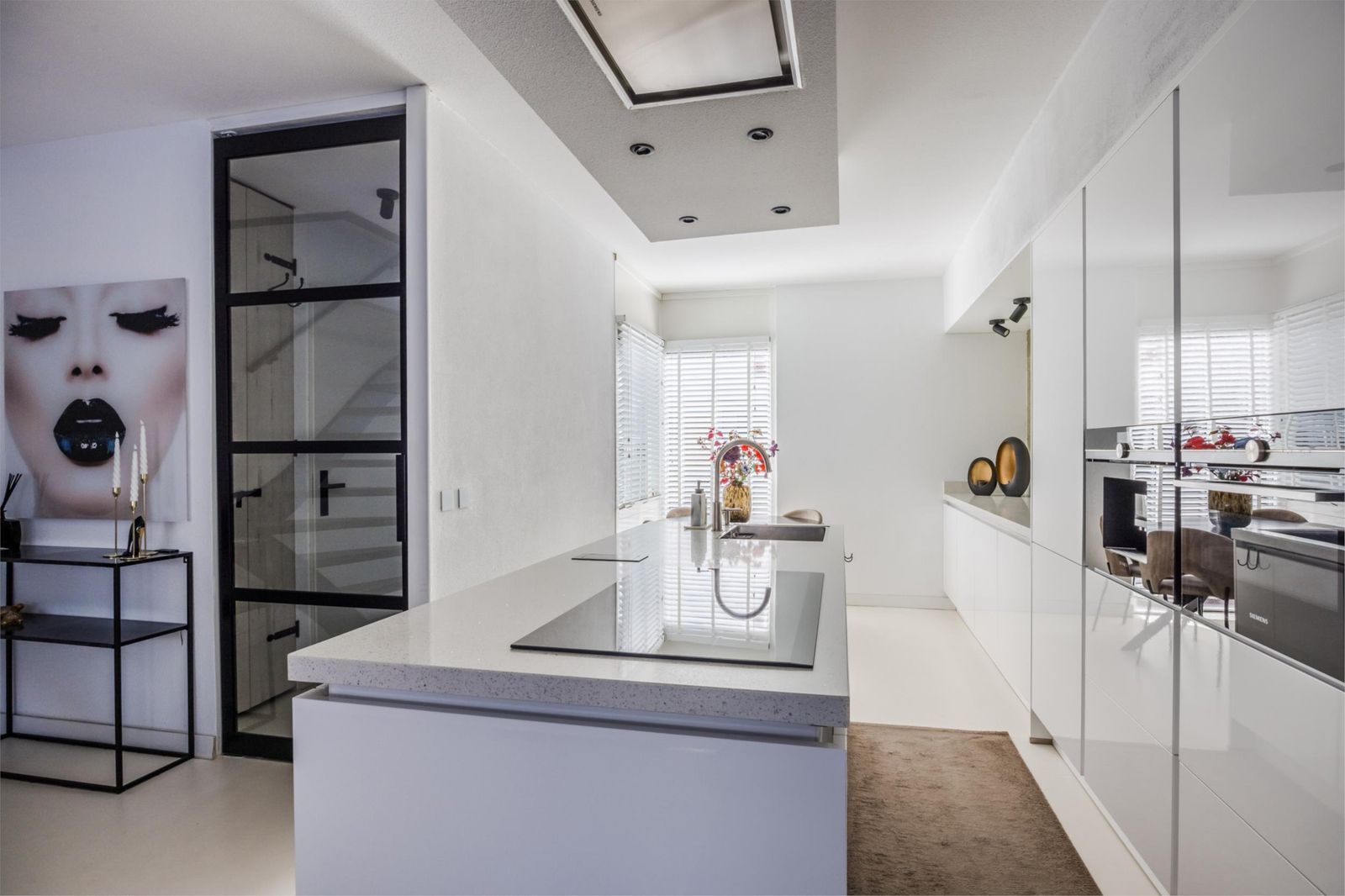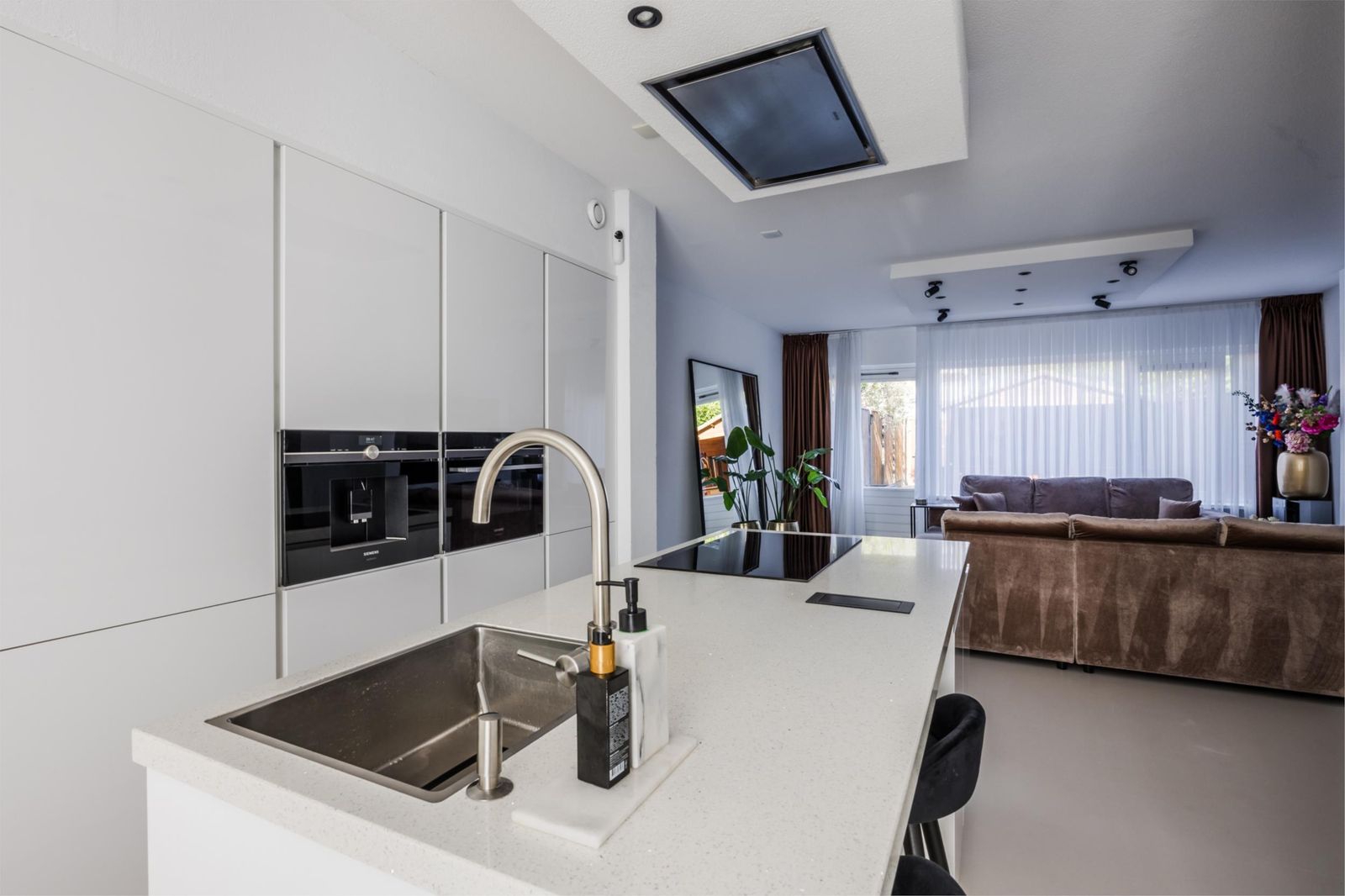 De open eilandkeuken vormt het hart van het huis. Hier kook je met uitzicht op de tuin en heb je alle ruimte om met vrienden of familie aan te schuiven. De keuken is uitgerust met luxe inbouwapparatuur, waaronder een koffiemachine, grote koelkast en vriezer, oven en vaatwasser. Praktisch én gezellig.