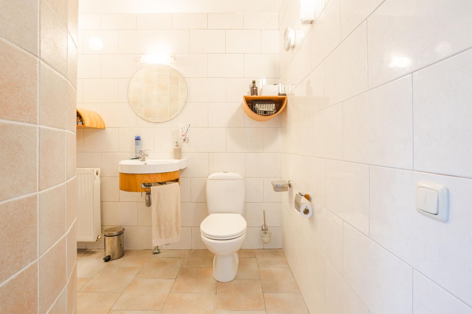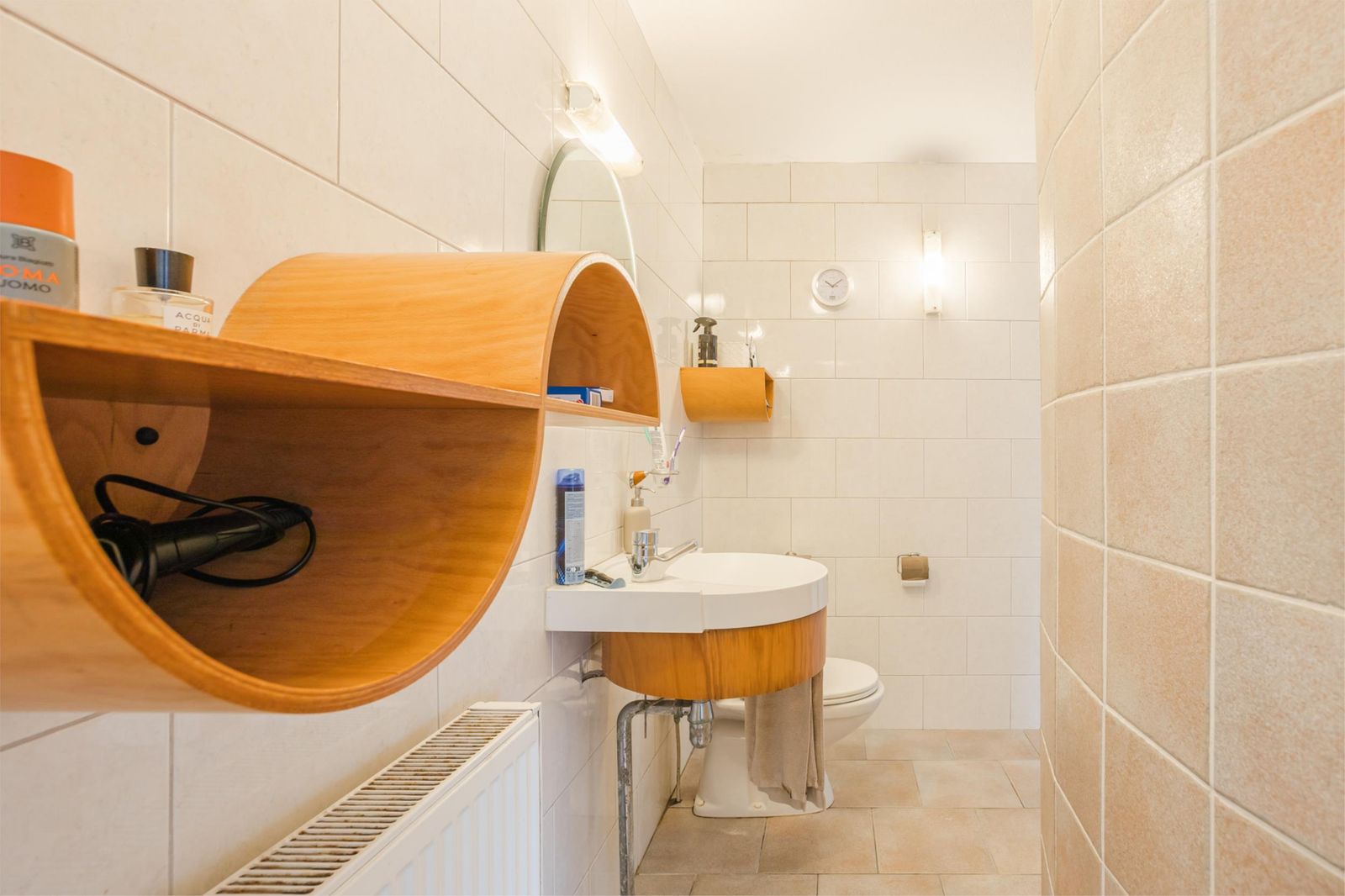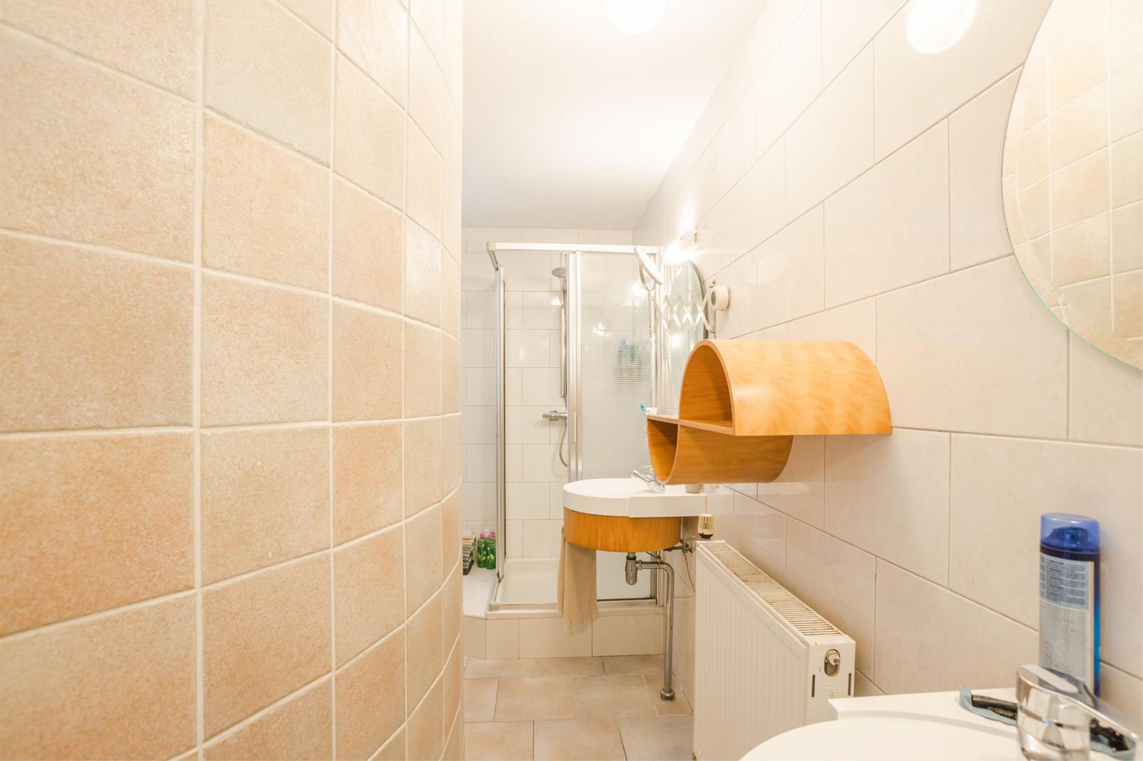 Eerste verdieping: Op de verdieping ligt een bijzonder vormgegeven (rond) badkamer, compleet met douchecabine, twee wastafels en een ruim ligbad. Verder zijn er drie goed bemeten slaapkamers.