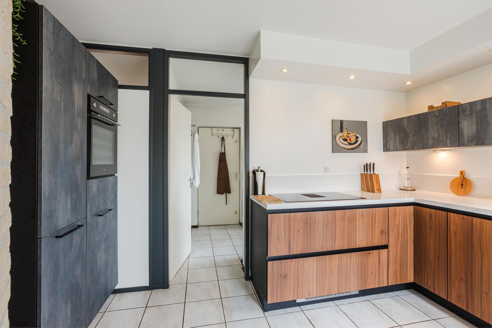 Aangrenzend vind je de moderne en ruime keuken (2022) met o.a. geïntegreerde afzuiging. Vanuit de keuken is de praktische bijkeuken bereikbaar, evenals de grote multifunctionele garage.