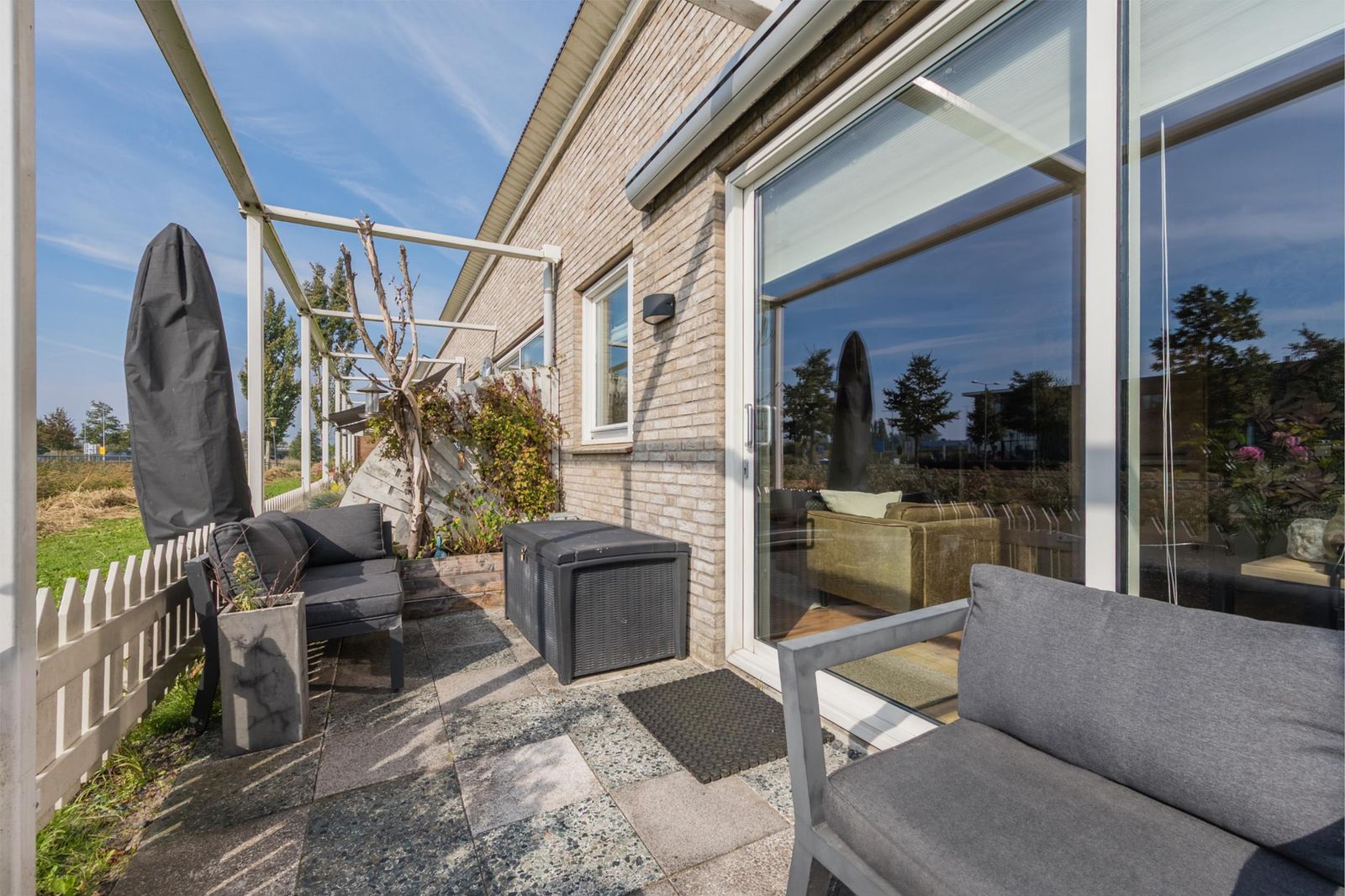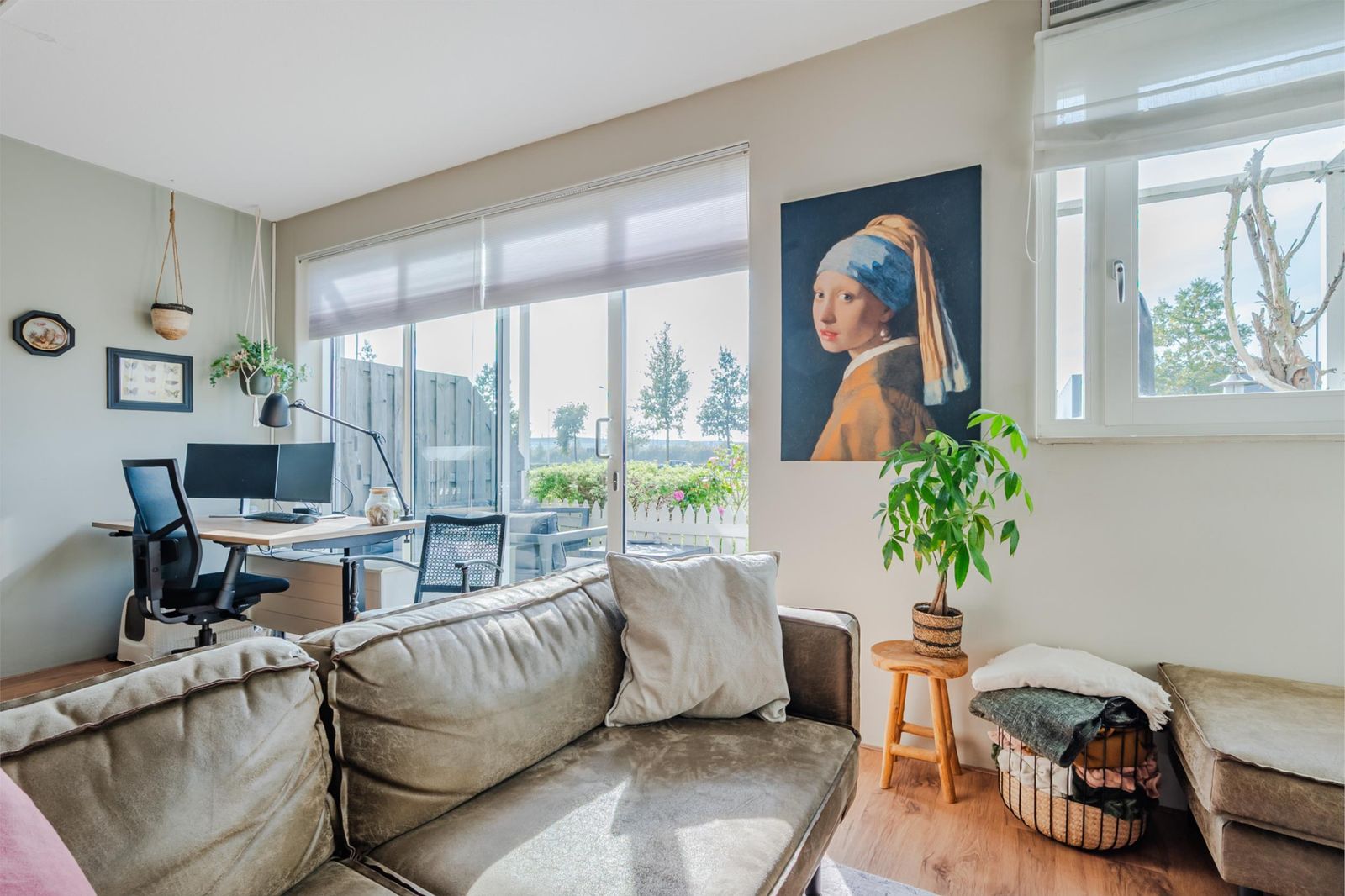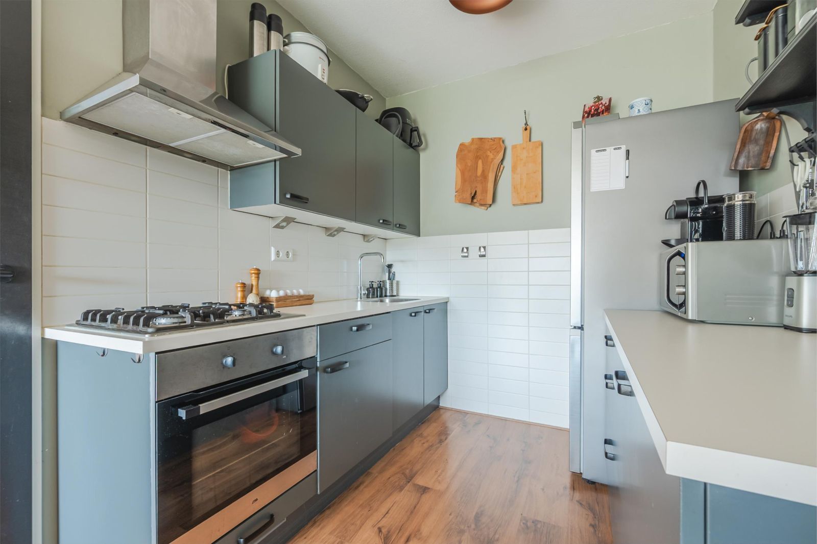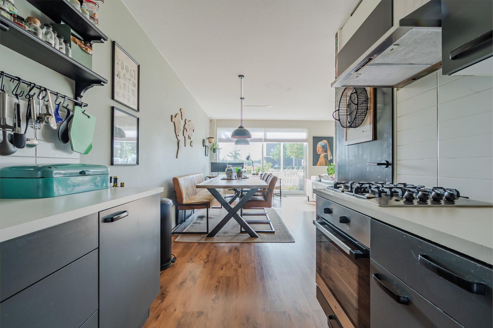 De woonkamer is licht en ruimtelijk en loopt via de grote schuifpui over in de tuin, waar je van ’s morgens tot ’s avonds van de zon kunt genieten. De open keuken heeft voldoende opbergruimte en is van alle gemakken voorzien.