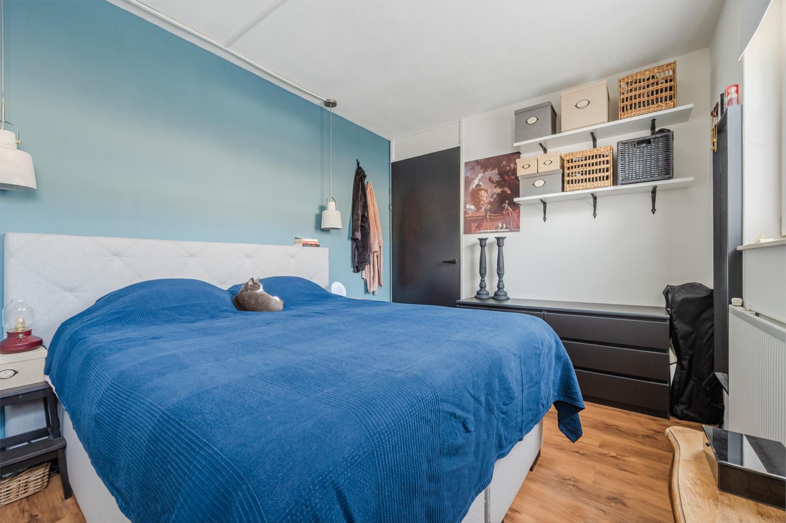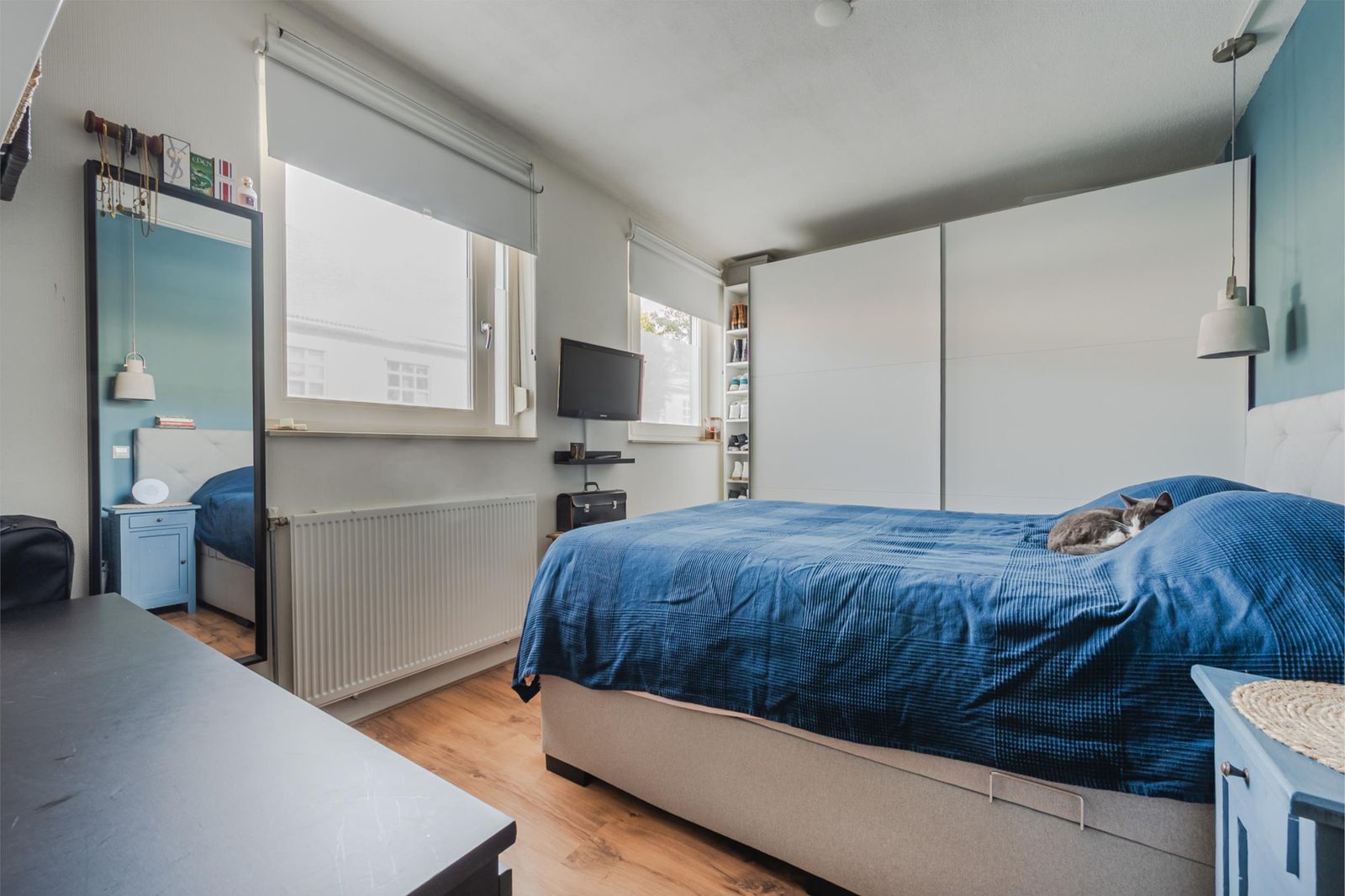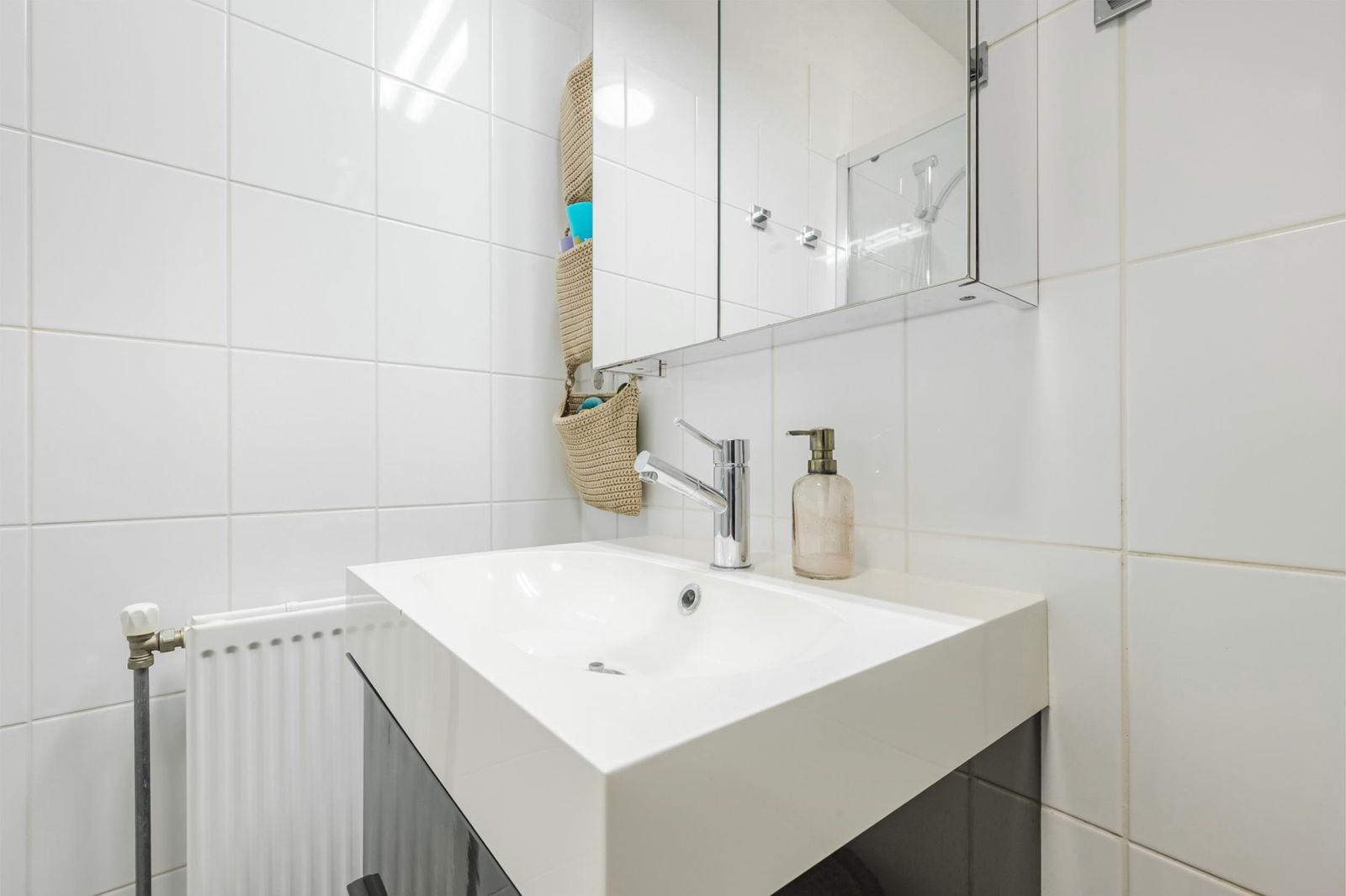 De badkamer is betegeld en voorzien van een glazen douchecabine, een wastafelmeubel en een toilet. De ruime slaapkamer aan de voorzijde is voorzien van rolluiken en biedt daarnaast voldoende ruimte voor een tweepersoonsbed en een kledingkast.