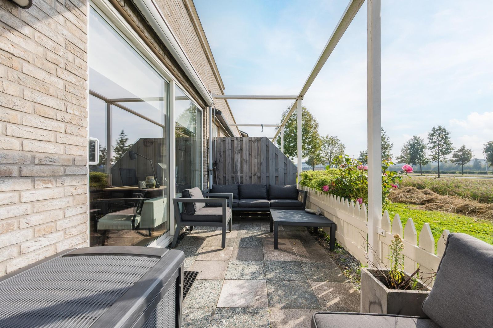 Zonovergoten tuin op het zuiden met vrij uitzicht en ruim voldoende plaats voor één of meerdere zitjes. Daarnaast beschikt de tuin over een zonnescherm.