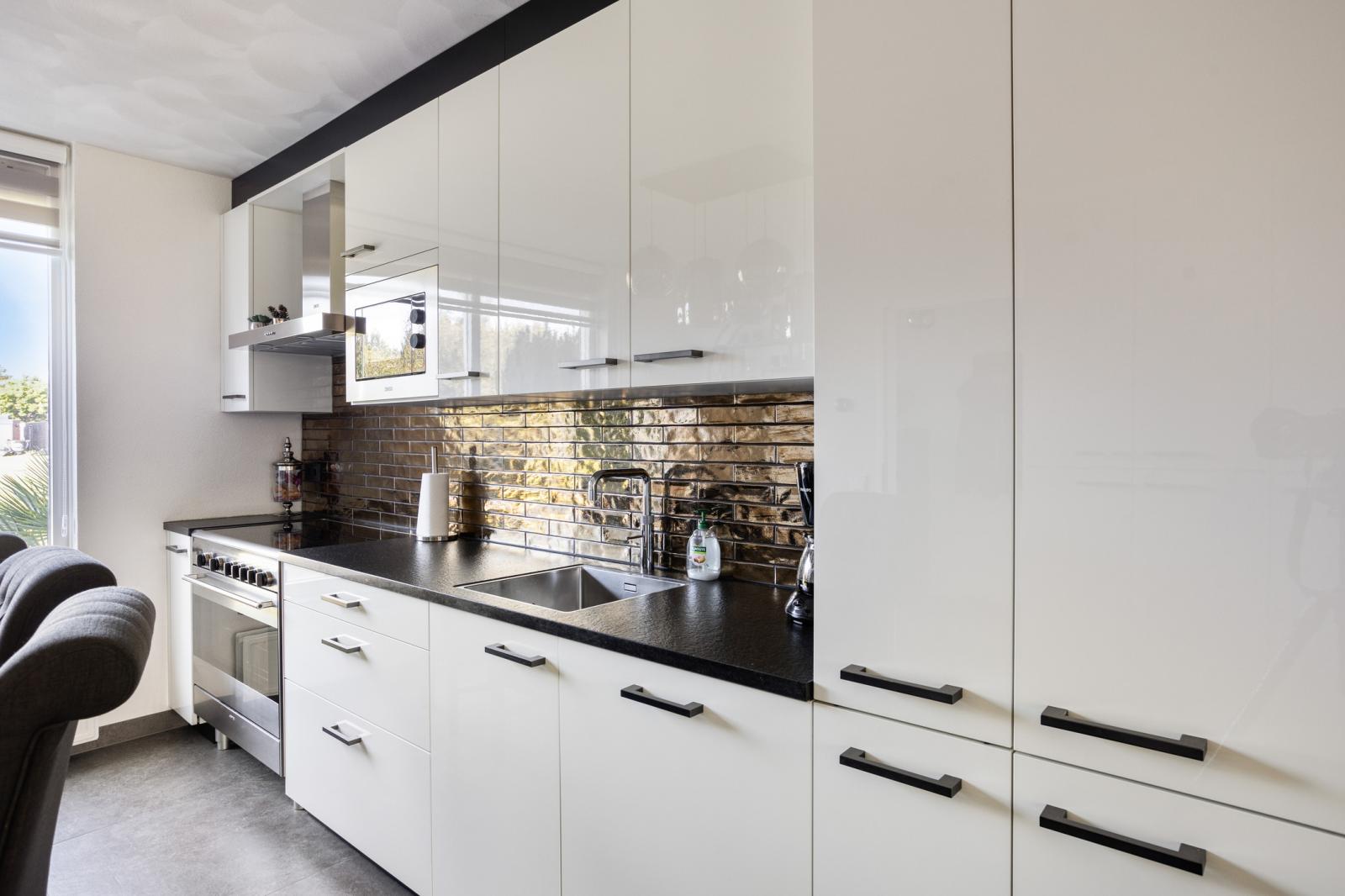 Bij binnenkomst valt direct de frisse en moderne uitstraling op. De keuken is in 2023 geheel vernieuwd en uitgevoerd met hoogwaardige apparatuur: een granieten aanrechtblad, inductiekookplaat, oven, magnetron, vaatwasser, koel-/vriescombinatie én een Quooker-kraan. Hier kook je met plezier!