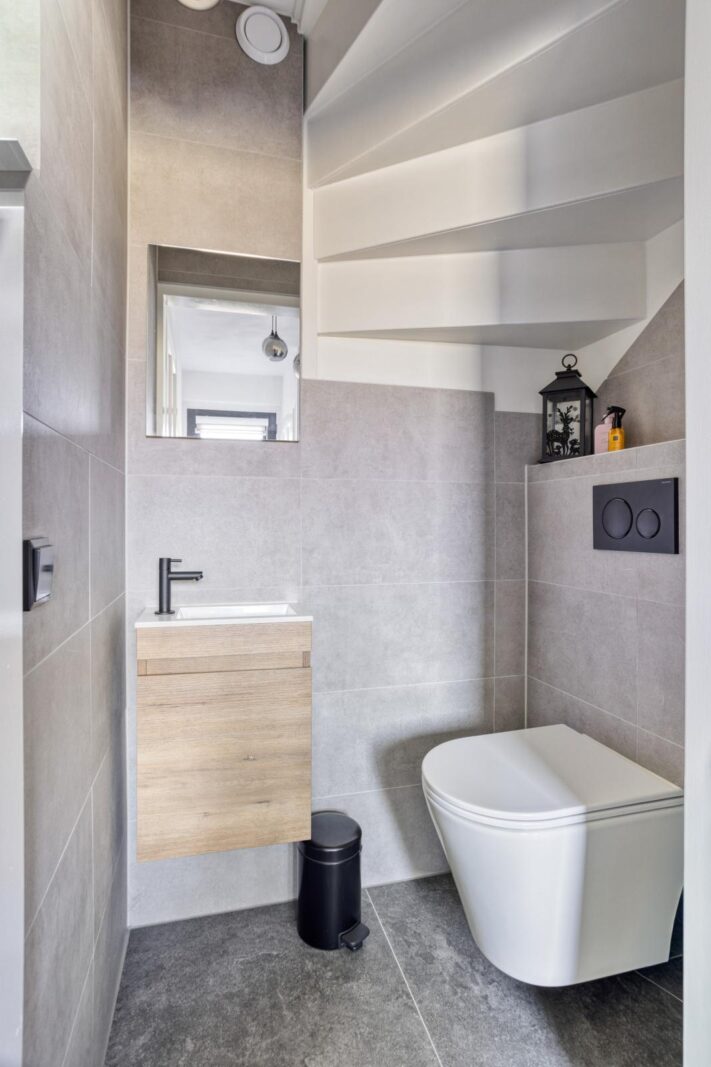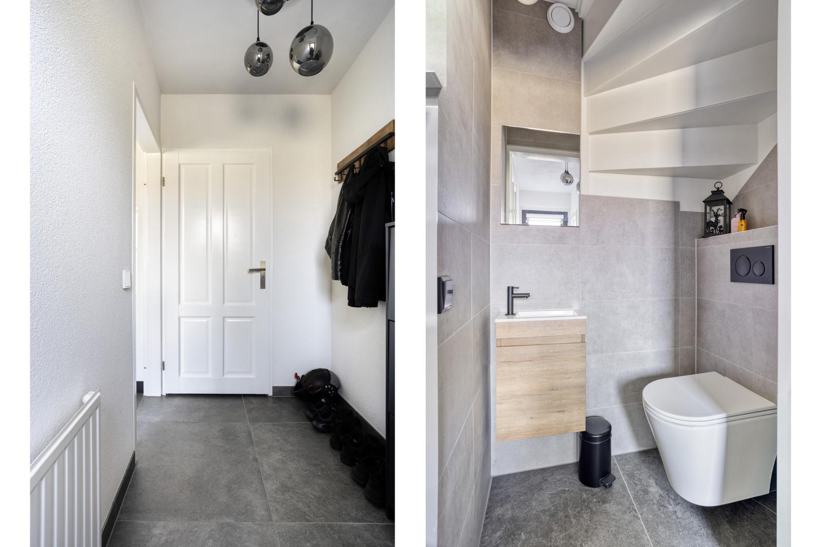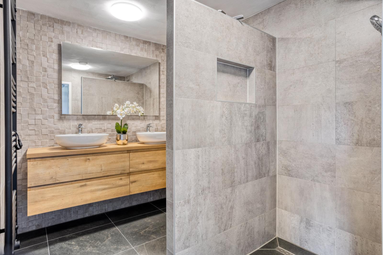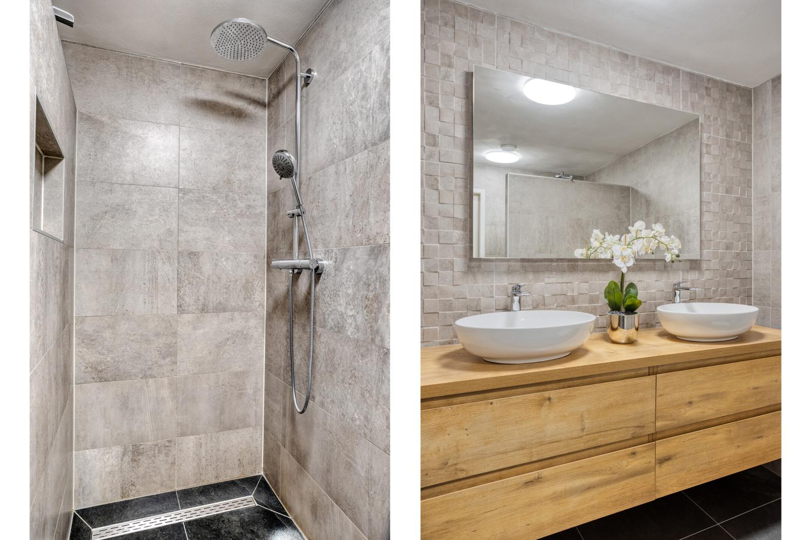 Op de eerste verdieping zijn oorspronkelijk drie slaapkamers aanwezig, maar er is gekozen voor een praktische indeling met twee ruime slaapkamers. Dit zorgt voor extra comfort en veel leefruimte. De moderne badkamer, eveneens recent vernieuwd, is voorzien van een inloopdouche, wastafelmeubel en tweede toilet.