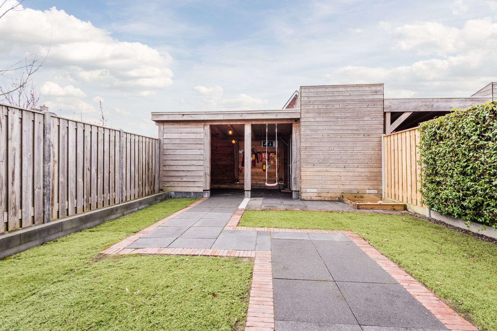 Zonnige tuin op het zuidoosten met berging en overkapping