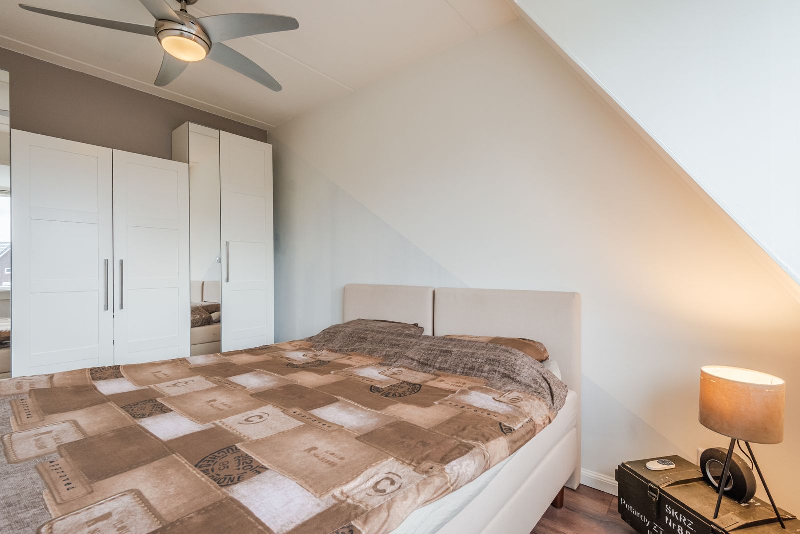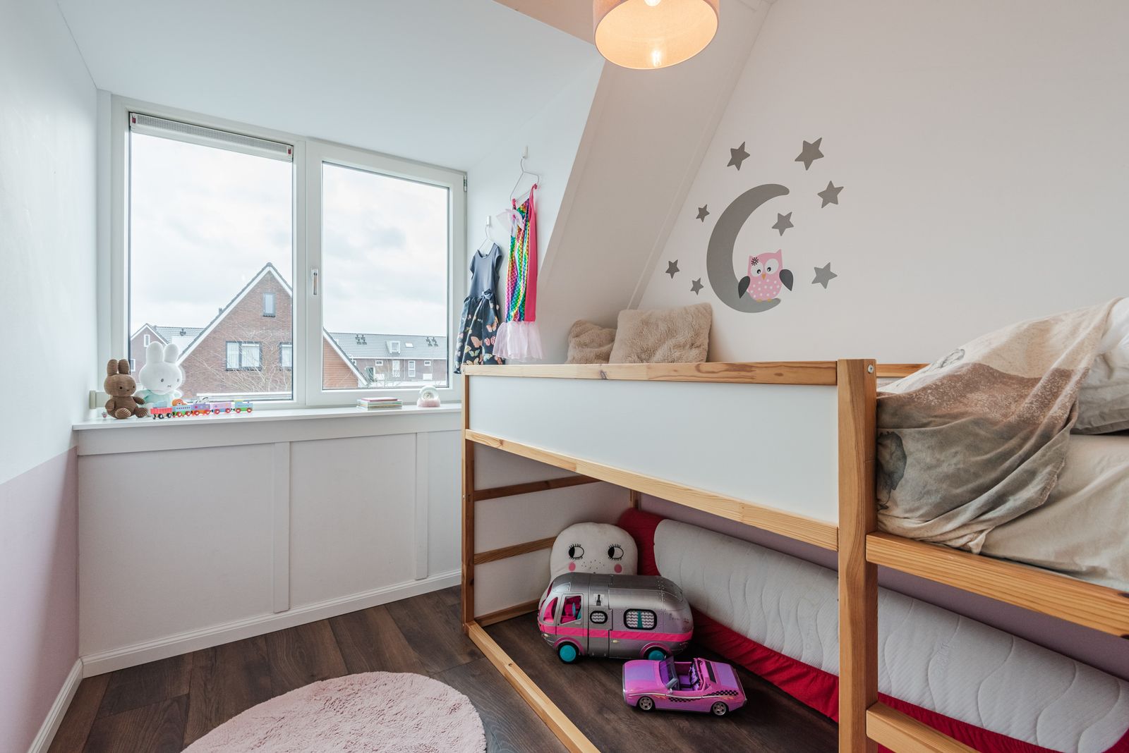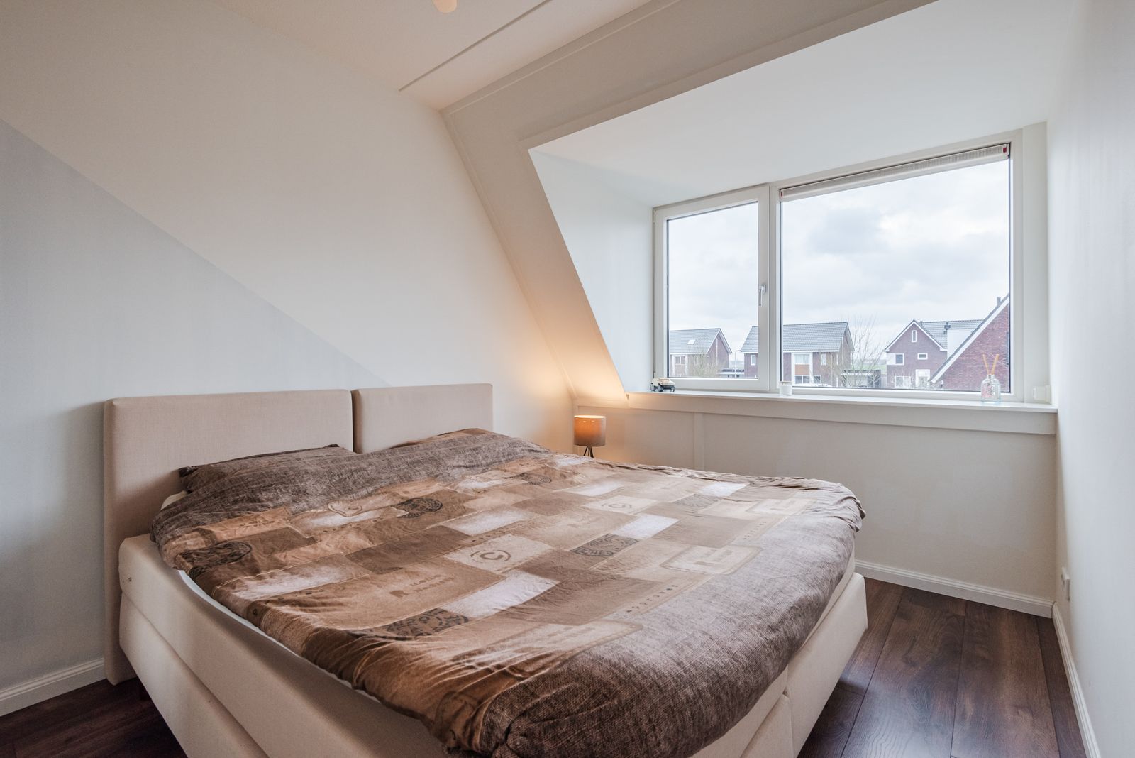 Twee slaapkamers aan de tuinzijde beschikken over een dakkapel met draai kiepramen en rolluiken. De derde slaapkamer aan de voorzijde heeft eveneens een dakkapel met draai kiepramen en rolluiken.