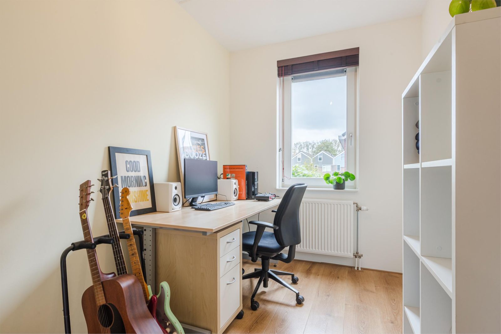 De tweede verdieping is ideaal voor een groter gezin met nog eens drie slaapkamers van goed formaat en de wasruimte/berging met de CV-ketel, mechanische ventilatie en de omvormers voor de zonnepanelen. De slaapkamer aan de voorzijde van de woning is voorzien van een wastafelmeubel.