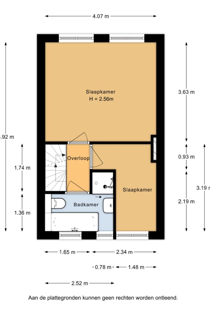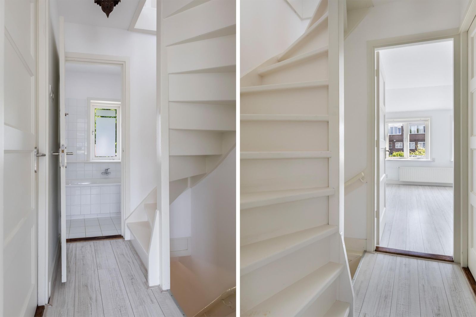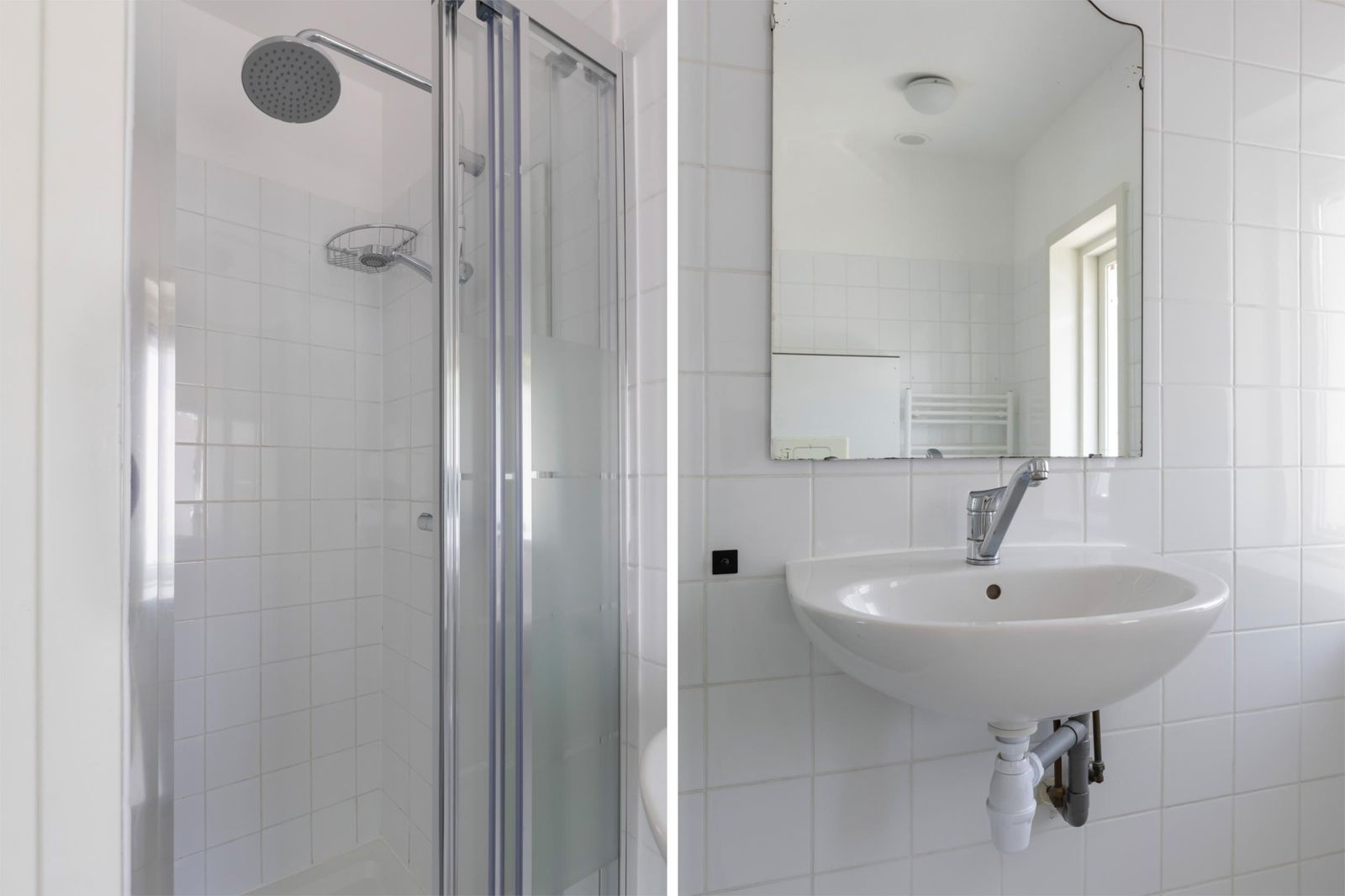 Twee slaapkamers waarvan een grote en een kleine. De badkamer heeft een ligbad, aparte douche, wastafel en een tweede toilet. De vaste trap brengt je naar boven.
