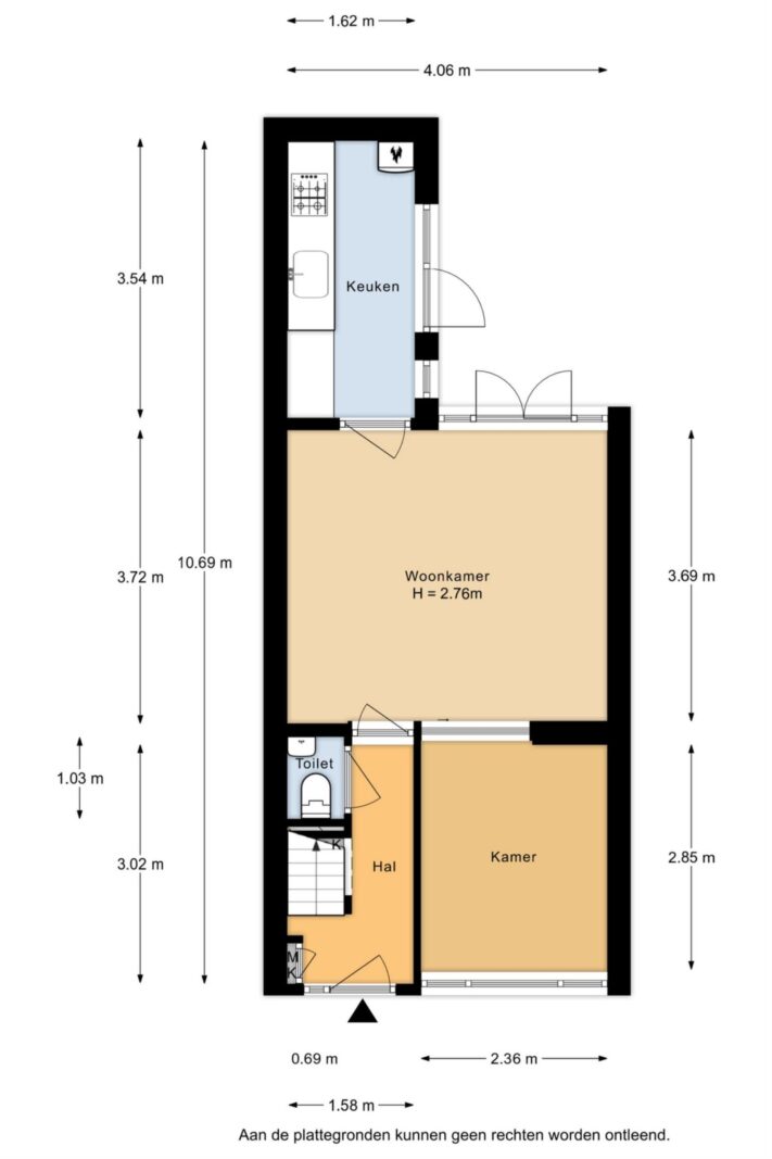 Entree met trapopgang, toilet en toegang tot de woonkamer met de openslaande deuren naar de achtertuin. De aparte voorkamer, bereikbaar via glas-in-lood schuifdeuren, is ideaal als eetkamer, werk- of speelruimte. De keuken is ruim en praktisch ingericht.