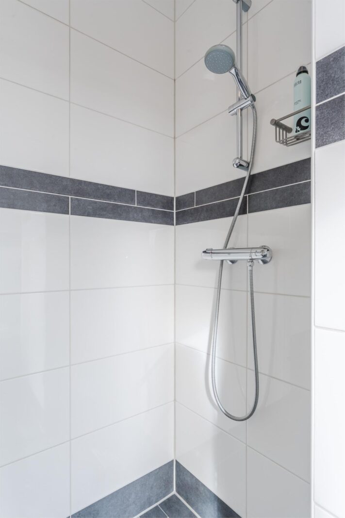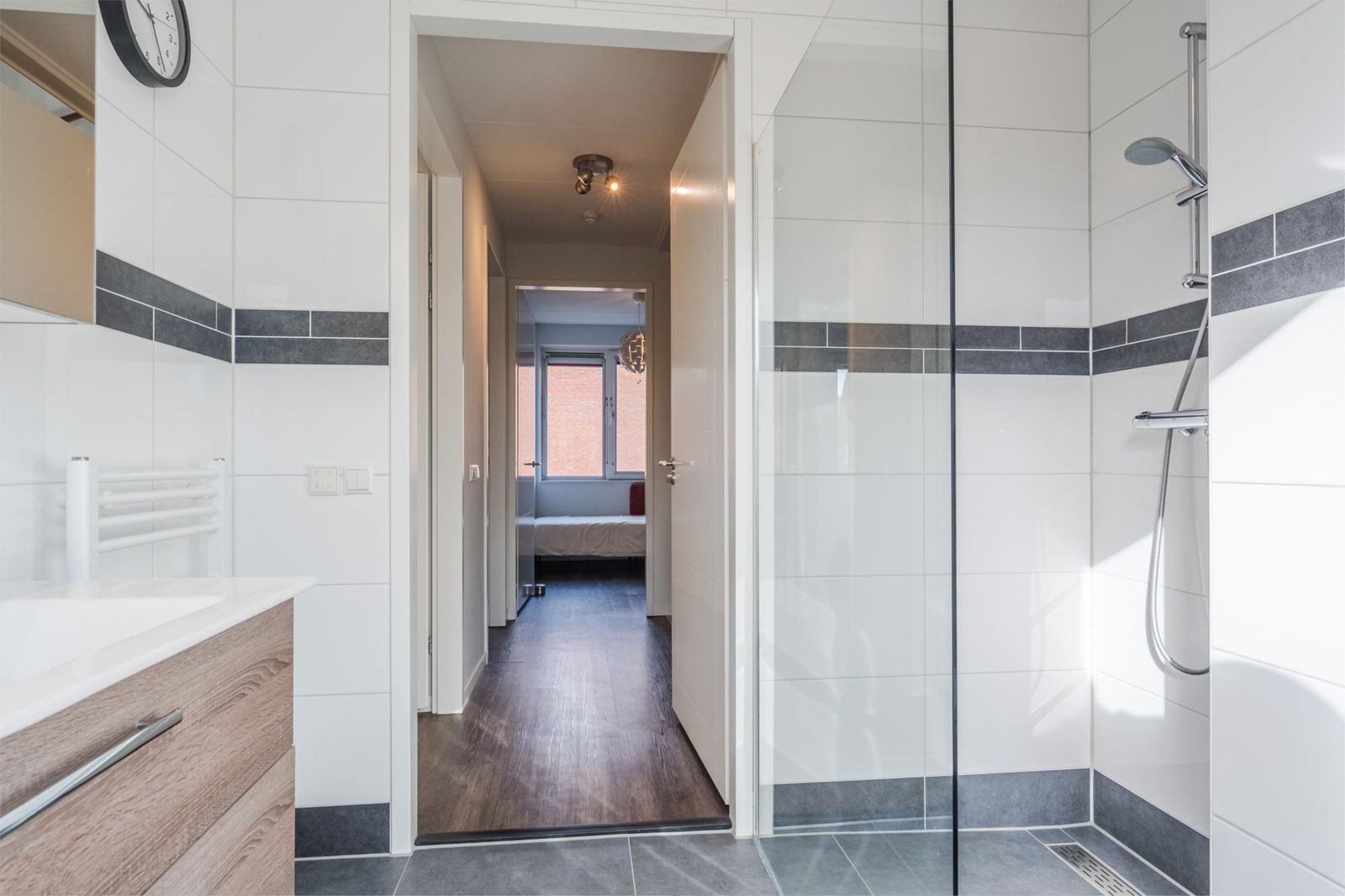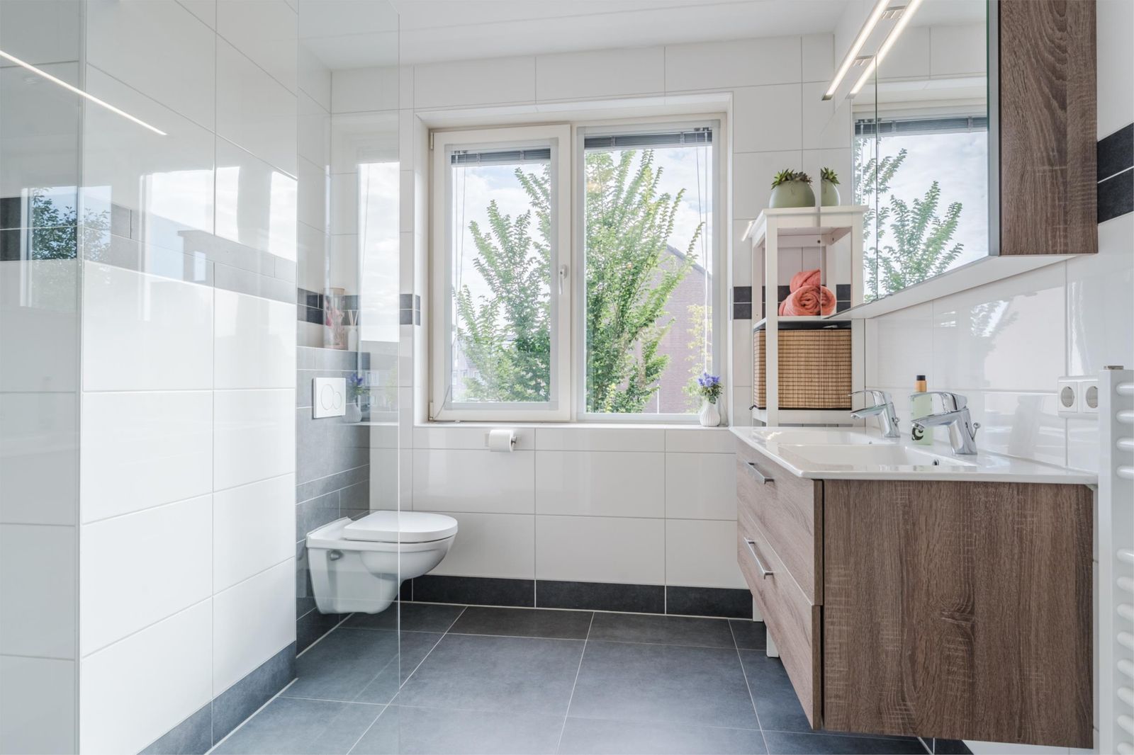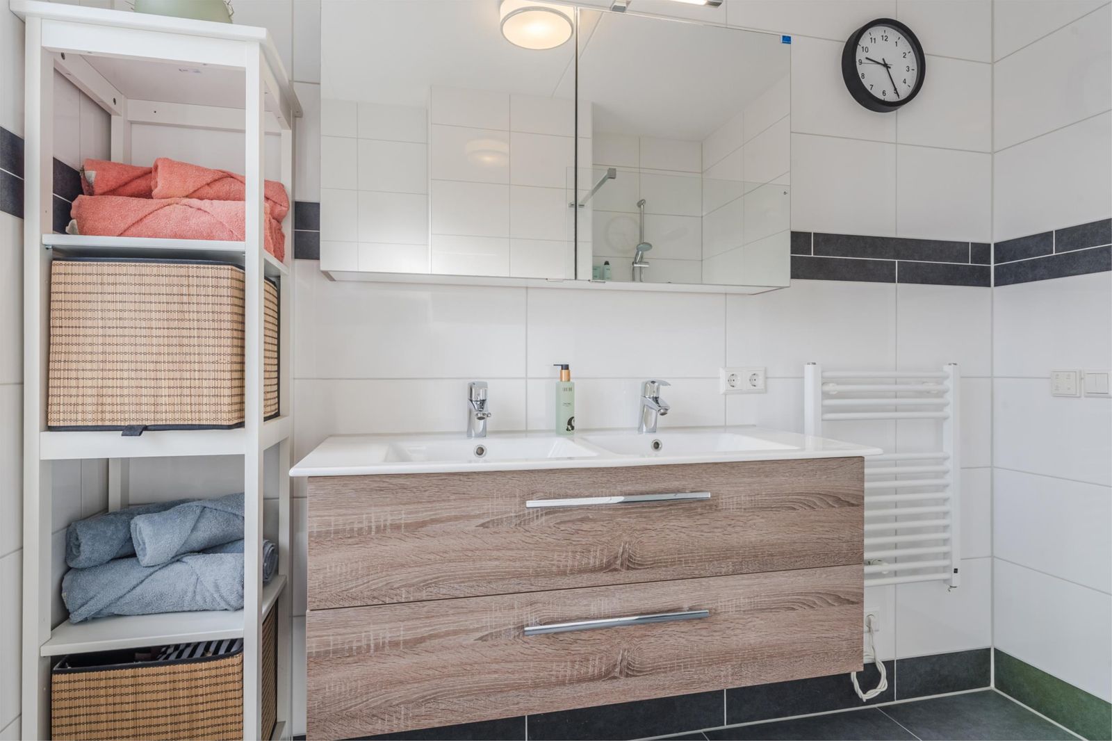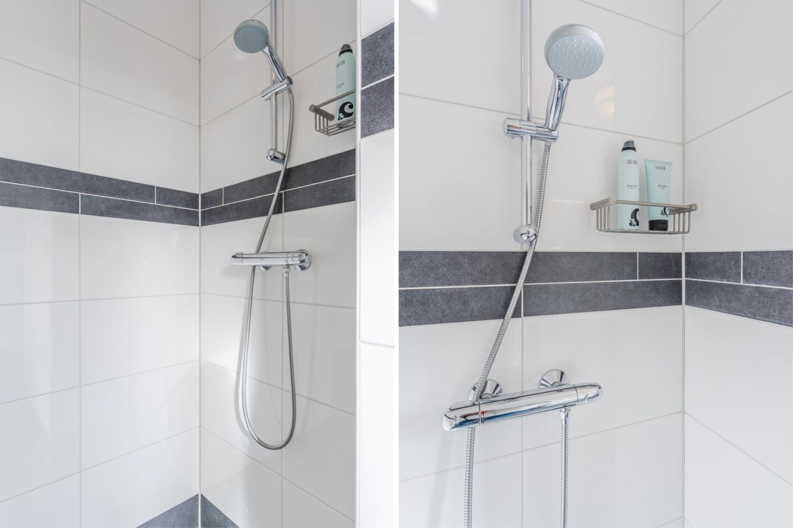De moderne badkamer is volledig betegeld en voorzien van een inloopdouche, wastafelmeubel, tweede toilet, vloerverwarming en een elektrische designradiator. Doordat de badkamer vanuit de bouw is vergroot, is het mogelijk hier een ligbad te plaatsen.