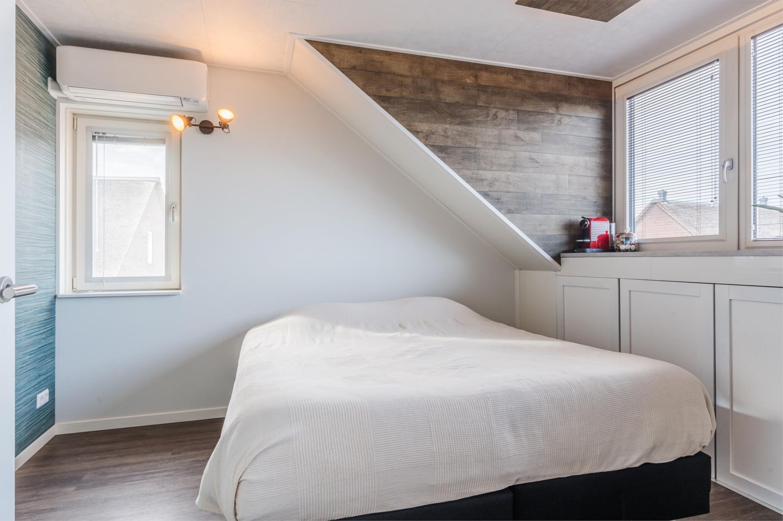 •Aan de achterzijde een grote slaapkamer met dakkapel, airco, rolluiken en een zijraam met hor
