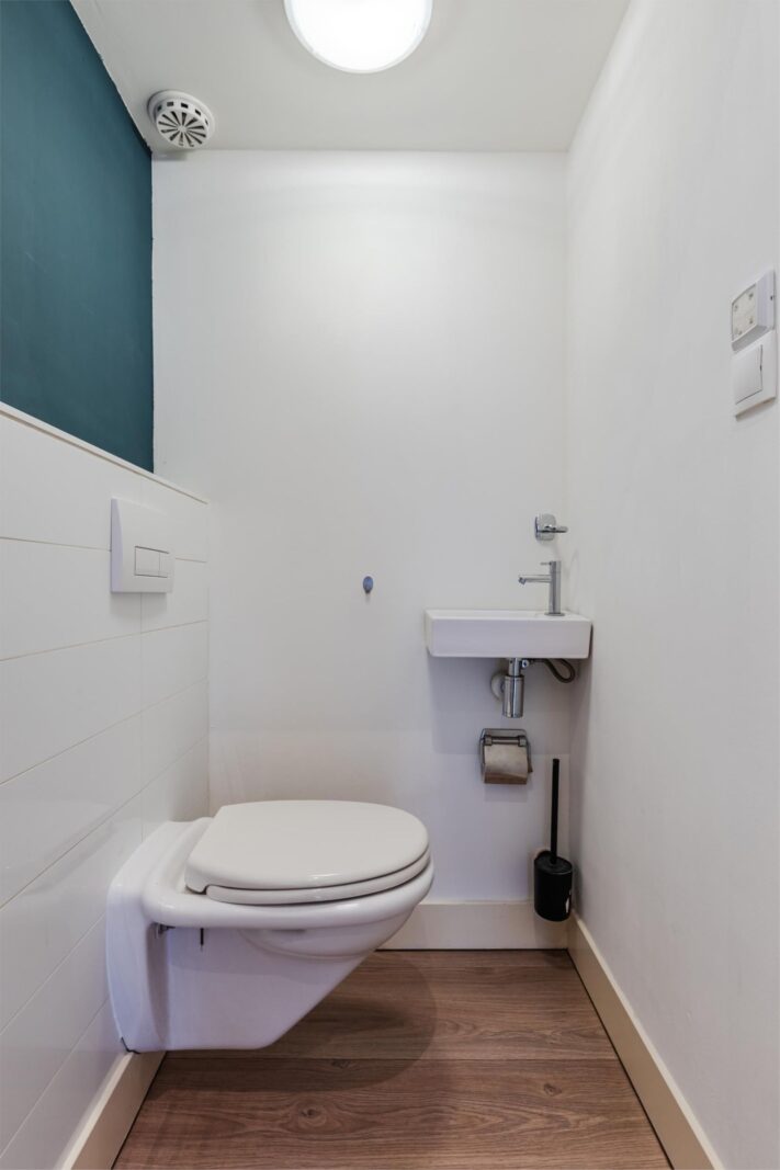 Inbouw verlichting. Raambekleding op maat incl. horgaas en laminaat, lichtinval voorzijde en badkamer mooi verlicht door koepel.
