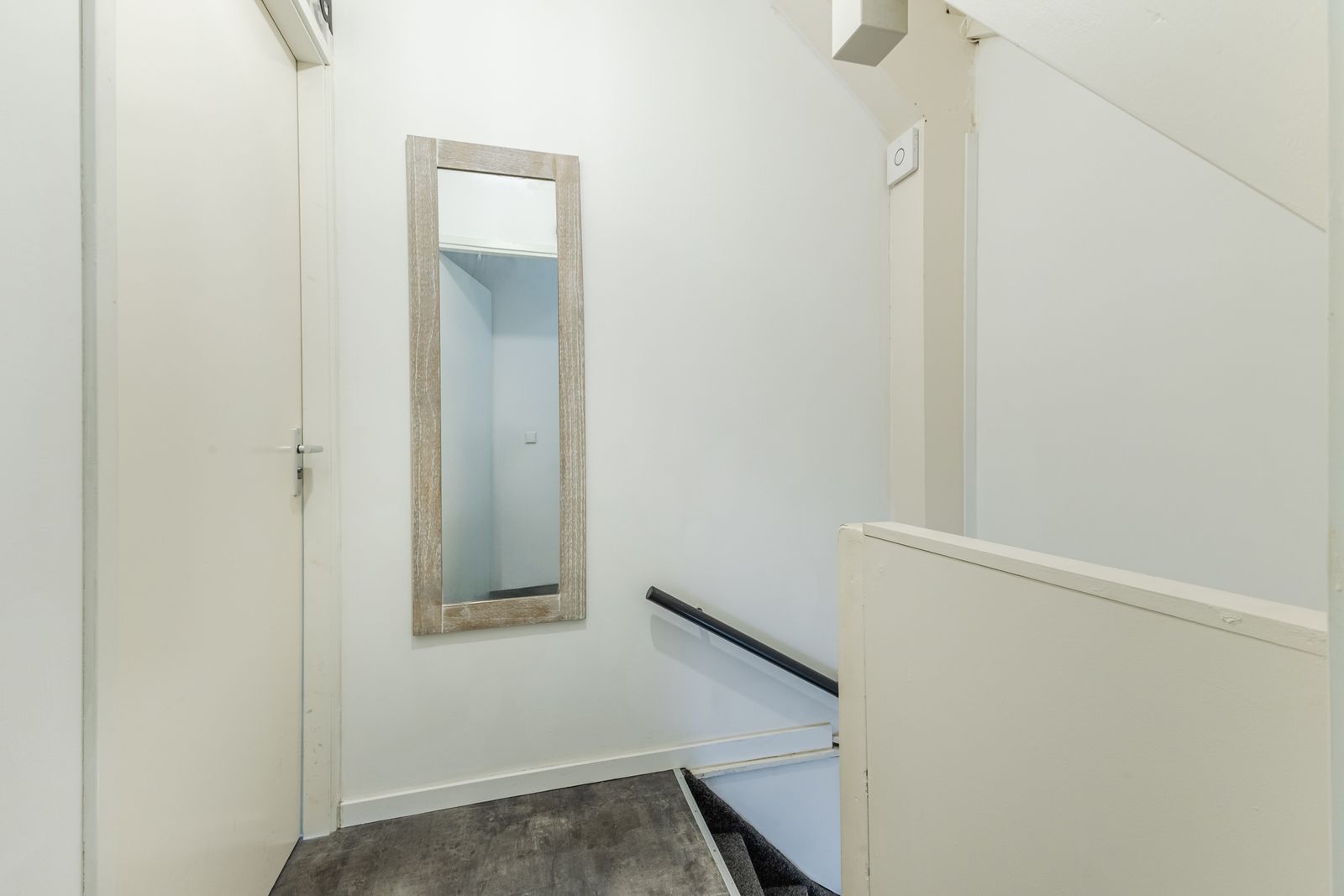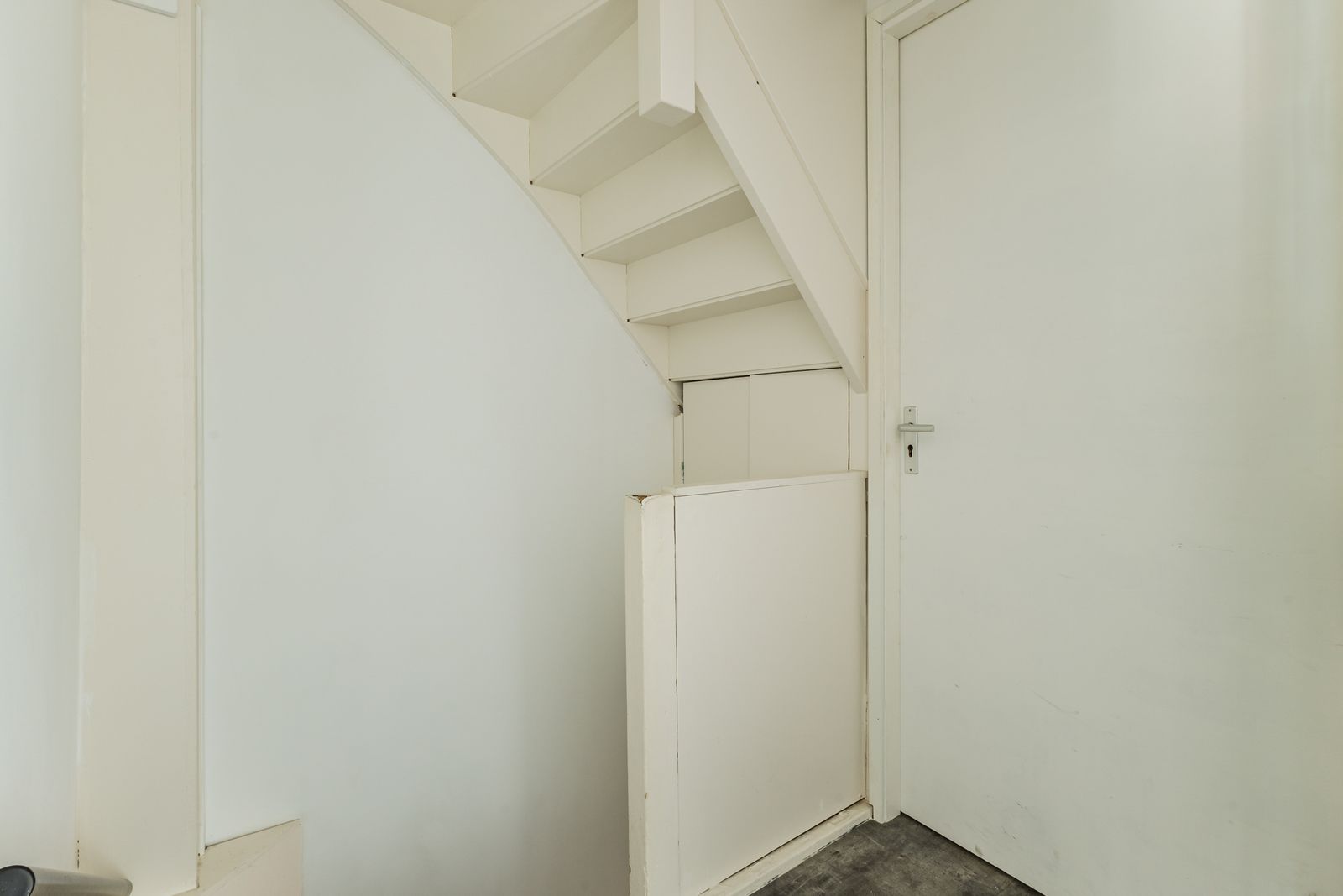 Begane grond: eigen entree op straatniveau met meterkast en trap naar de eerste verdieping.