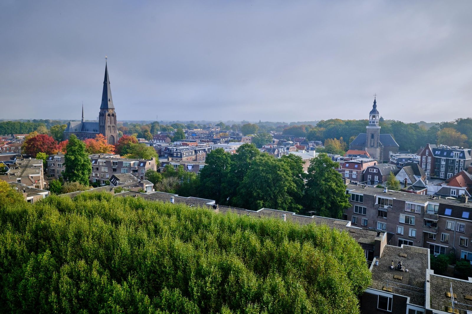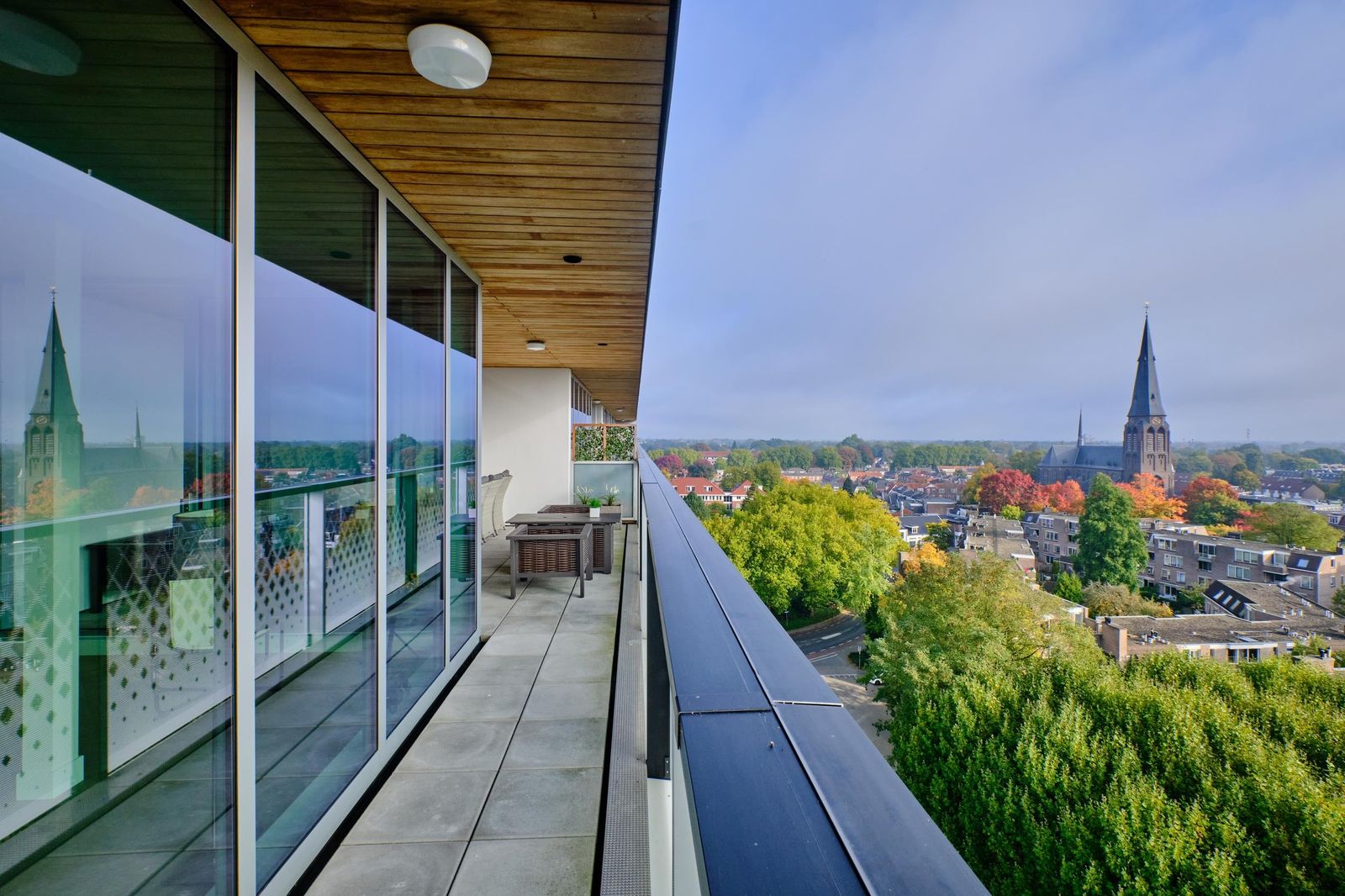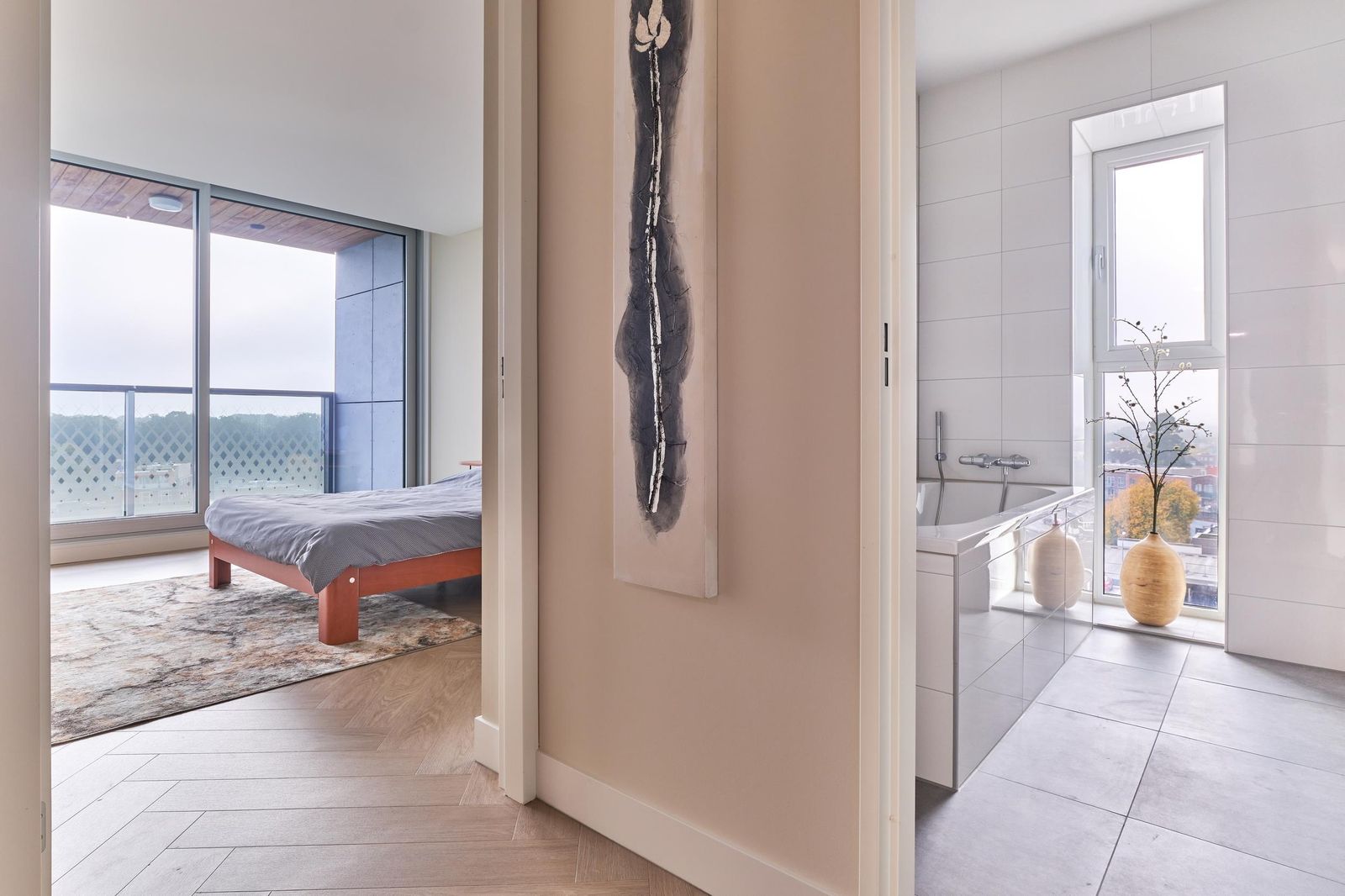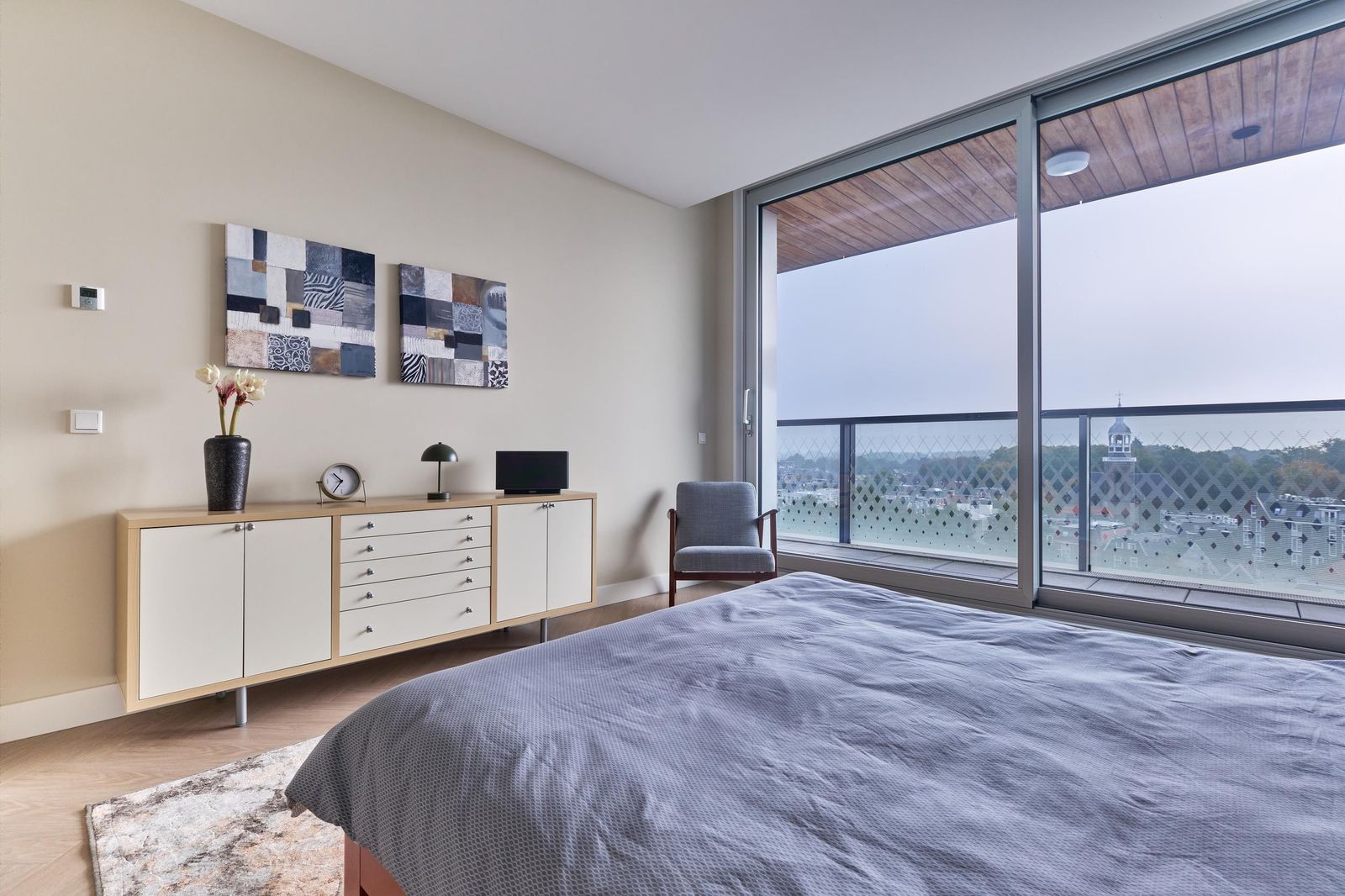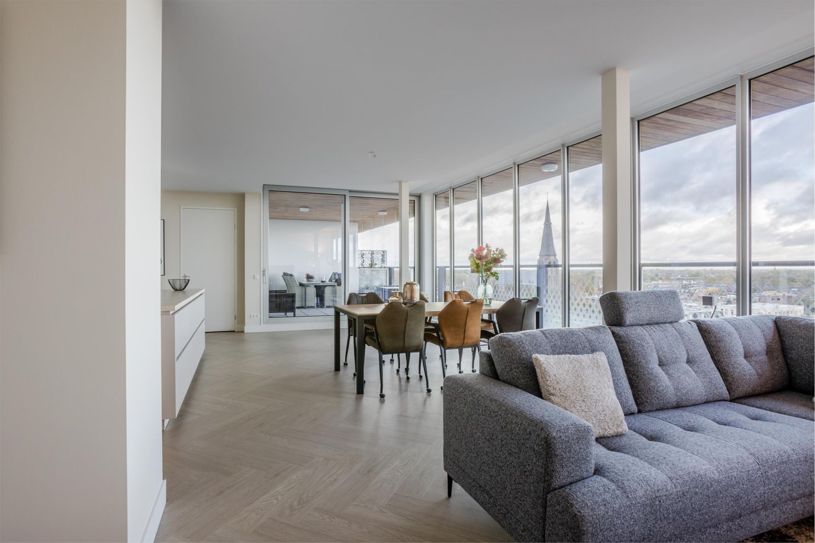 Dit penthouse met magnifiek uitzicht over de stad heeft een oppervlakte van circa 196 m² en is te bereiken via de lift of de trap. De ruime hal met garderobenis biedt toegang tot alle vertrekken. Allereerst de royale woonkamer, drie ruime slaapkamers, badkamer, berging en apart toilet.