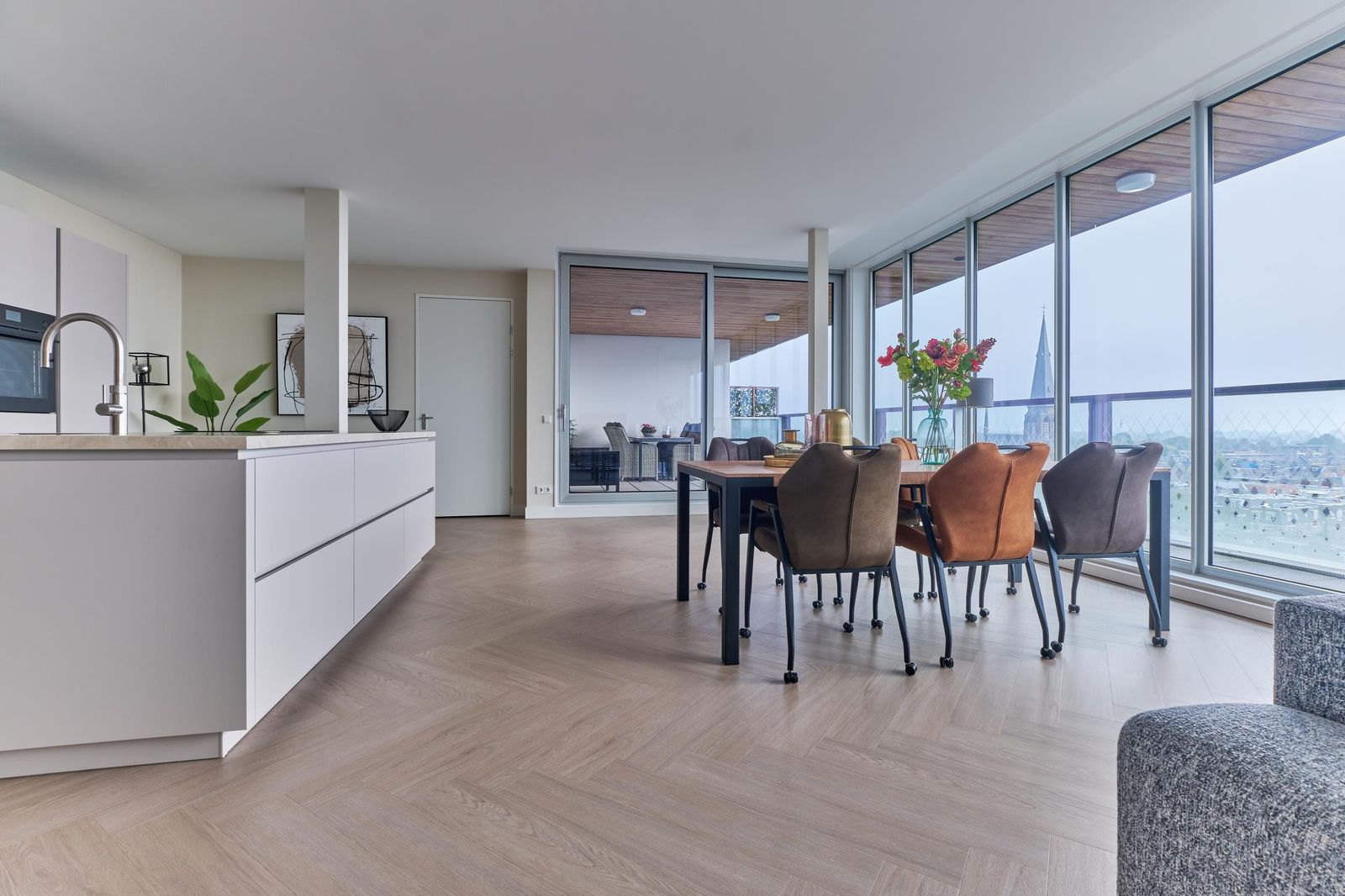 Gelijkvloers wonen op de zevende verdieping met veel leefruimte en een prachtig panoramisch uitzicht? Kijk dan eens naar dit royale penthouse van Het Stads Huis. Hier woon je midden in de stad, in een instapklaar, luxe en modern appartement met twee terrassen en twee parkeerplaatsen.