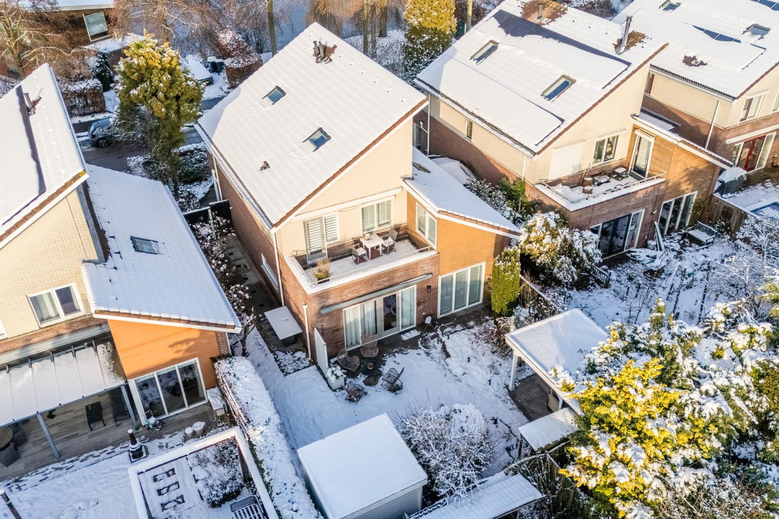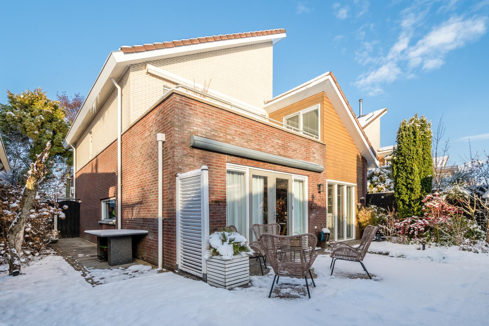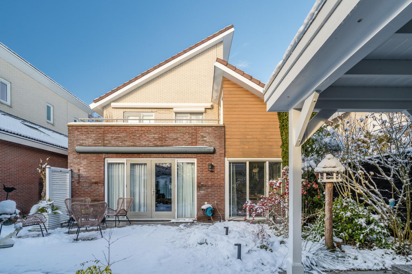 De buitenruimte mag ook zeker benoemd worden. Zo staat de woning op een mooi kavel van 363 m² eigen grond en kunt u met twee auto's op eigen terrein parkeren. Uiteraard mag een ruime garage niet ontbreken bij zo'n schitterende woning. De achtertuin is op het zuiden gelegen en voorzien van een knusse overkapping en een extra berging. Zit u liever op uw balkon of op een ruim dakterras? Beide opties zijn hier aanwezig op de 1e verdieping!
