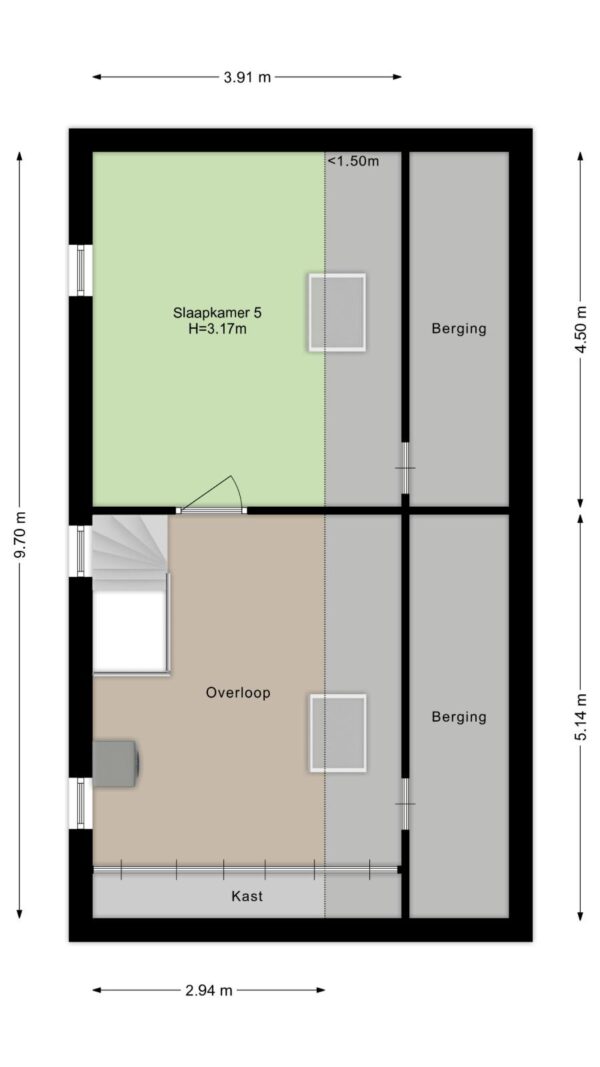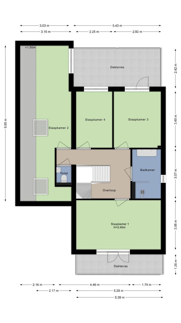 2e verdieping (voorzien van een laminaatvloer):
