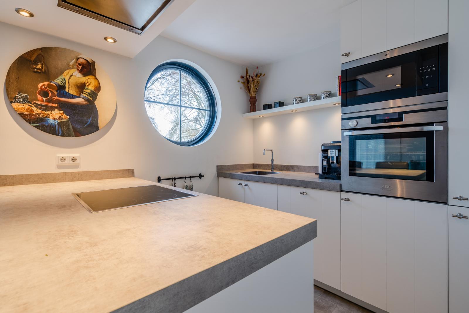 De moderne keuken met kookeiland is vernieuwd in 2018, is een ware droom voor de culinaire liefhebber. Deze biedt niet alleen voldoende opbergruimte maar ook de nieuwste apparatuur om alle smakelijke gerechten te bereiden. De keuken is straatgericht en kijkt uit richting het Havendiep.
