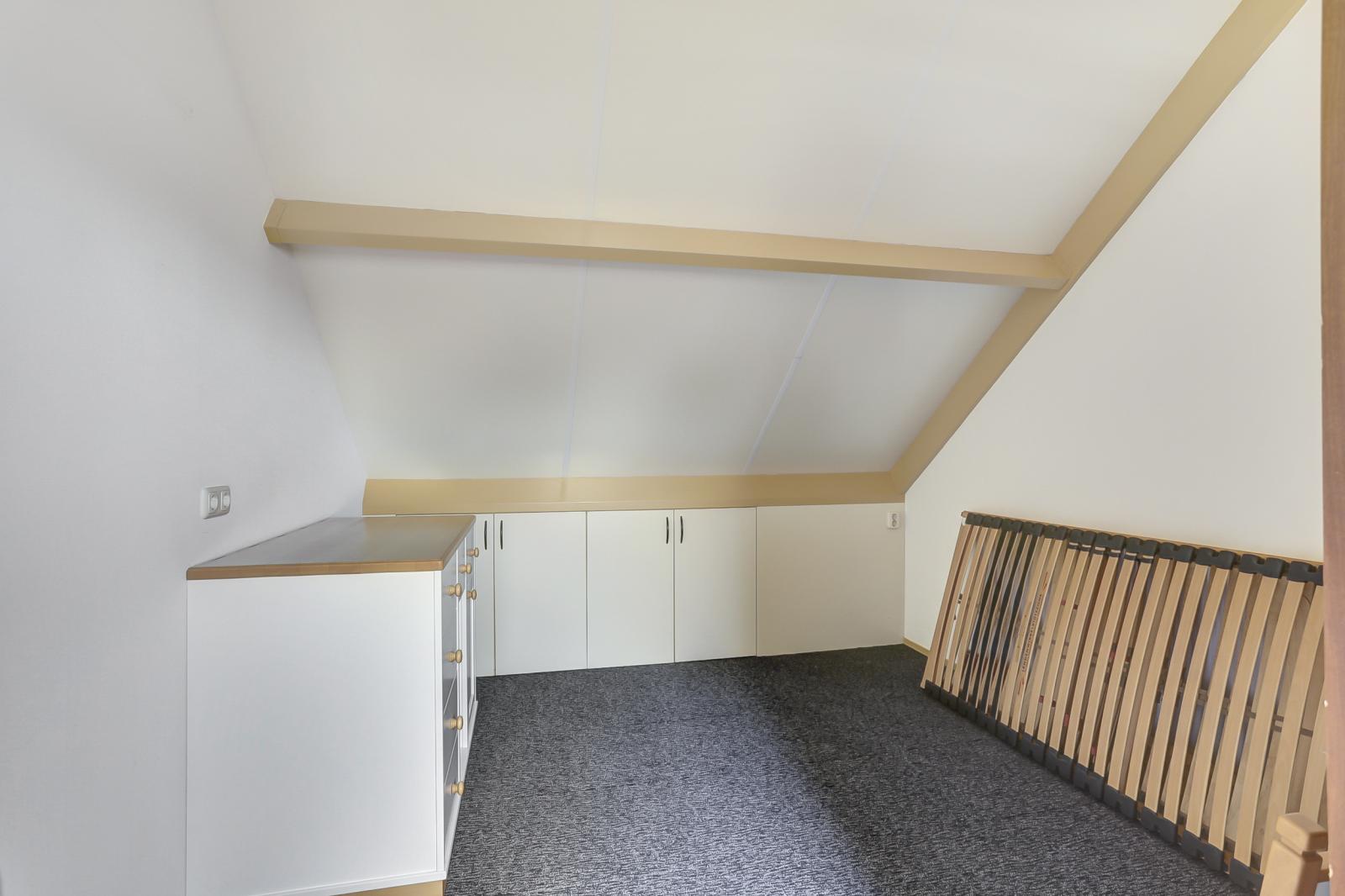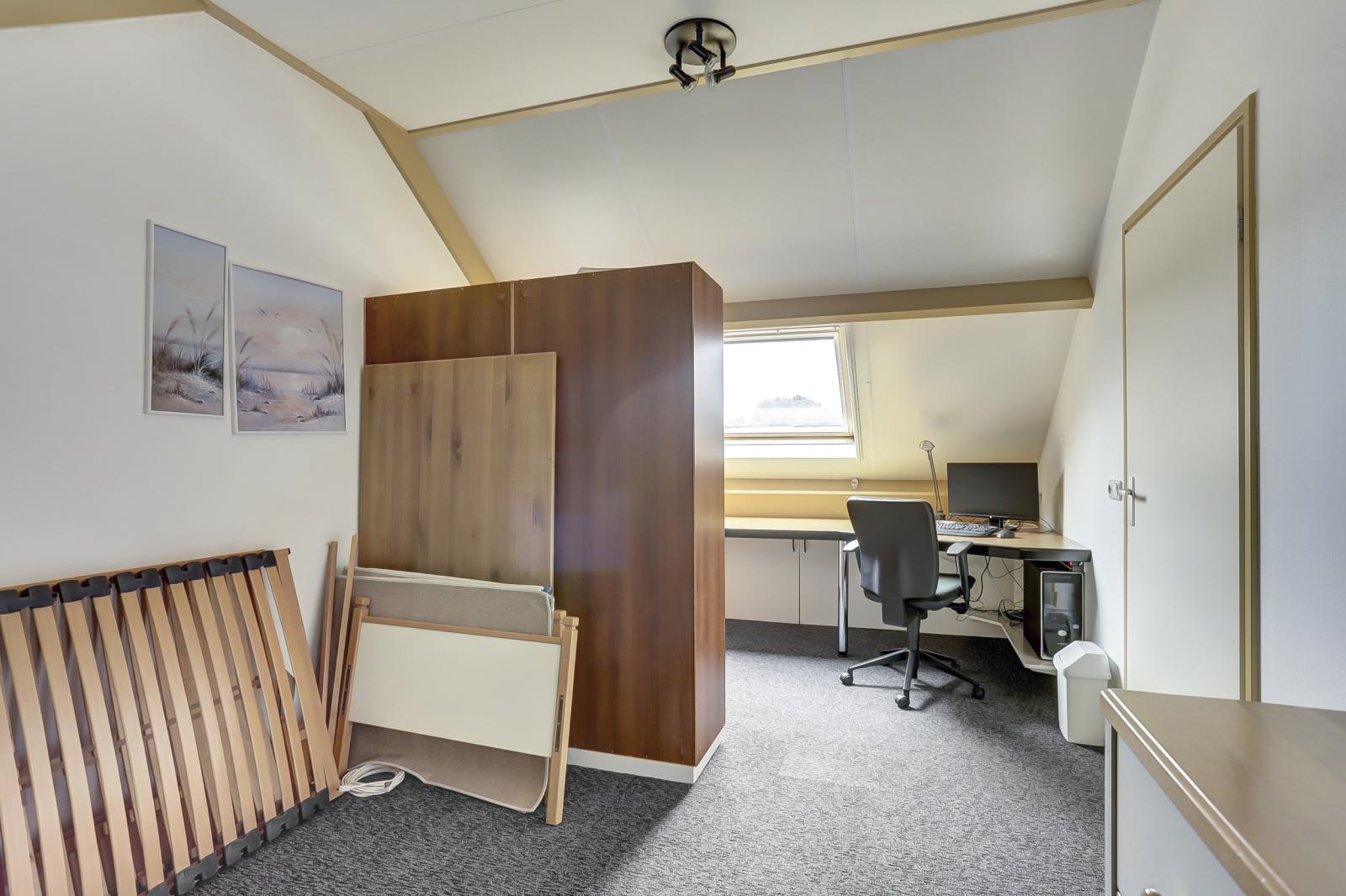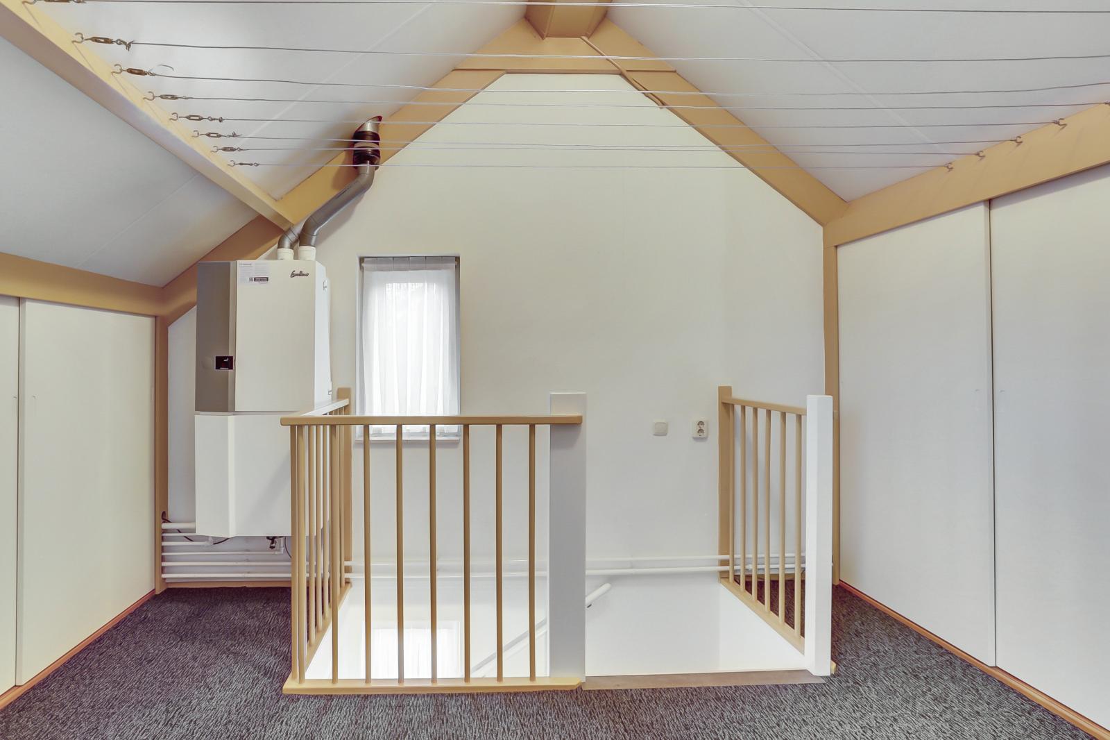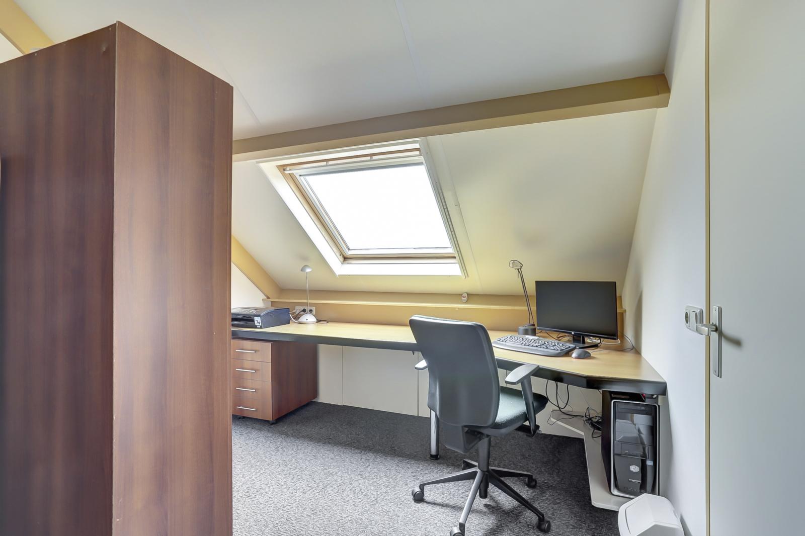 Via een vaste trap bereikt u de zolder met cv-opstelling en een aparte kantoorruimte, die ook als extra slaapkamer kan worden ingericht.