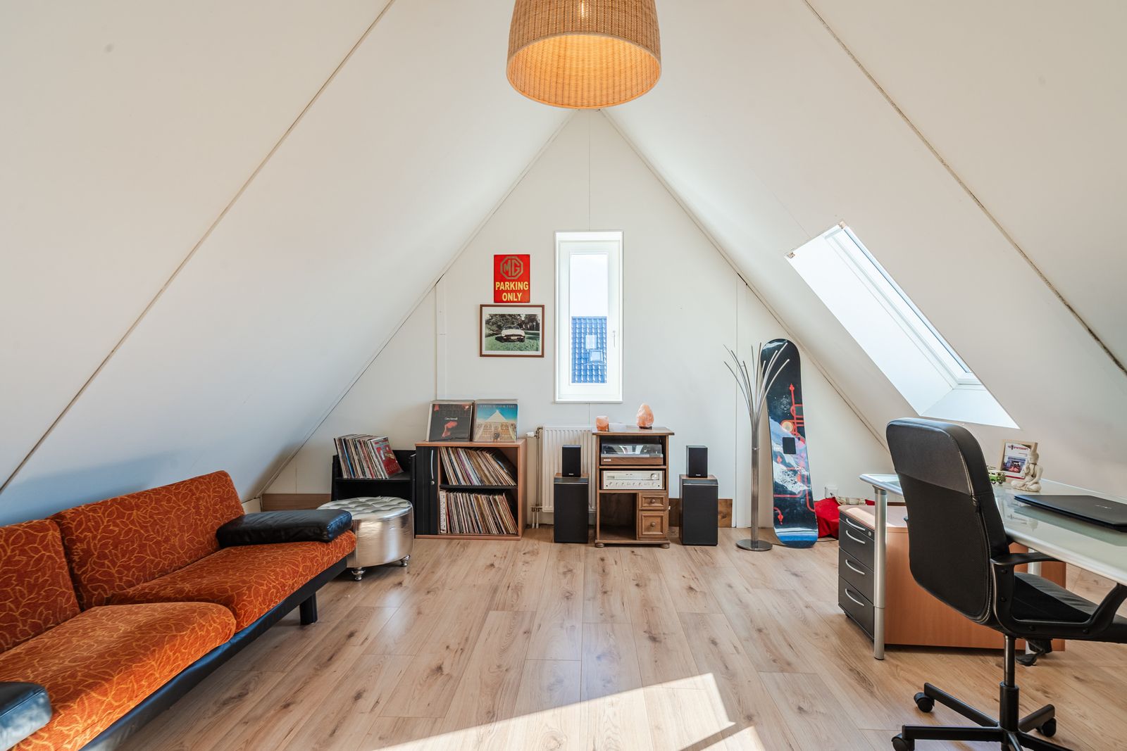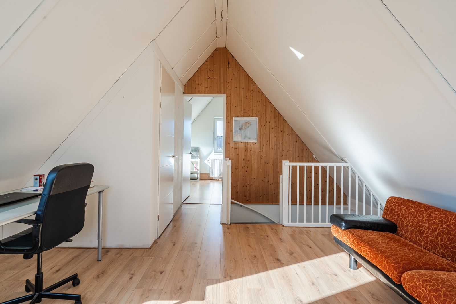 * Grote 2e etage met schuin dak van bijna 3,5 meter hoog