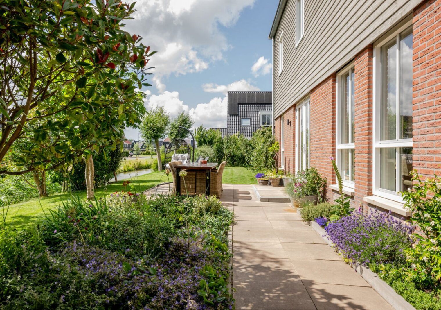 Hier kun je meteen relaxen en genieten. Van de stilte en het licht in de ruime woonkamer met hoge ramen. Van de stijlvolle badkamer (alsof je in een luxe hotel bent!). Van de mega-masterbedroom. En van de grote groene tuin op het zuidwesten vol zon- en schaduwplekjes. De tuin is trouwens onderhoudsvriendelijk, dus ga gerust loungen onder de veranda. De kids vermaken zich wel, peddelend in de sloot of spelend op straat – dat kan hier nog gewoon!