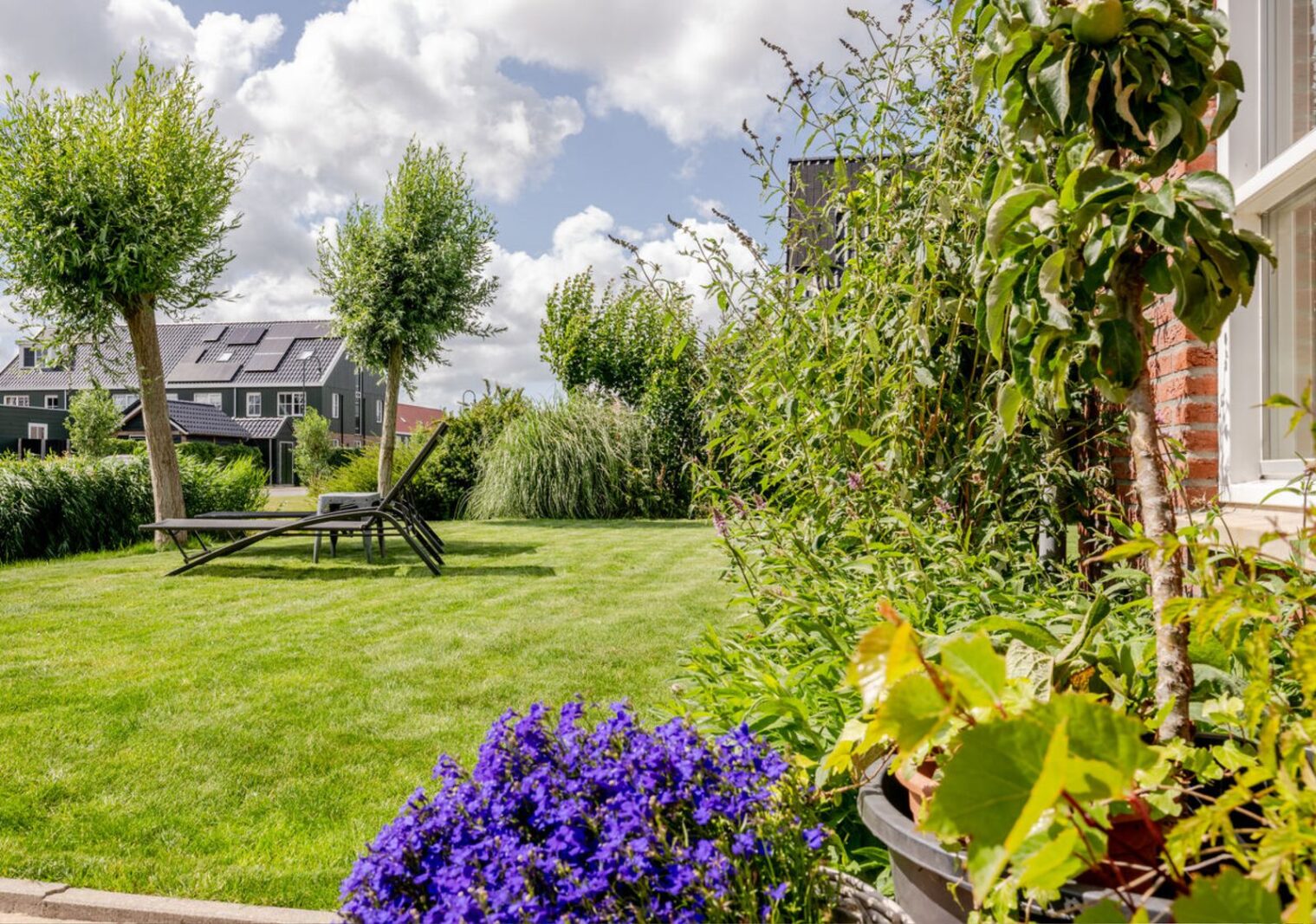 * Zonnige, onderhoudsvriendelijke tuin van 28 meter breed (515 m2)