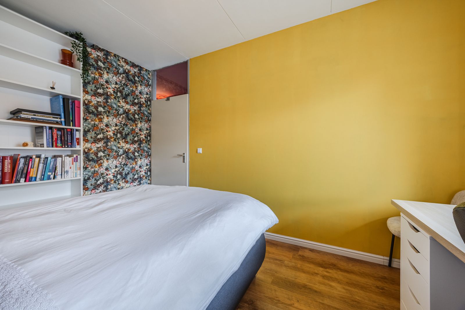 Aan de voorzijde van het huis zijn twee lichte slaapkamer gesitueerd, de eerste van circa 6 m2 uitermate geschikt als kinderkamer of studeerkamer. De tweede slaapkamer heeft een oppervlakte van 8,5 m2, in deze kamer hangt ook de CV ketel uit 2021 en koolstofmonoxidemeter, netjes weggewerkt in een kast. Aan de achterzijde ligt de masterbedroom, welke is voorzien van inbouw kasten, elektrische zonnewering en HR+ glas. Op de eerste verdieping is ook een praktische berg-/opslagruimte en de moderne badkamer (2025). De badkamer is luxe uitgevoerd en voorzien van een ligbad, douchecabine, wastafelmeubel, toilet en elektrische handdoekradiator. De gehele bovenverdieping is voorzien van laminaat.