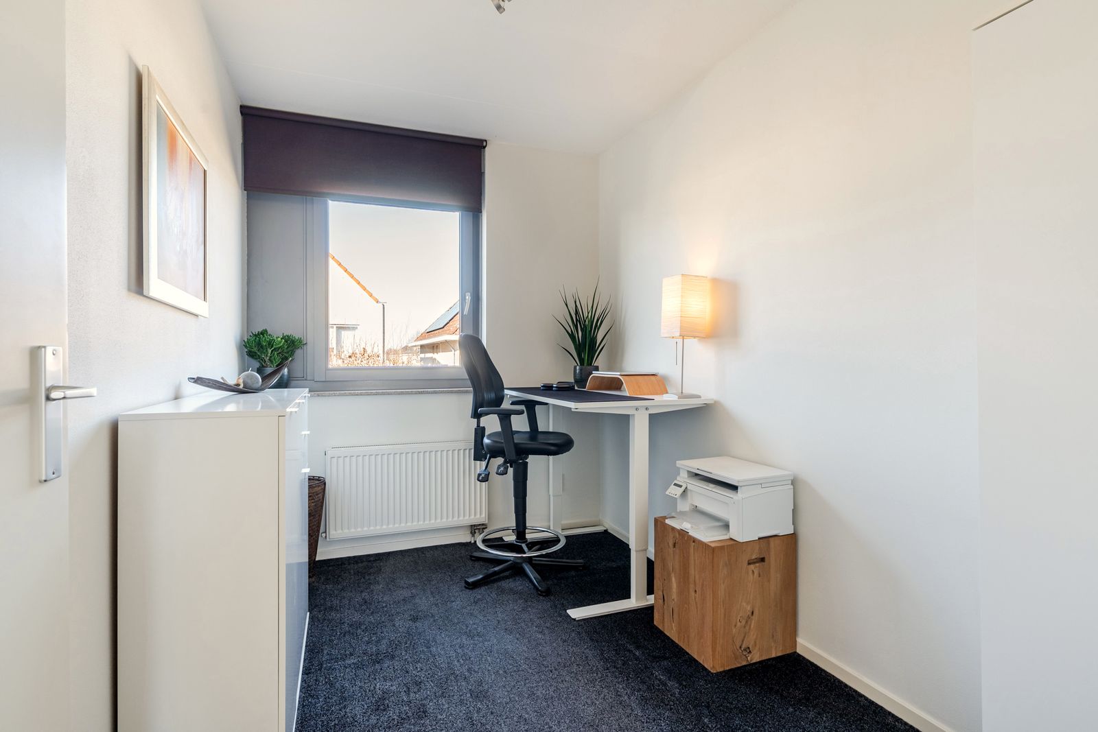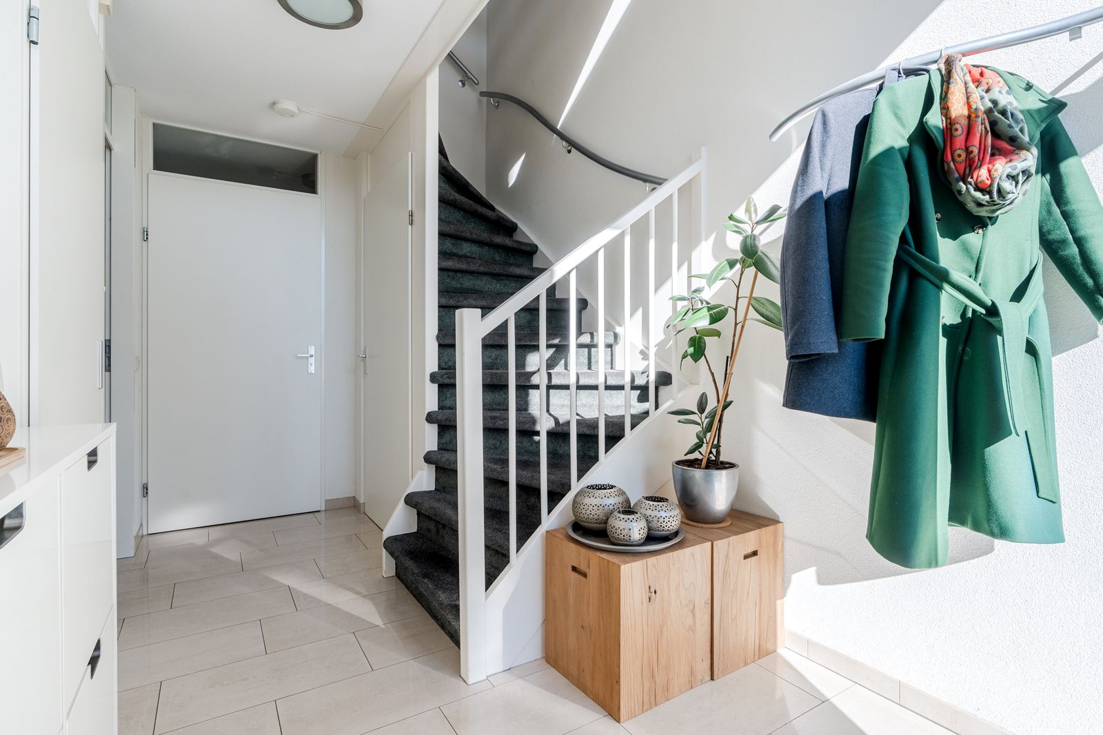 A closed-off equipment/technical area on this level houses the washing machine, dryer, central heating system, the solar inverter and provides space for a future (hybrid) heat pump or home battery.