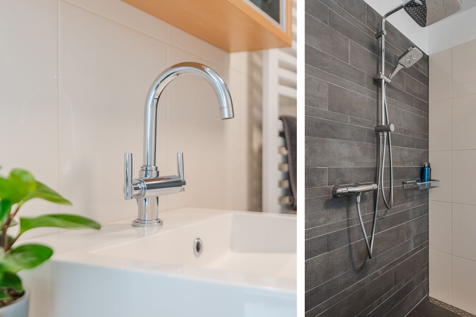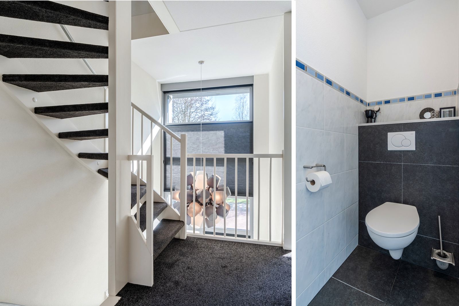 De gehele eerste verdieping en de trappen zijn voorzien van hoogwaardig tapijt. De badkamer heeft een luxe uitstraling dankzij de designtegels, ruime inloopdouche met grote glaswand, regen- en handdouche en het ligbad.