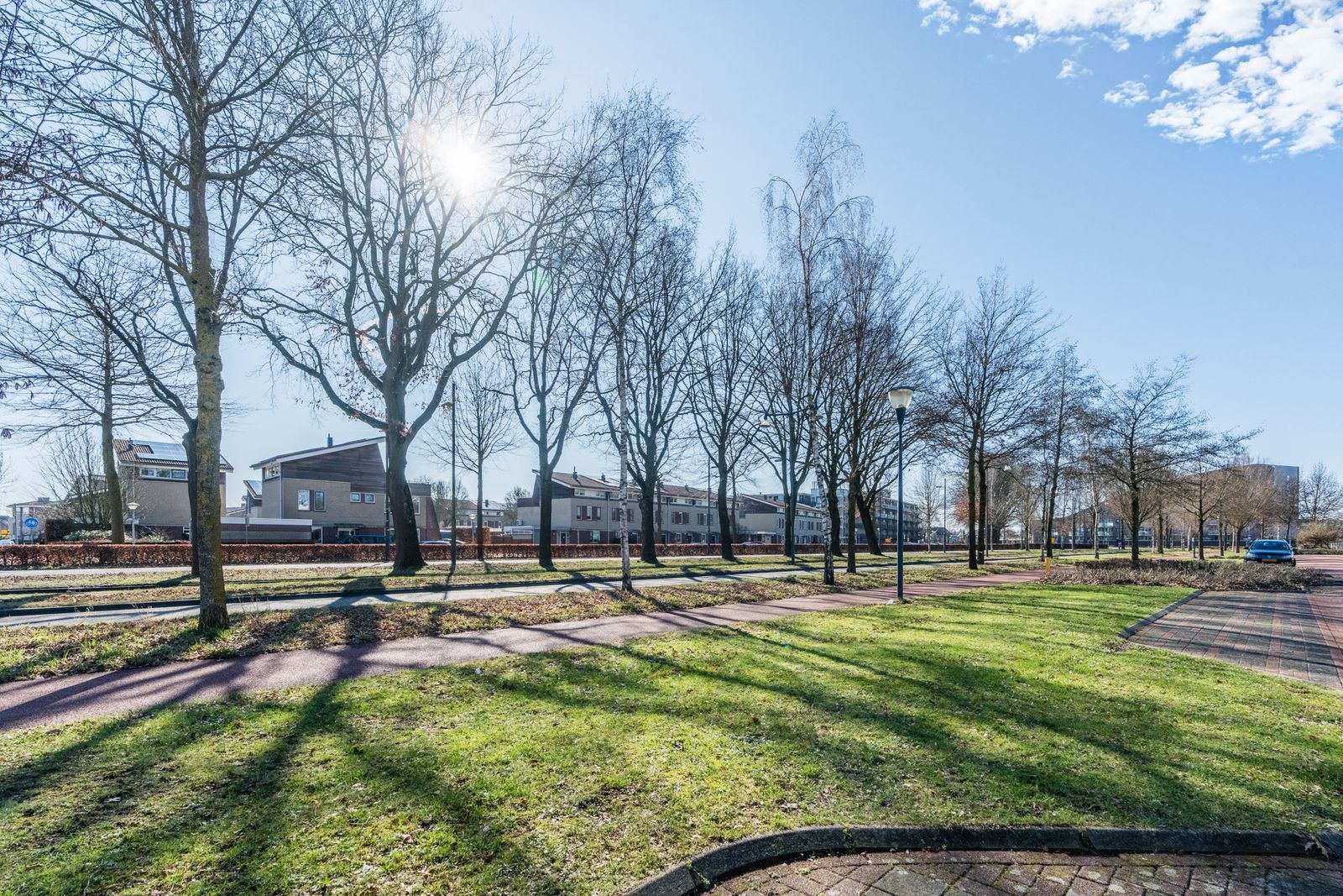 - aan rustige weg, in woonwijk, open ligging, vrij uitzicht