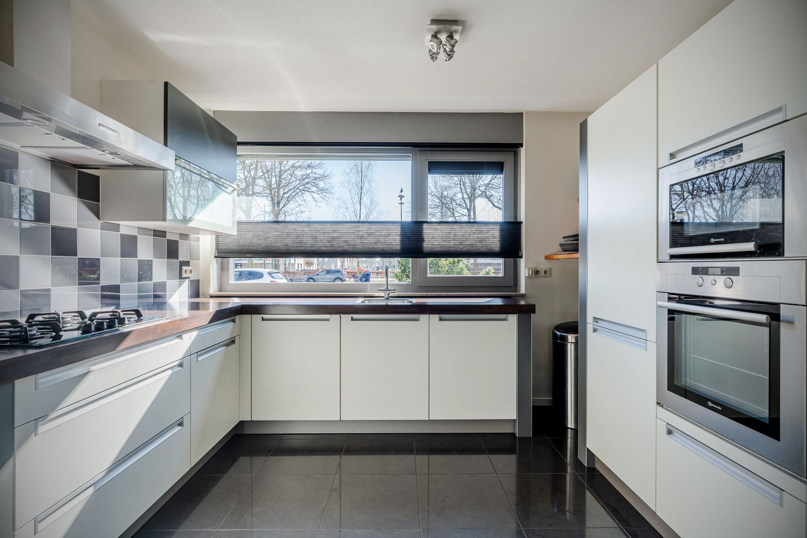 De woning is kwalitatief en netjes afgewerkt. Op de begane grond liggen luxe keramische designtegels, gecombineerd met een Afzelia houten parketvloer en moderne designradiatoren. De keuken is uitgerust met een gaskookplaat, afzuigkap, losse oven en magnetron, energiezuinige vaatwasser (2019) en koel-vriescombinatie (2024).