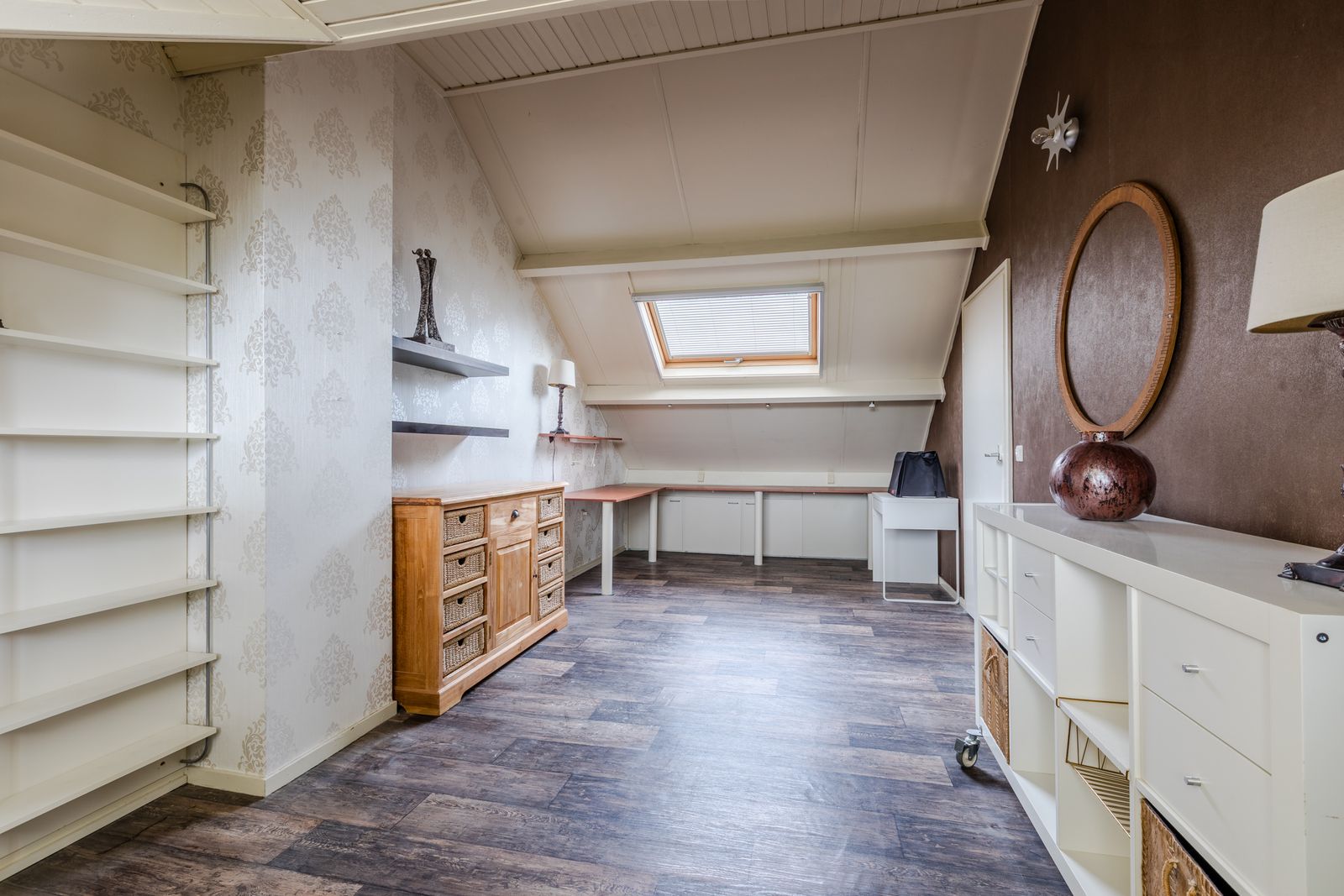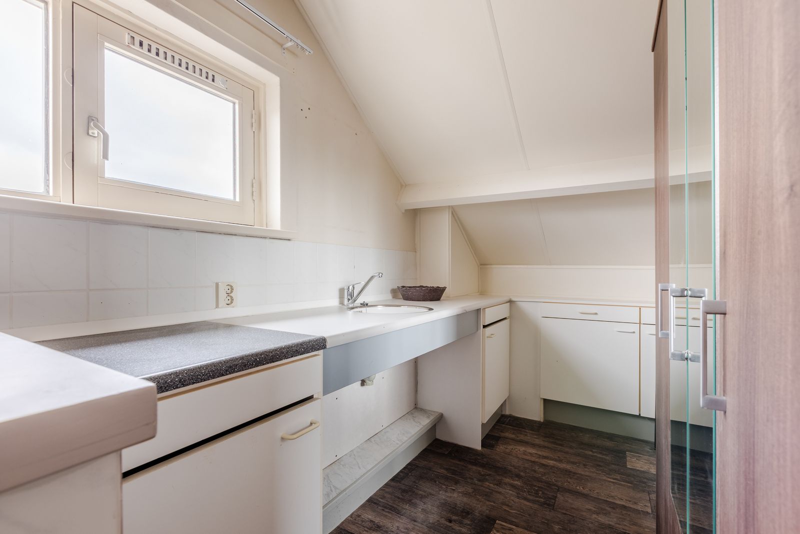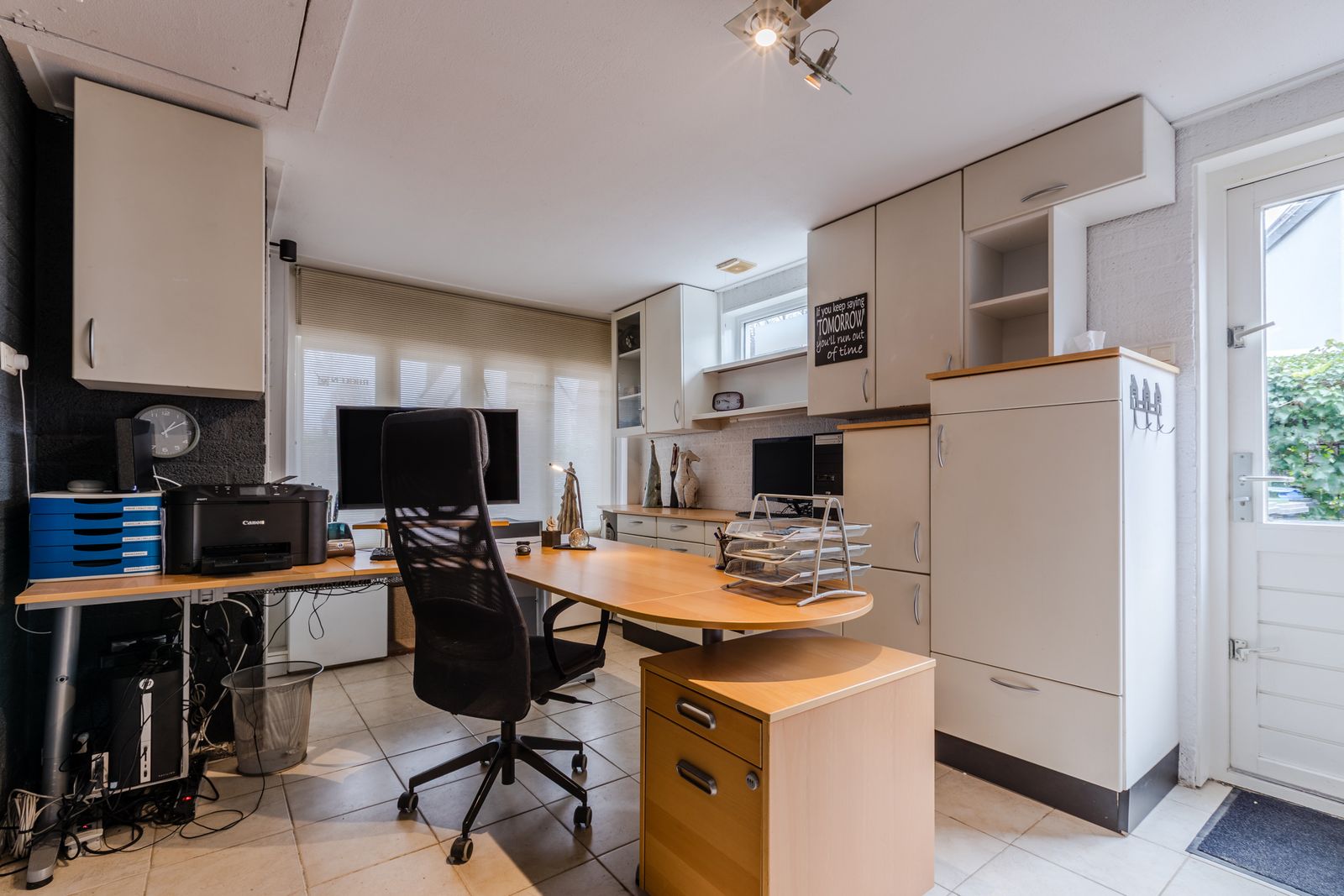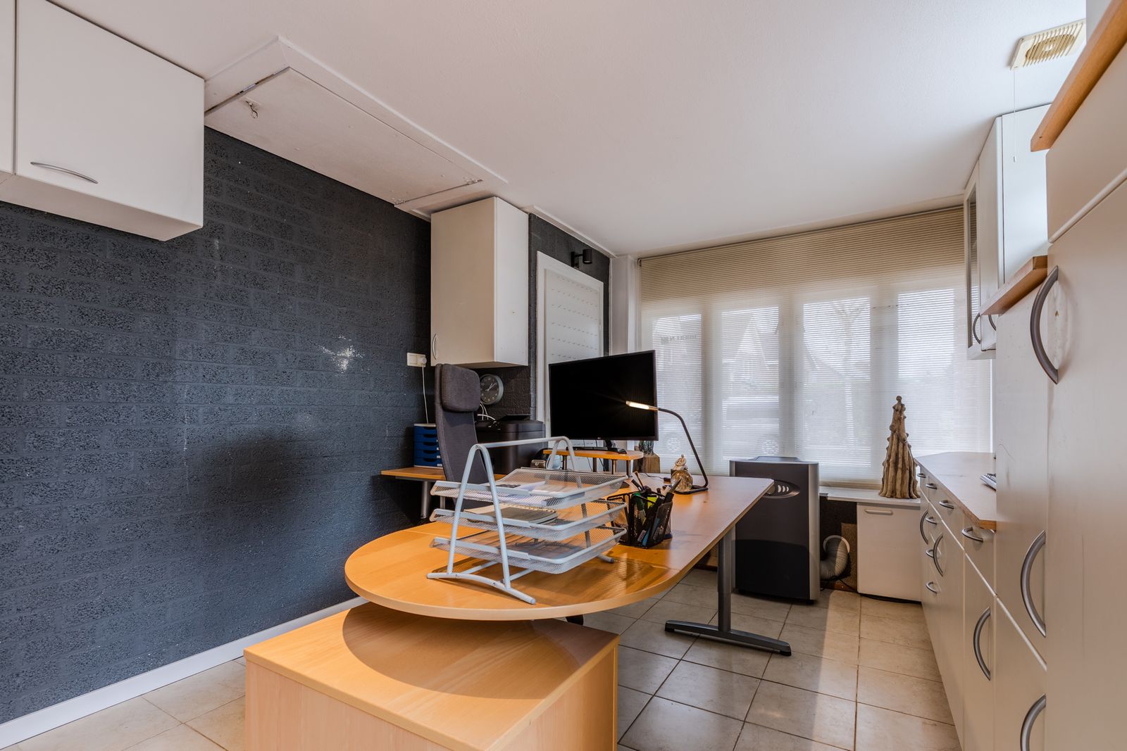 Vanuit de keuken/bijkeuken kom je in een heerlijk lichte kantoorruimte met daarboven nog een verrassend grote zolderruimte.