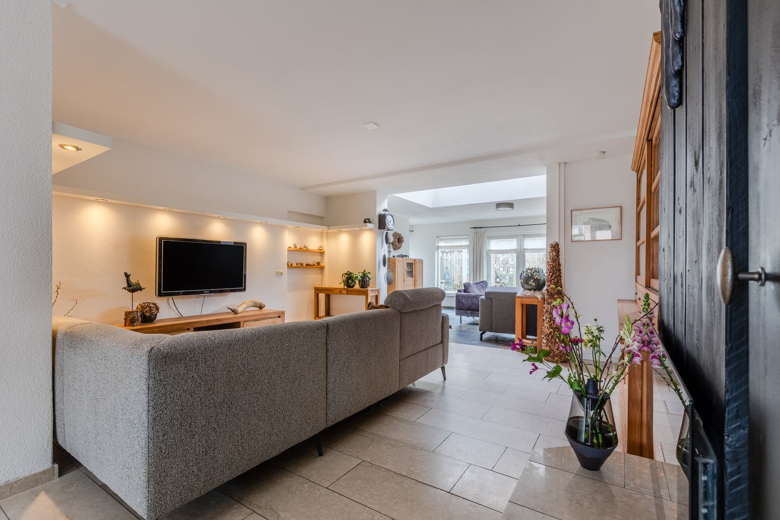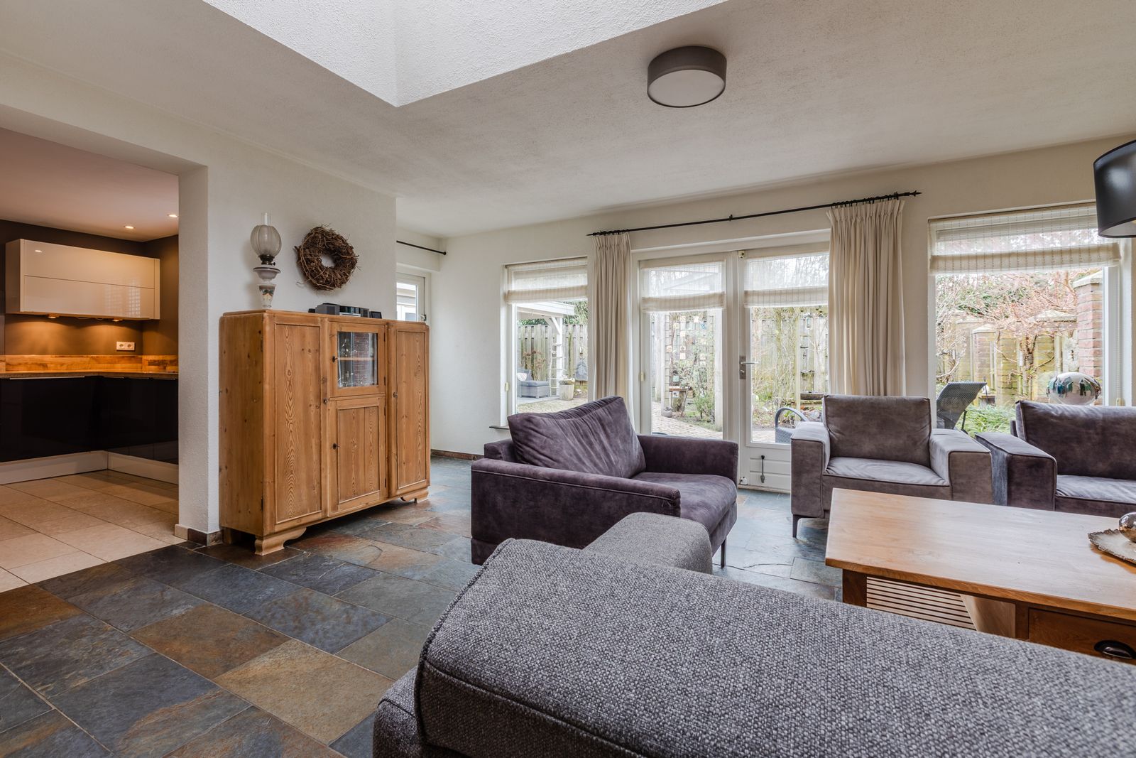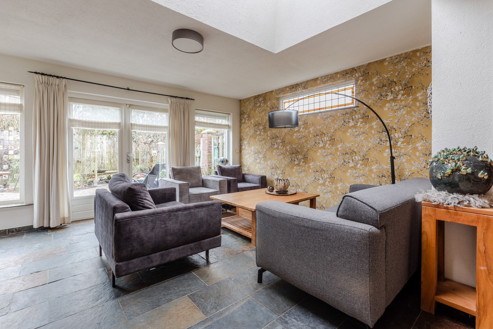 Woon-eetkamer met aan de achterzijde een ruime uitbouw.
