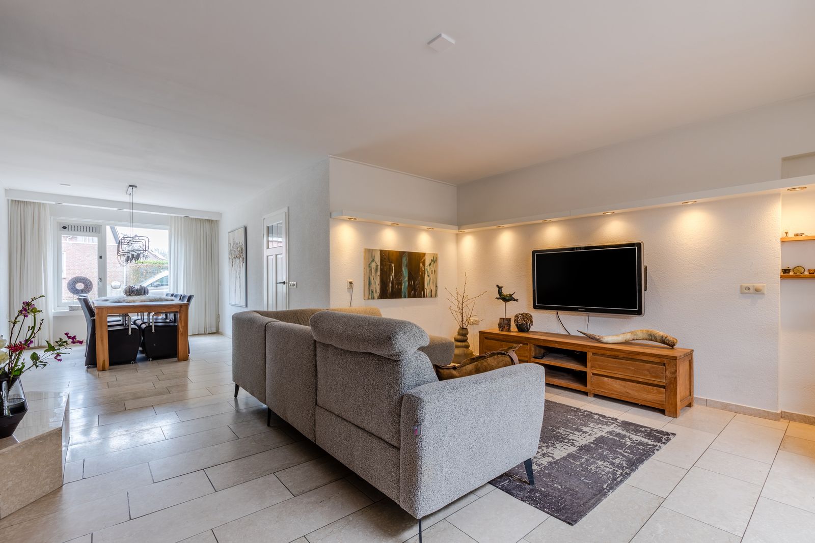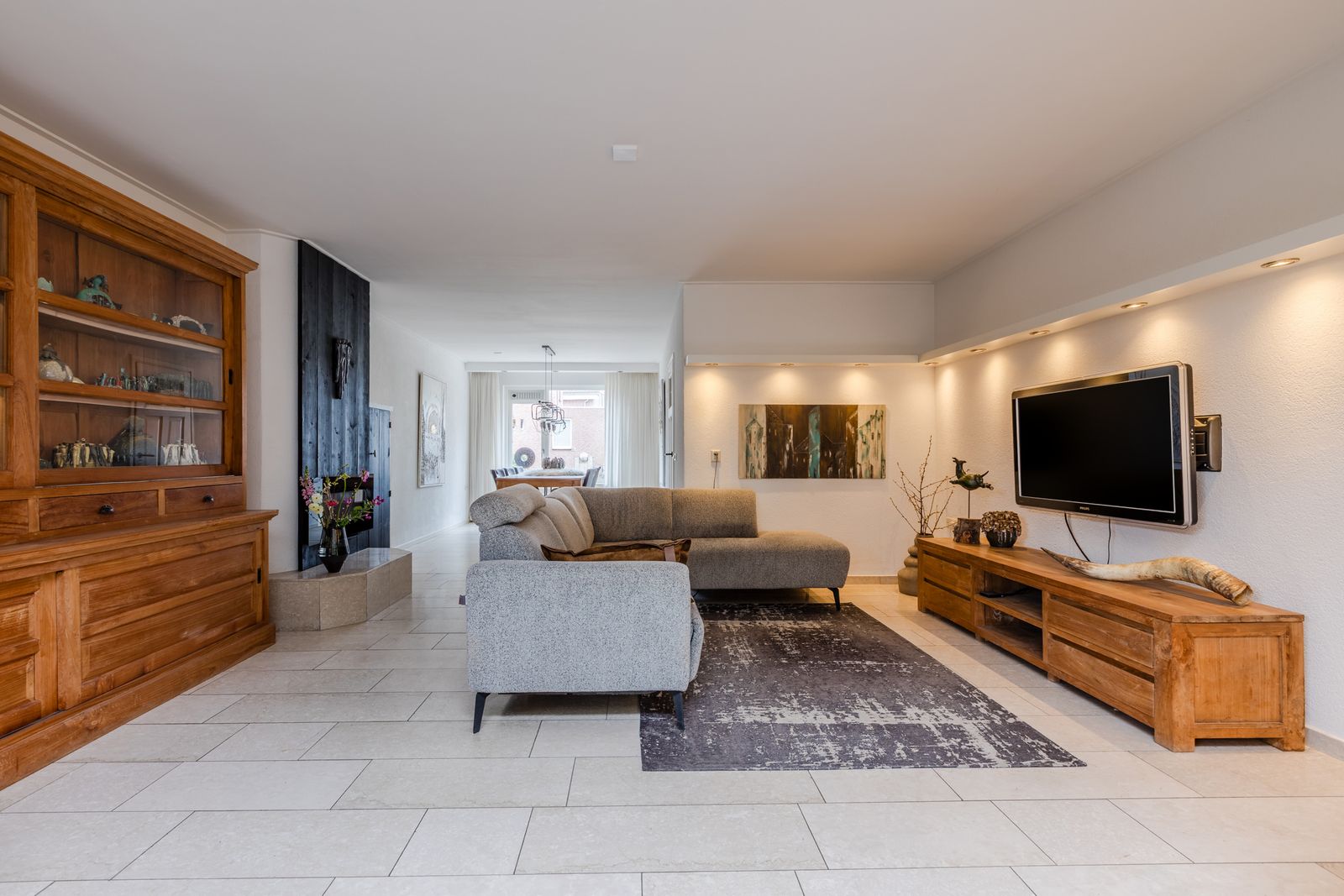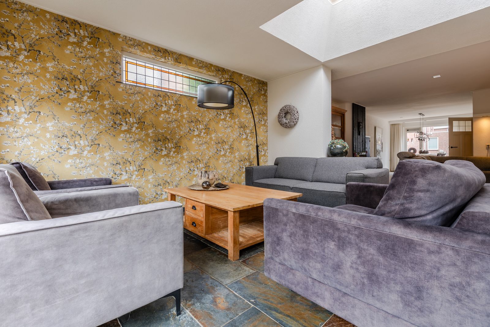 Woon-eetkamer met aan de achterzijde een ruime uitbouw.