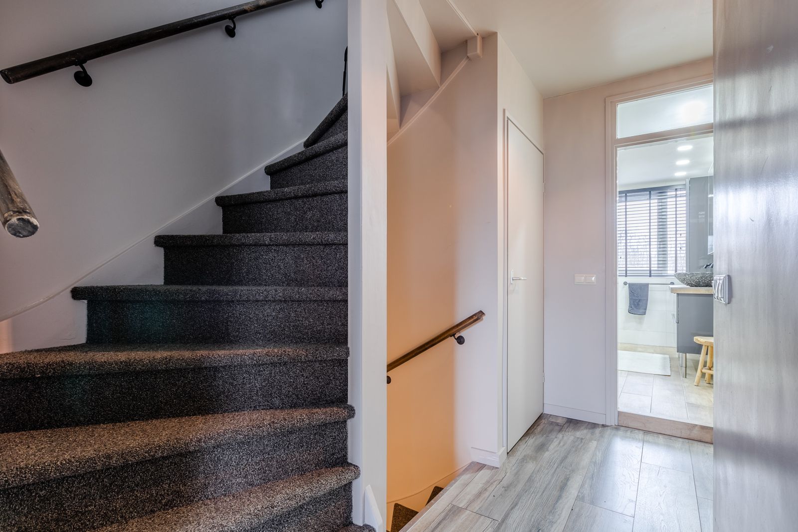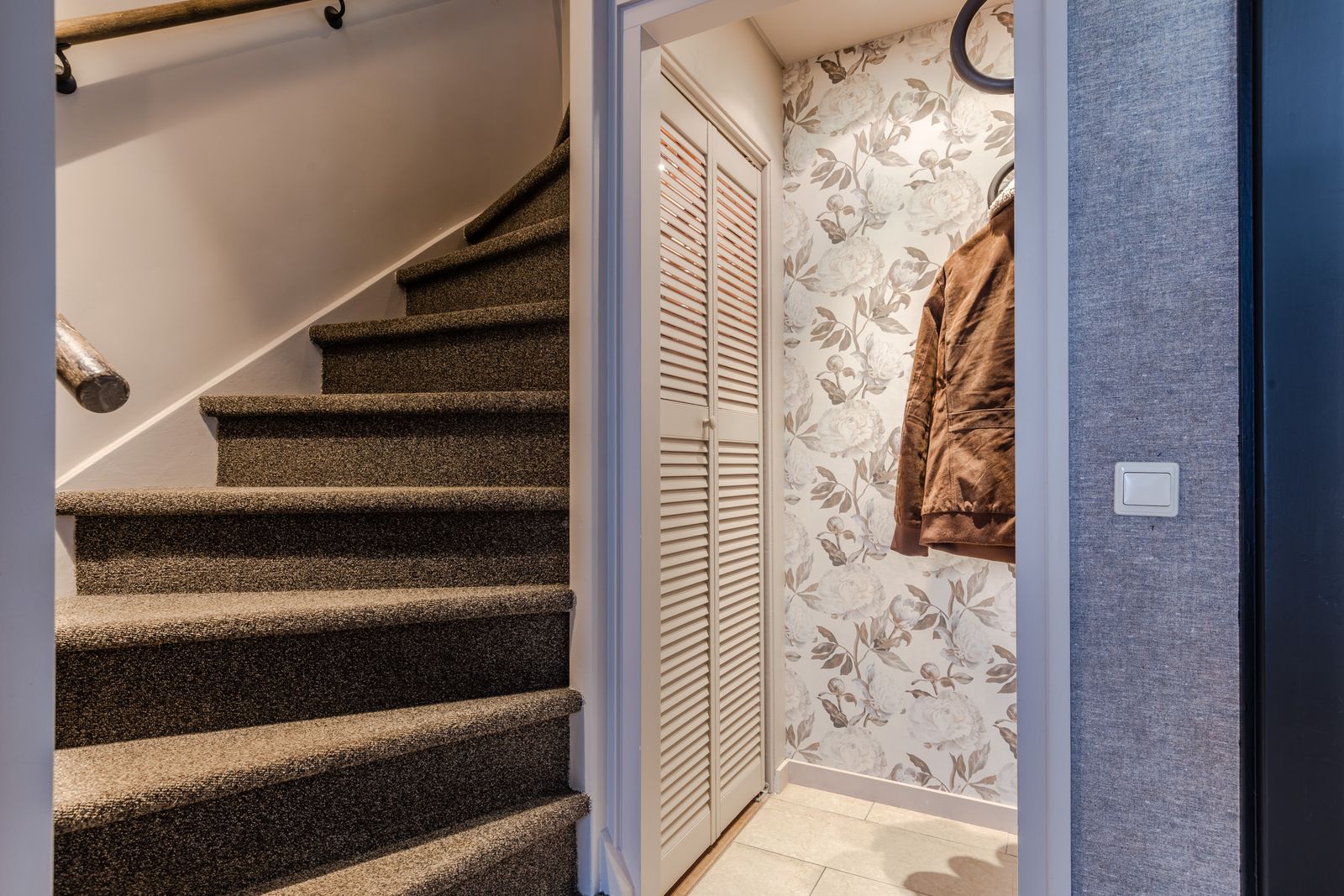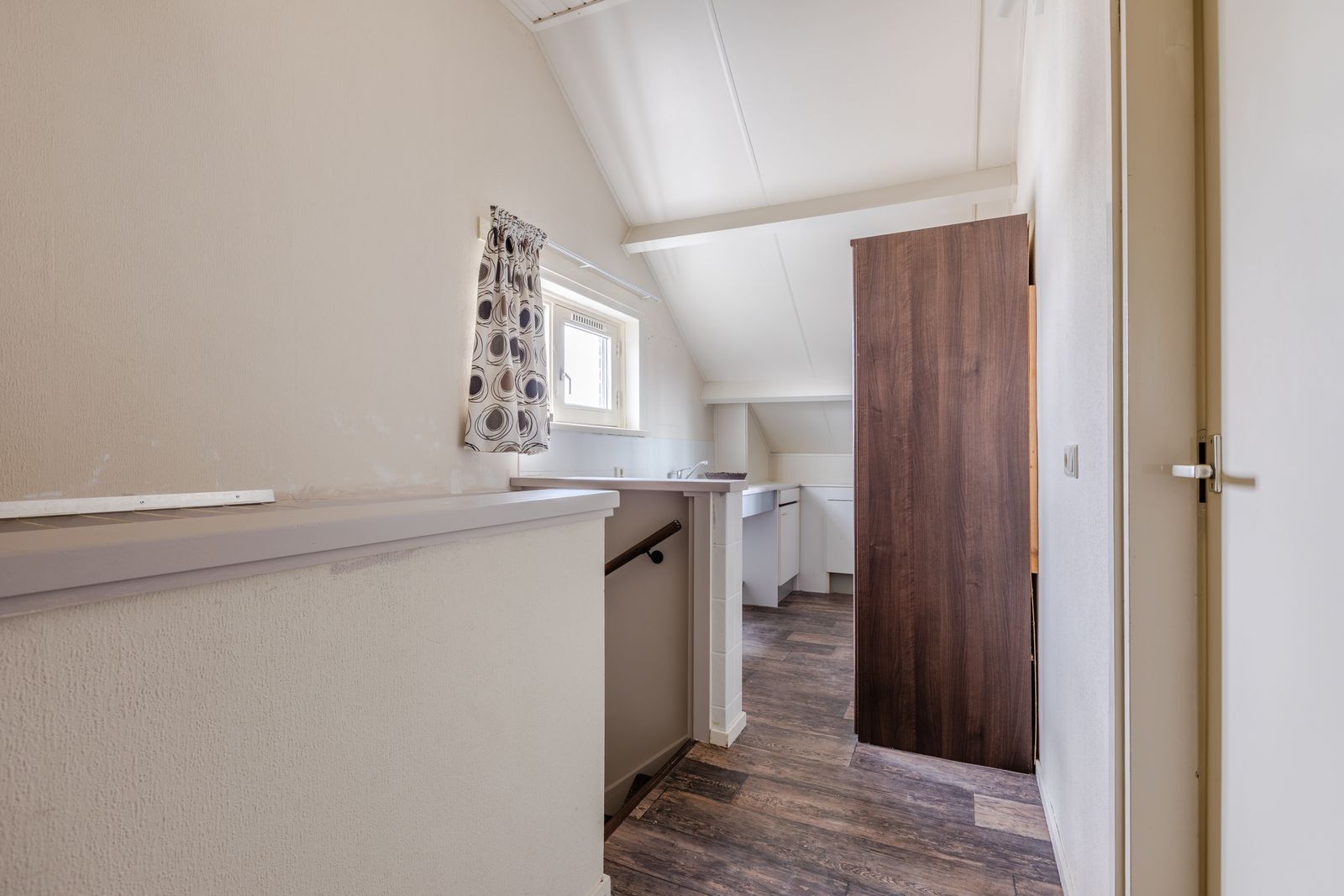 Overloop met aanrechtblad en koud/warm water aansluiting en kastruimten.