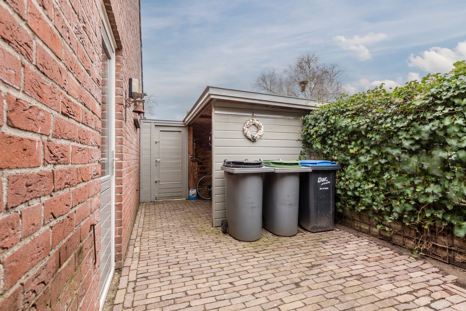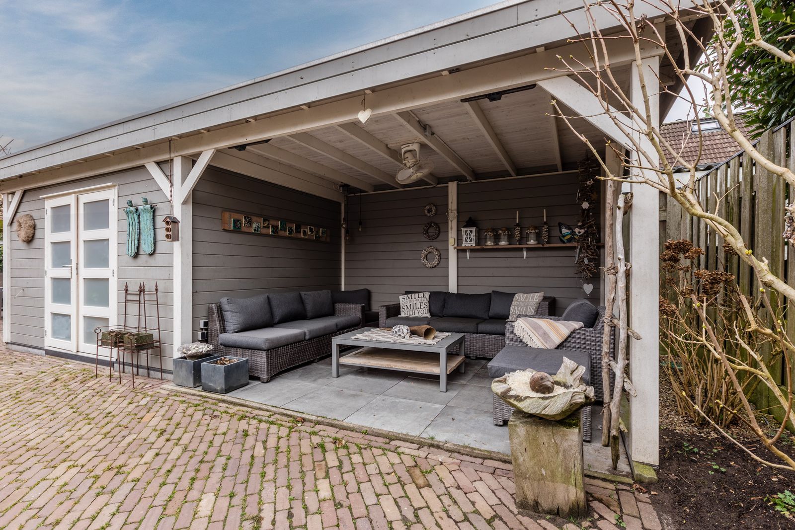 Achter in de tuin is er in 2020 een grote berging en luifel geplaatst.
