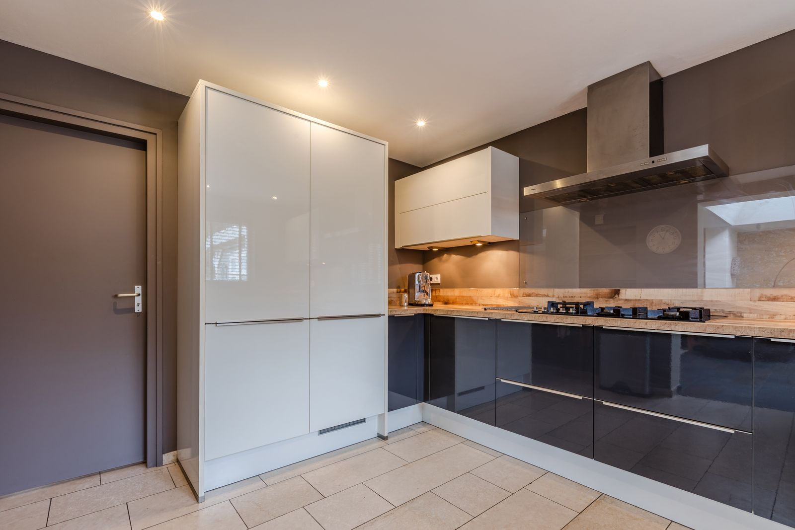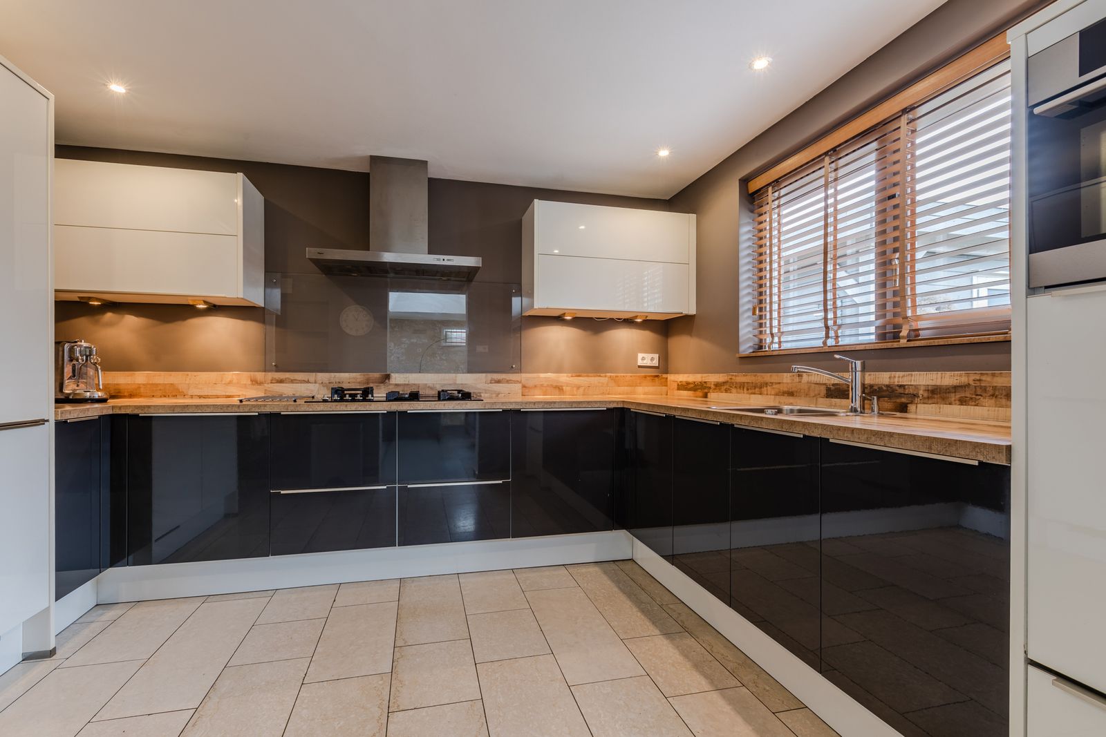 Voorzien van een gaskookplaat van 90 cm, vaatwasser op hoogte ingebouwd, afzuigkap 90 cm, combi-oven/magnetron en een hoge koelkast.